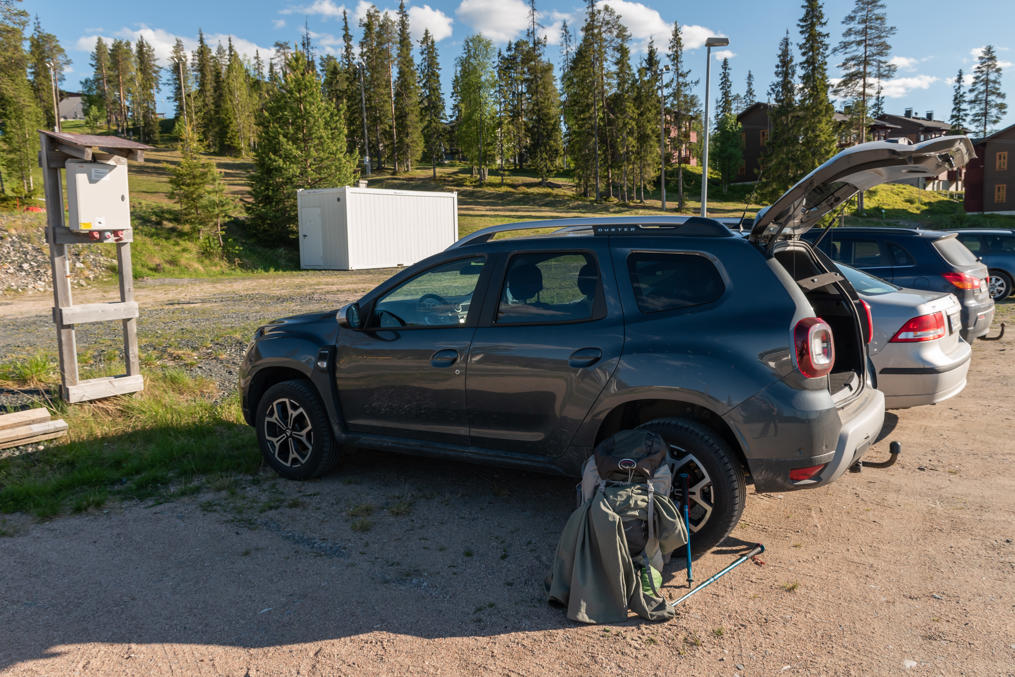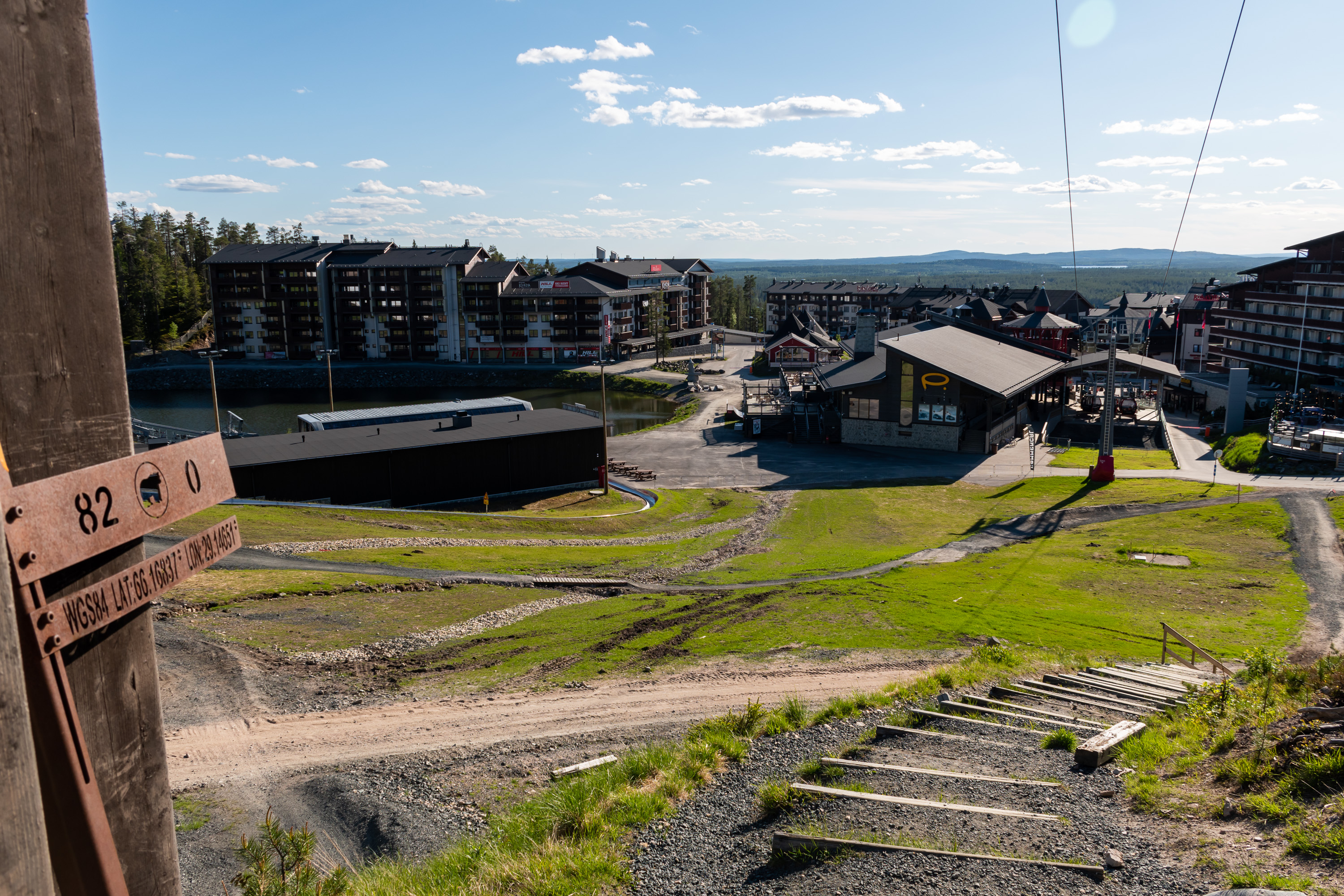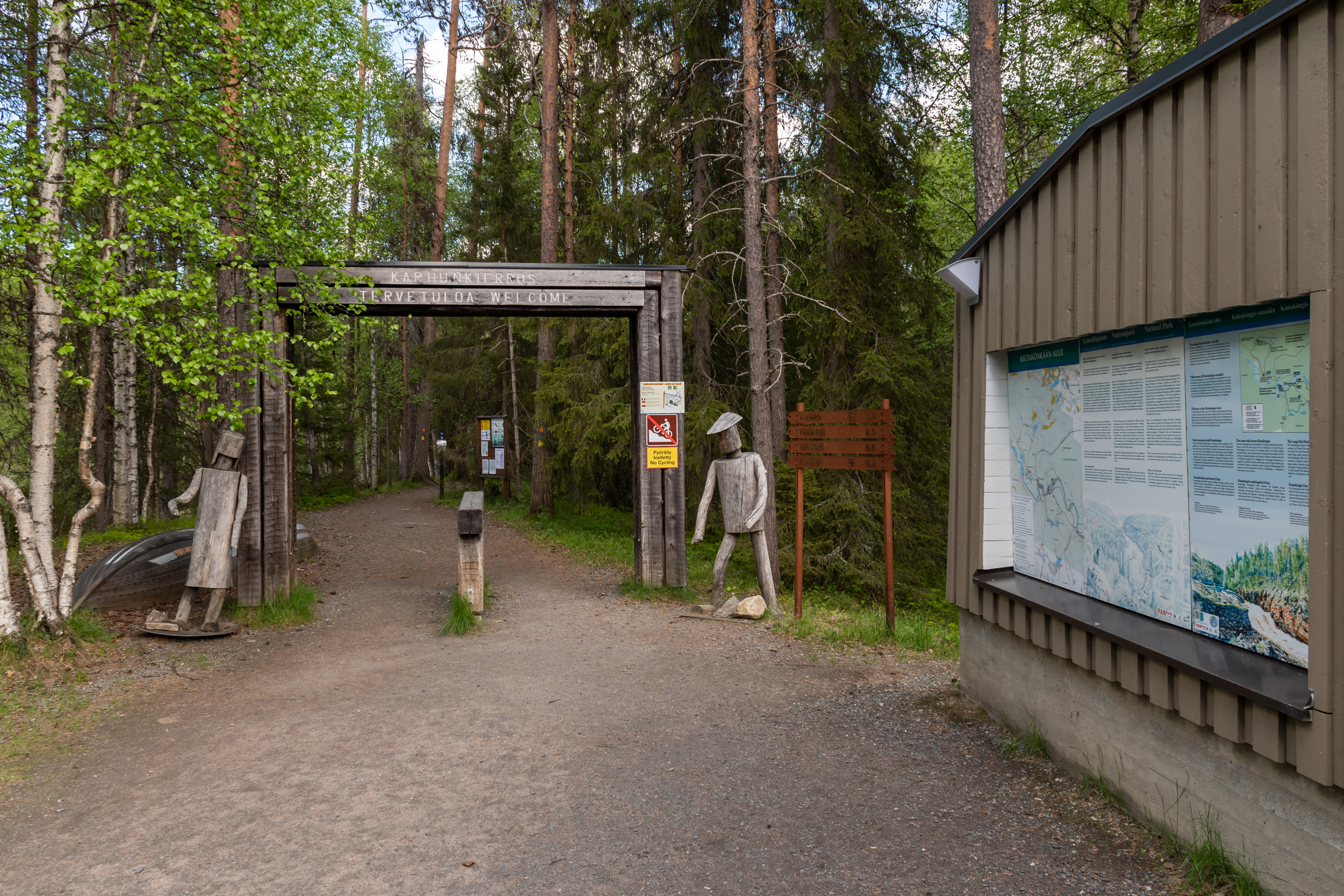 88. Маршрут вниз с Валтаваары тоже недавно передвинули на другое место (теперь идет немного крюком), но, как и раньше, он выводит нас к этой огромной парковке. И это уже деревня Рука, да только вот мы находимся с неправильной стороны от горы Рукатунтури, с лыжными склонами и трамплинами. И поэтому еще раз предстоит забраться вверх.