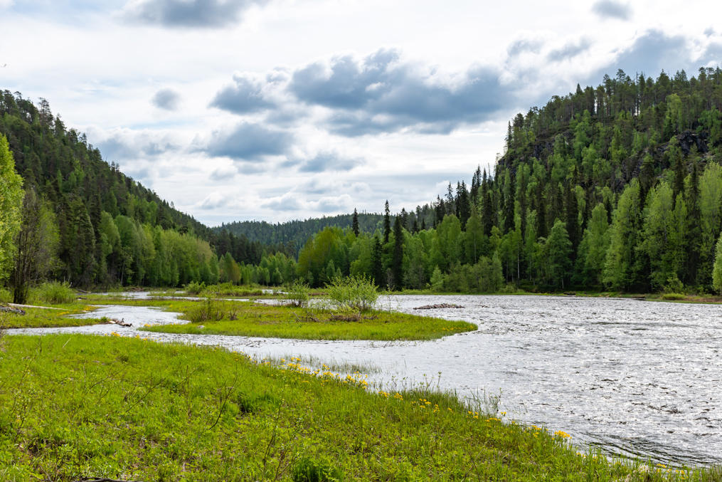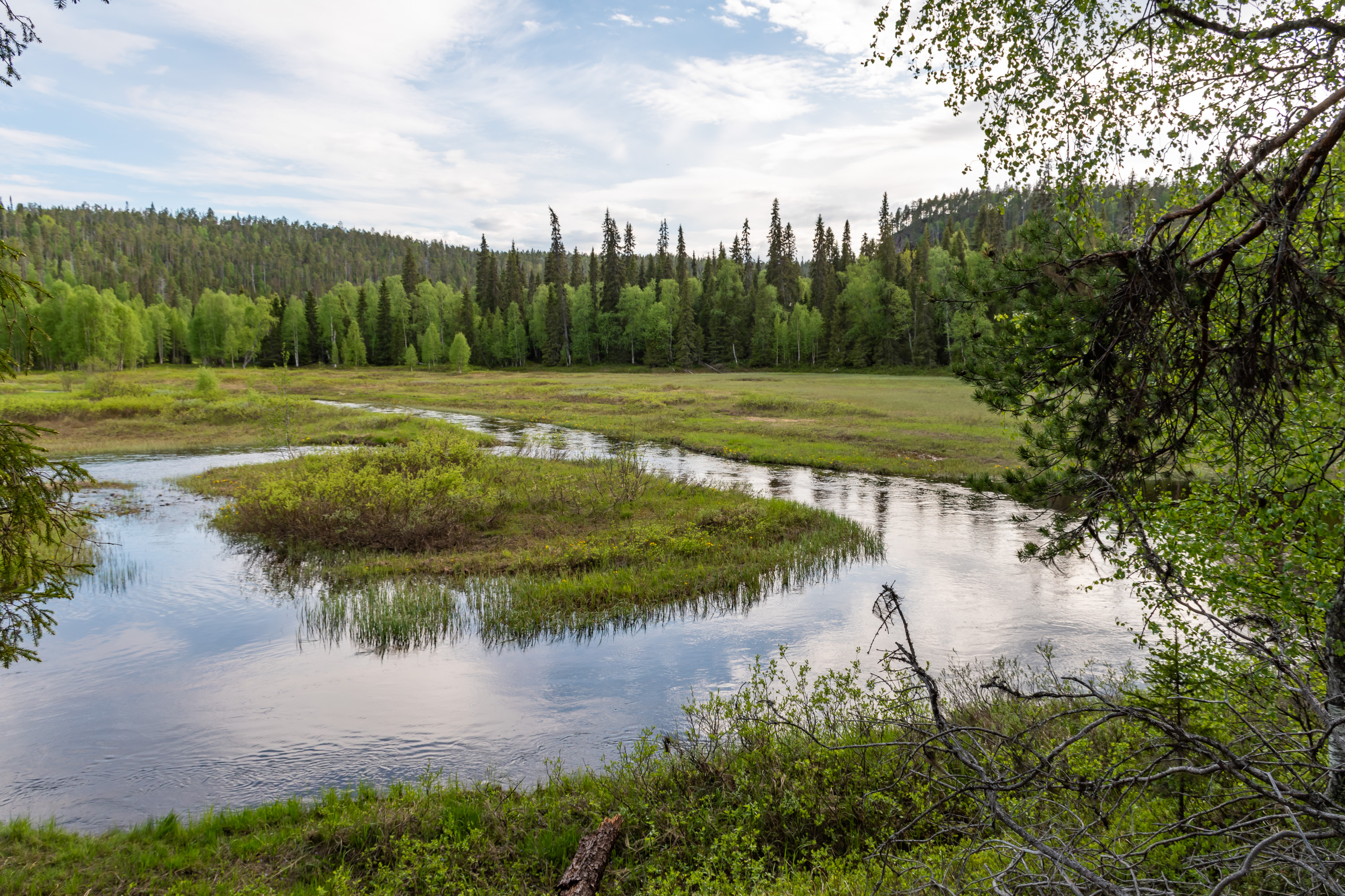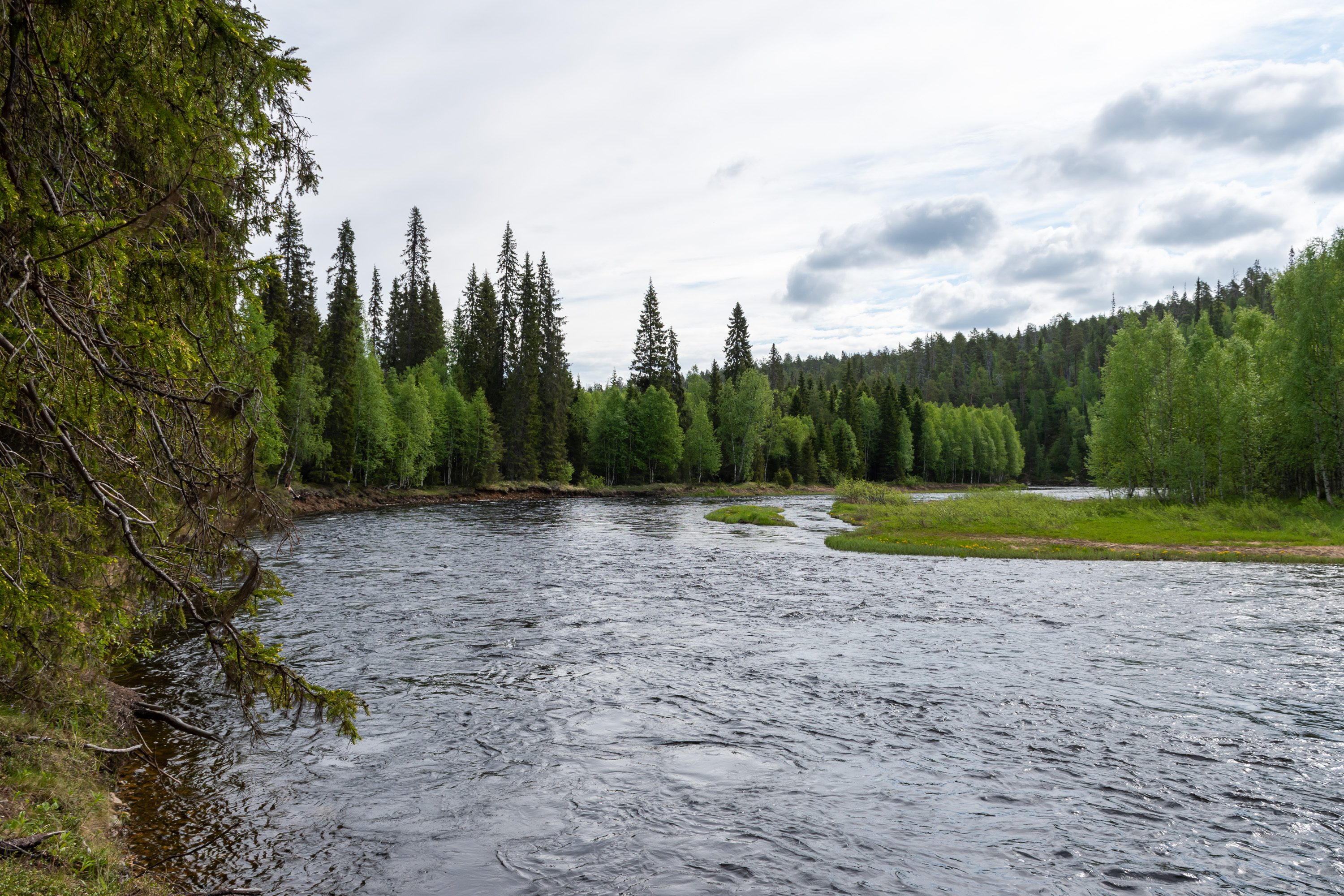 29. У Юликоты (Ylikota, фин. Верхний чум) заночевал третью ночь. Еще плюс 16 км. Тропа тут как раз выходит на берег реки Киткайоки (Kitkajoki), которая здесь образует небольшой разлив с заливными лугами. Киткайоки — вторая крупная река Оуланки; она впадает в Оуланкайоки буквально за пару километров до российской границы. По своей природе Киткайоки и Оуланкайоки сильно отличаются. Оуланкайоки спокойная (не считая нескольких мощных водопадов), очень сильно петляет и весной на ней бывает сильное половодье; в то время как Киткайоки на территории национального парка образует почти один сплошной порог. На ней нет таких меандров, и половодья такого сильного нет; в отличие от Оуланкайоки, в бассейне которой почти нет озер, Киткайоки берет начало из Юли- и Ала-Китки (Yli-Kitka, Ala-Kitka; Верхняя, Нижняя Китка), крупных озер в районе села Посио и национального парка Рийситунтури (отсутствие озер и есть главная причина, по который одни реки по весне разливаются намного сильнее других).