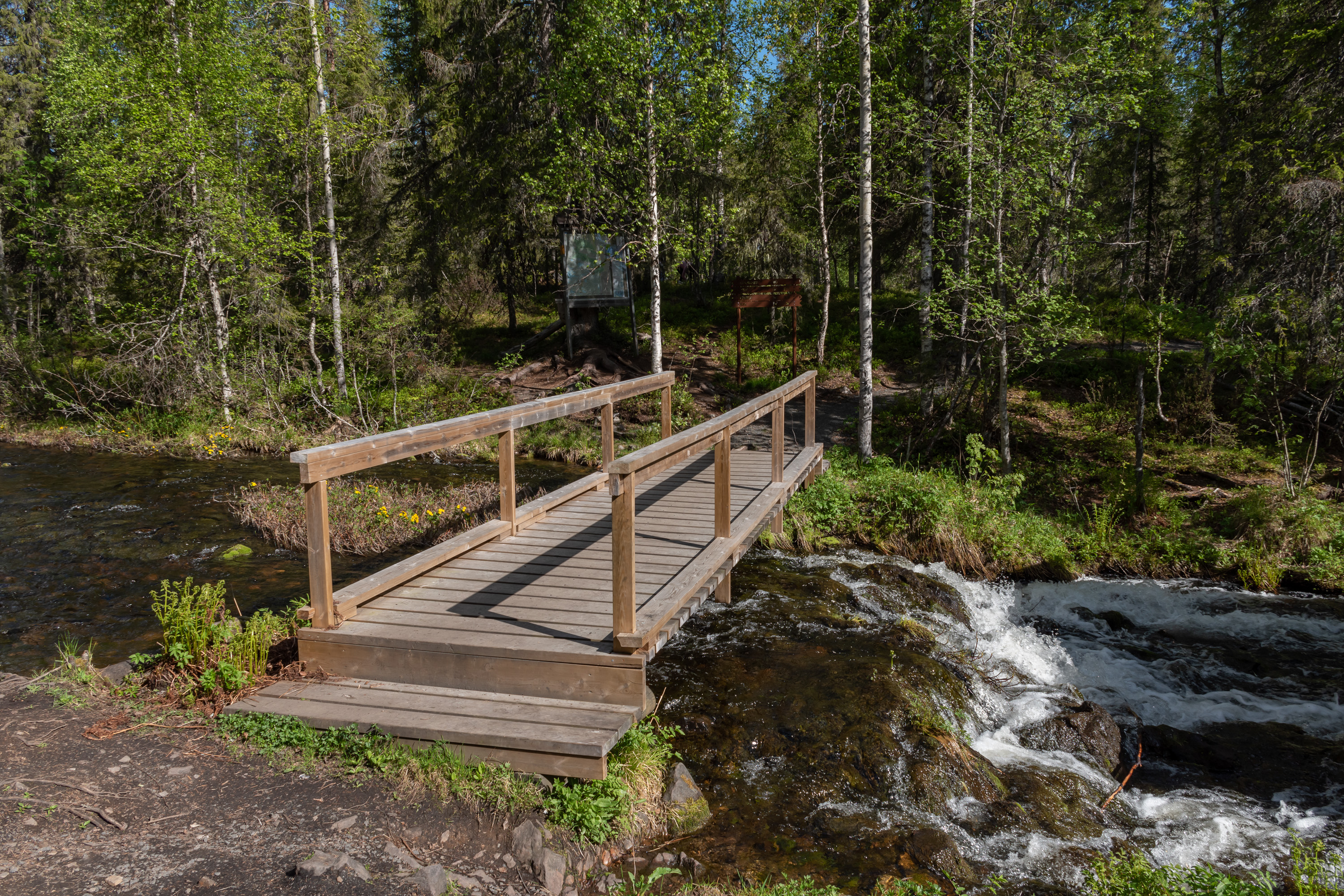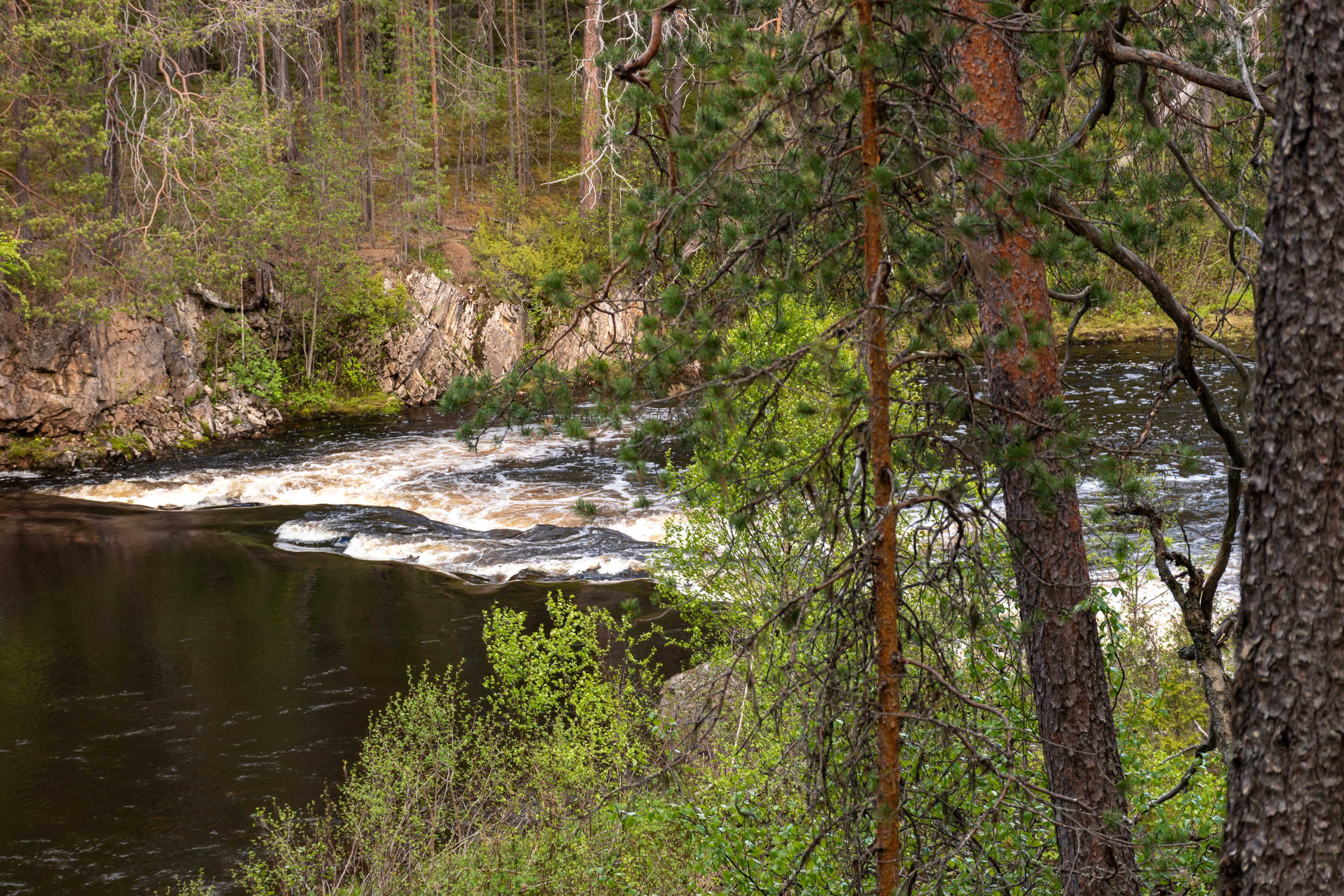 9. Где-то в этих местах по ту сторону реки в нее впадает Путаанойя (Putaanoja, фин. Проточный ручей), на котором есть маленький, но очень красивый водопад, Путаанкёнгяс (Putaanköngäs, фин. Проточный водопад). Официальной или даже неофициальной тропы к нему нет, несколько километров от ближайшей лесной дороги нужно идти через лес напролом. Я не пробовал сам, но на сайте Suomen Vesiputokset есть инструкции, как попасть.