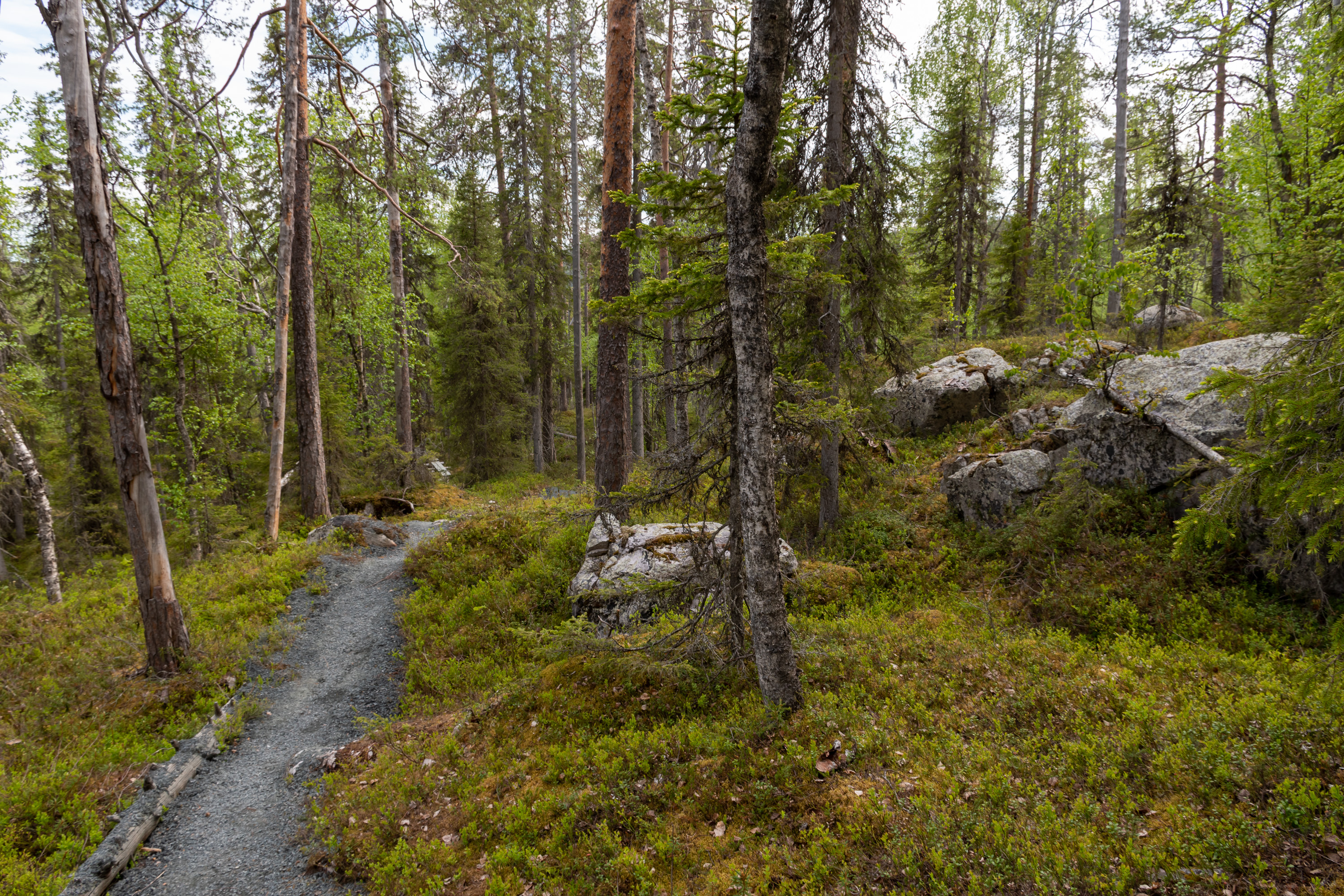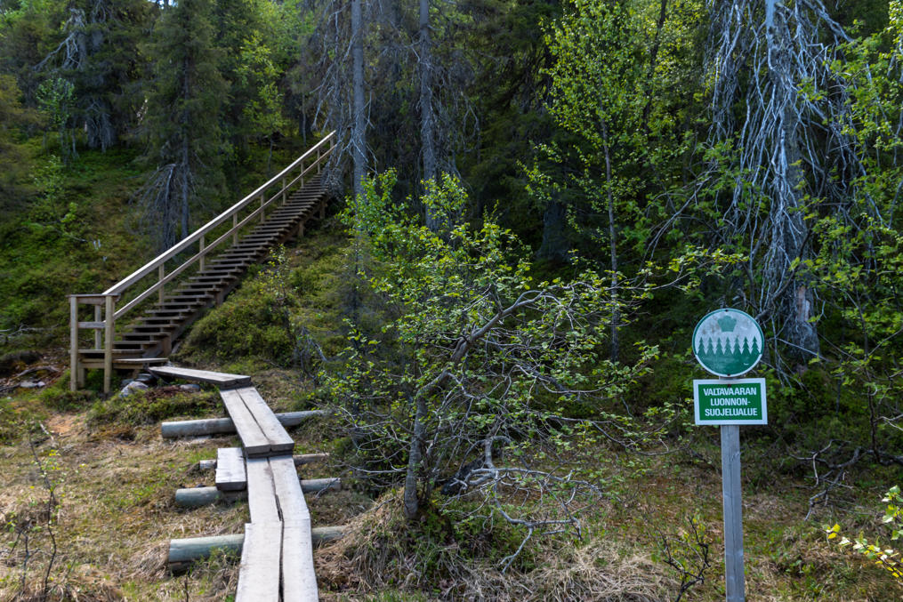 73. Между Конттайненом и Валтаваарой проходит асфальтированная дорога с придорожной стоянкой. На обе горы идут однодневные маршруты (Konttaisen kuhaus, 2 км, и Valtavaaran huiputus, 5.7 км), так что туристы без больших рюкзаков начинают попадаться вновь.
