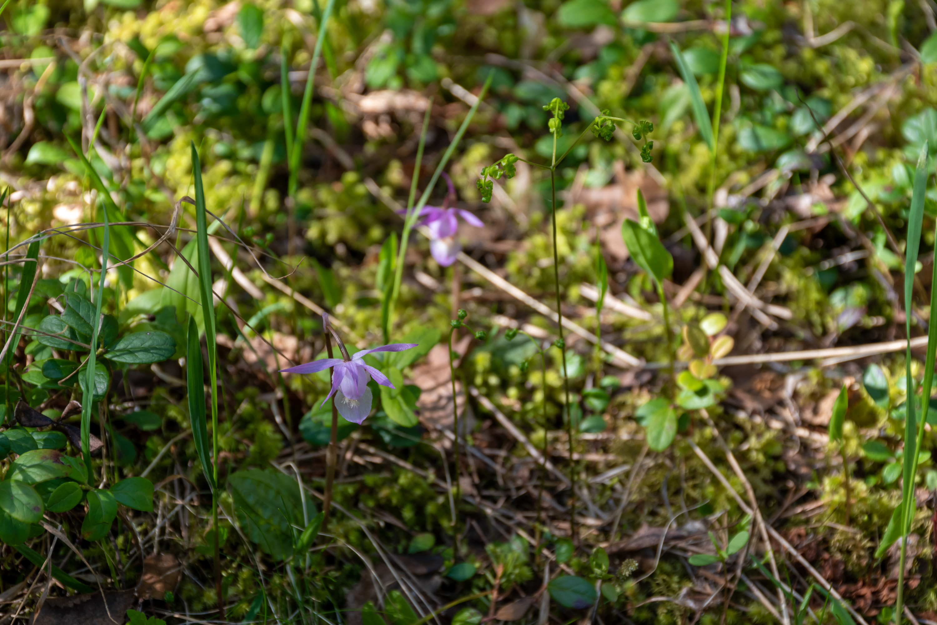 11. На следущий день сразу же, выходя от Меренойи, я встретил у тропы цветы орхидеи калипсо-«девичьего башмачка». Это редкий вид орхидей, которым Оуланка особенно известна — он изображен на логотипе национального парка. Цветок настолько необычный, что даже я, не особо внимательный в отношении флоры человек, его сразу же заметил.