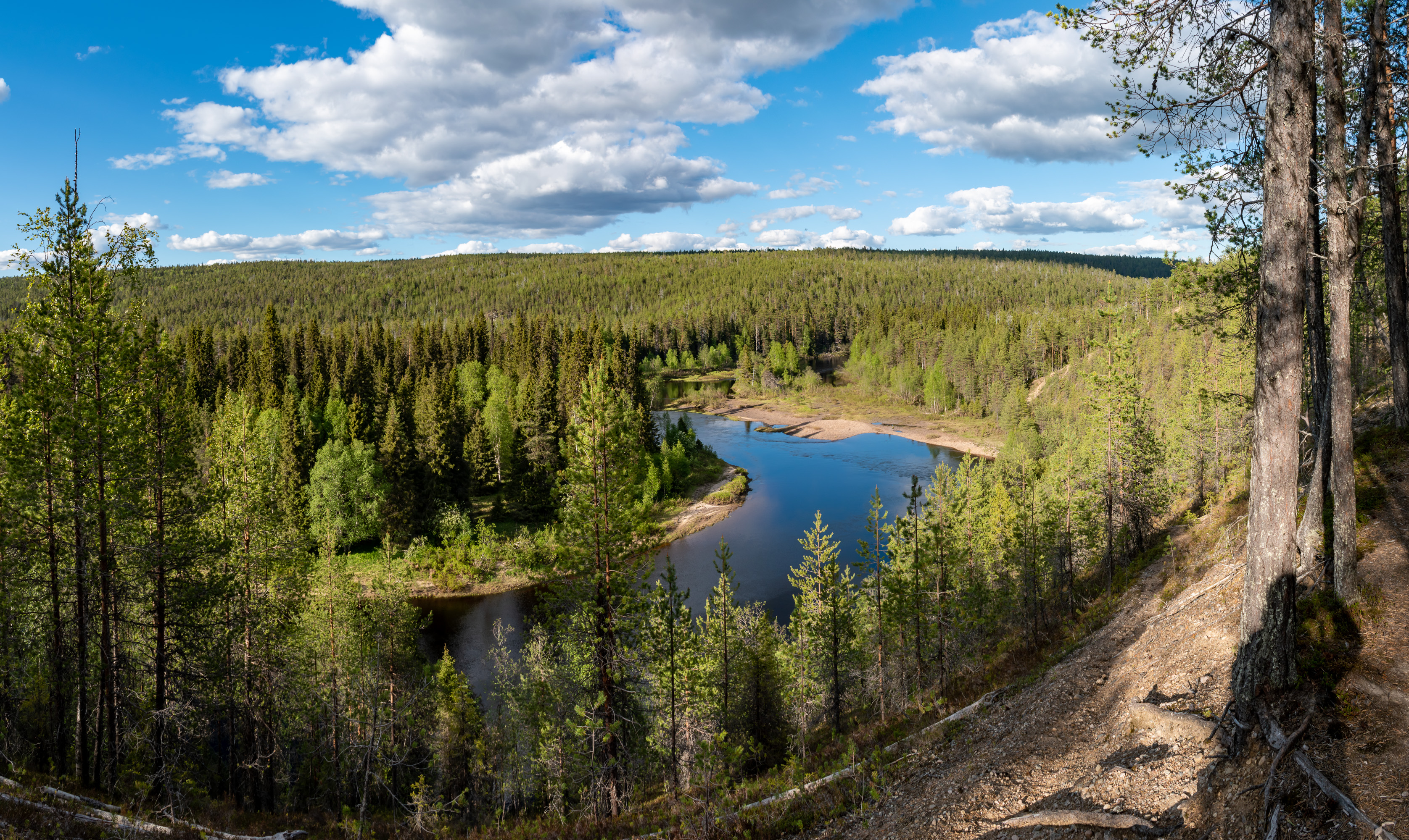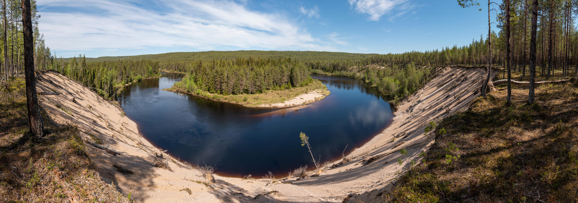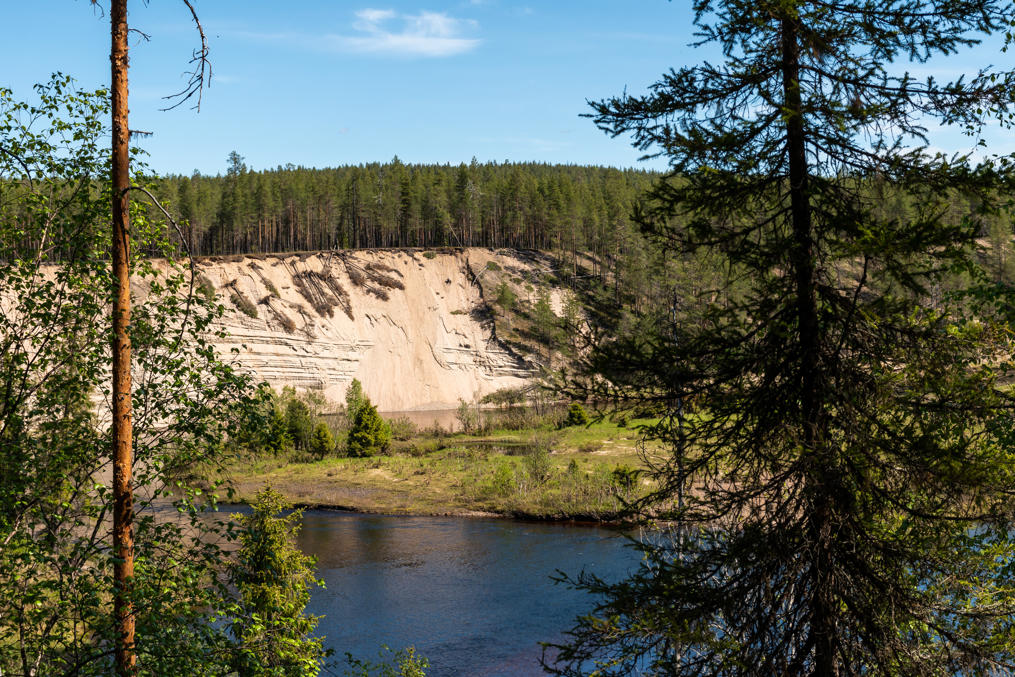 7. Киутакёнгяс — последний серьезный порог на Оуланкайоки, по крайней мере, по эту сторону российской границы. Весь оставшийся путь река течет тихо и спокойно, образуя множество крутых излучин-меандров, местами среди очень высоких крутых песчаных обрывов.