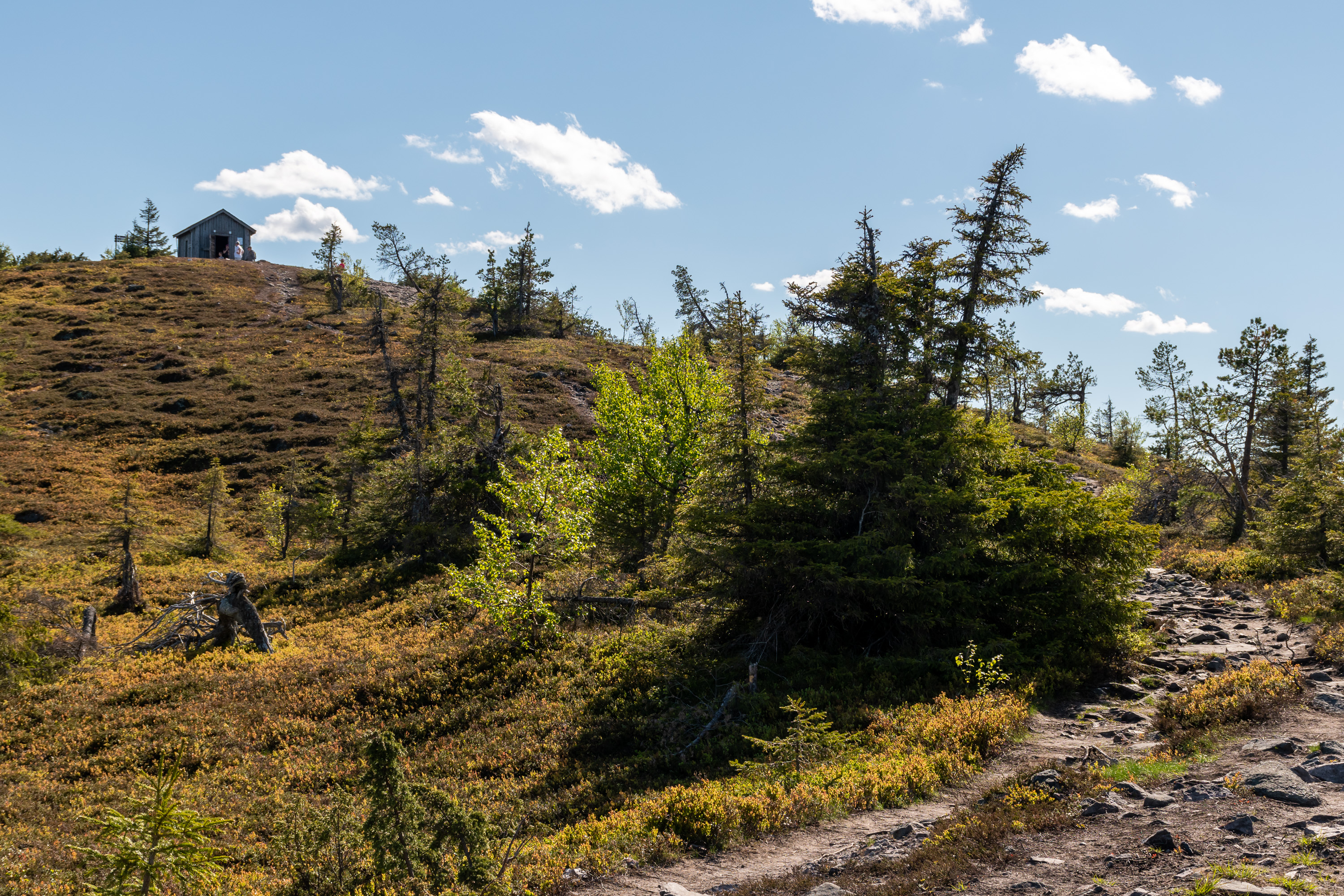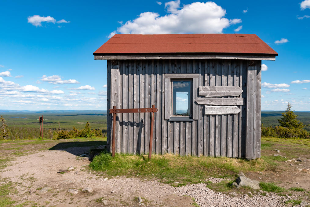 81. На самой вершине стоит совсем маленькая дневная хижина Валтаваара (Valtavaaran päivätupa) — бывшая хижина пожарного. Такие хижины на севере были нередки — с них, как с каланчи, высматривали лесные пожары. Теперь те из них, что сохранились, действуют как дневные хижины (päivätupa, только для привала) или хижины для ночевки (autiotupa).