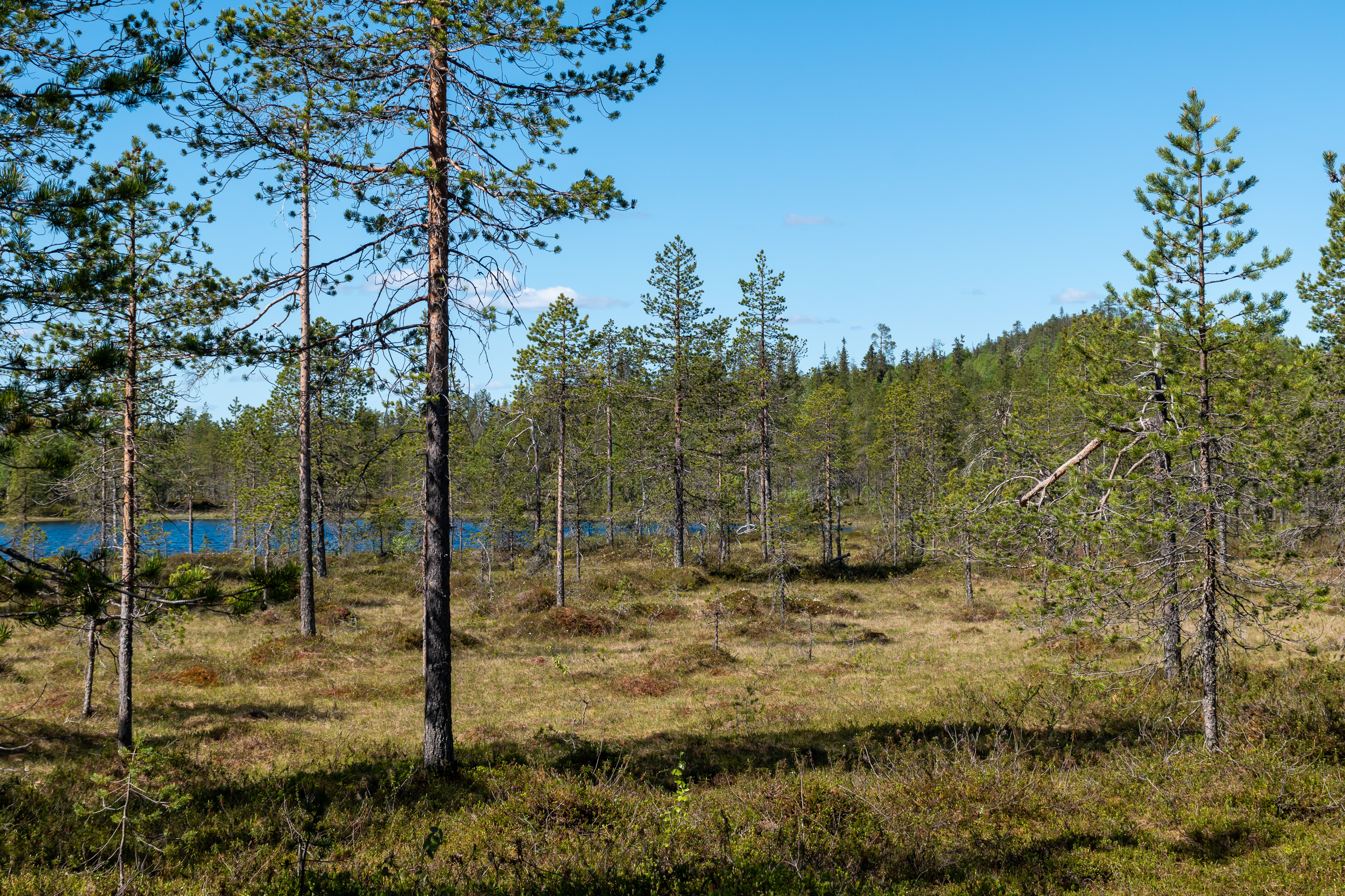 86. За болотами виден пруд Валтавааранлампи (Valtavaaranlampi), у которого расположено последнее место для привала на Медвежьем кольце.