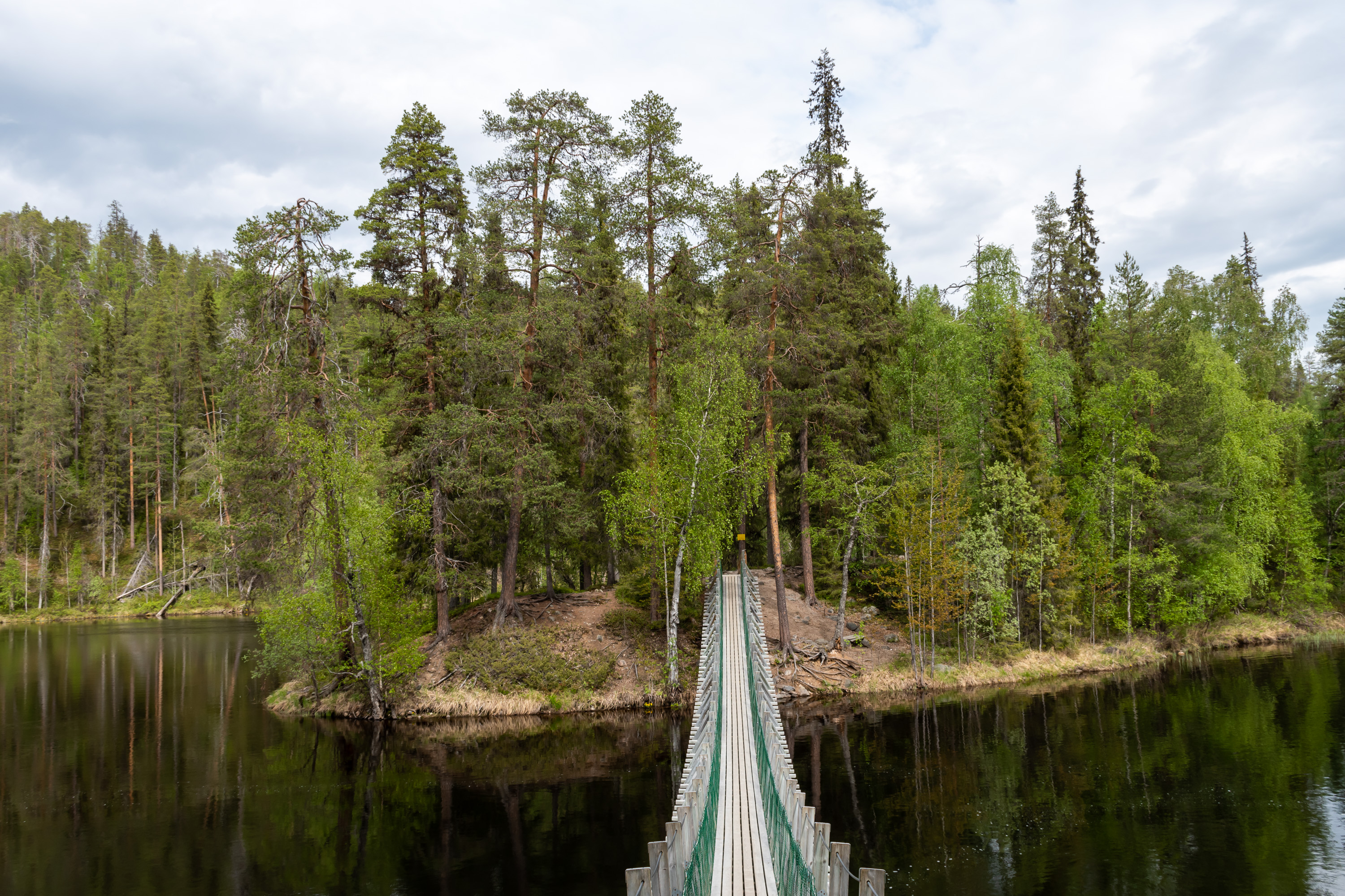 40. На другой берег Киткайоки переходим по последнему на маршруте висячему мосту.