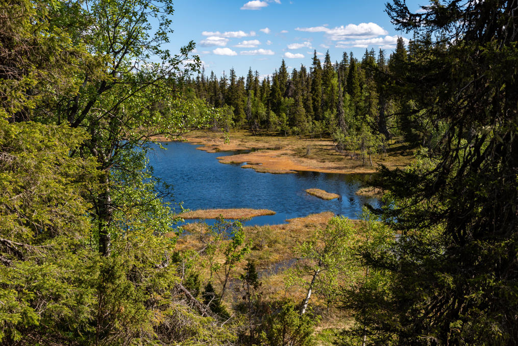 76. Подъемы с рюкзаком за спиной даются непросто — сами по себе они не особо большие, но их в этот день много — но не страшно, остается всего несколько километров. Наверху Валтаваары есть несколько мест для привала; первое — лааву Суолампи (Suolampi, фин. Болотный пруд), на берегу этого прудика.