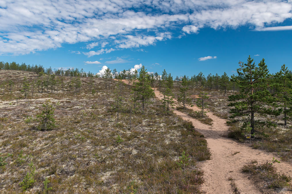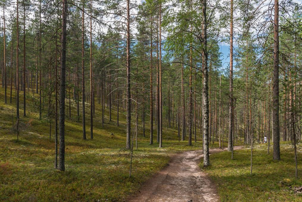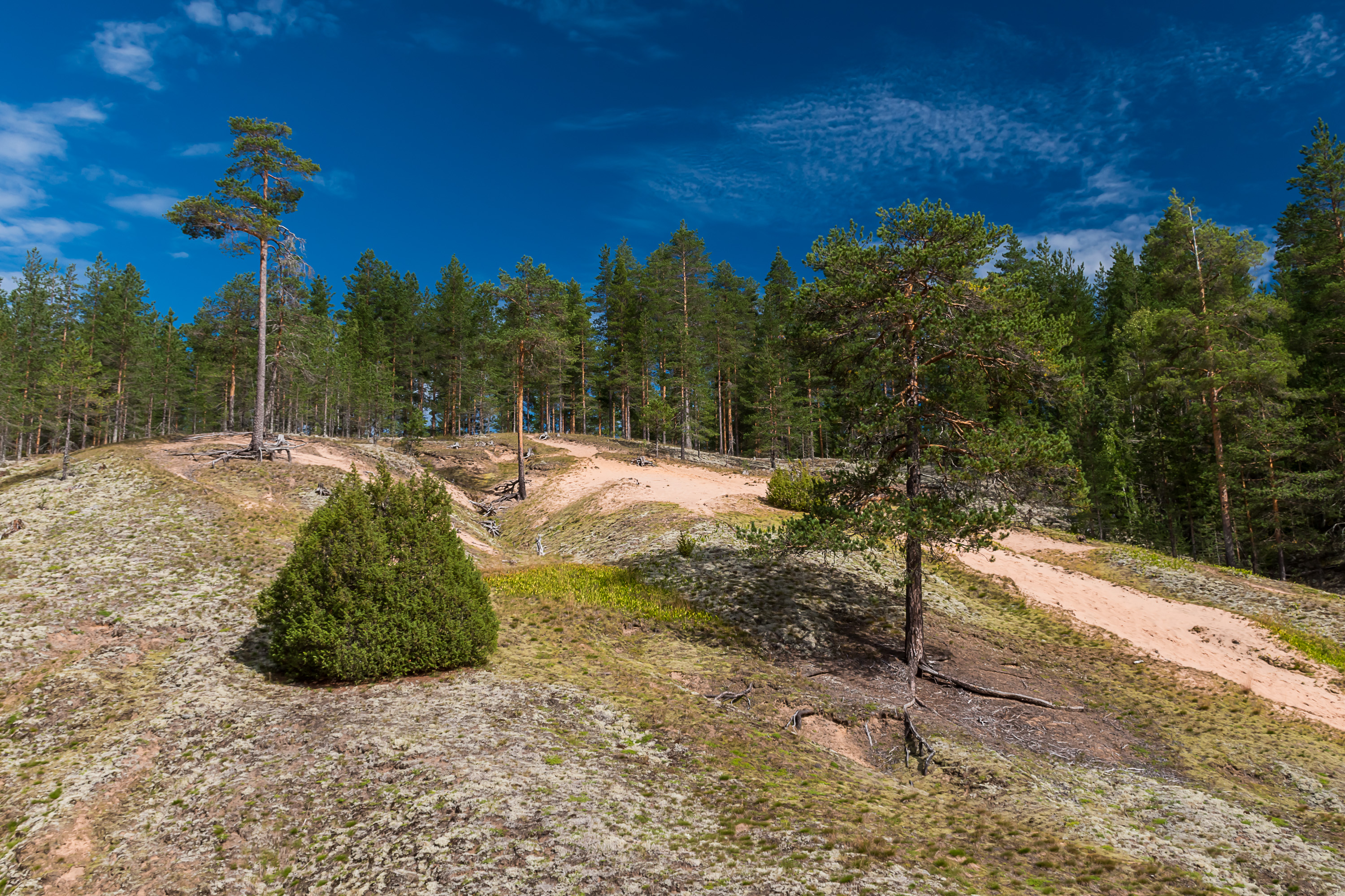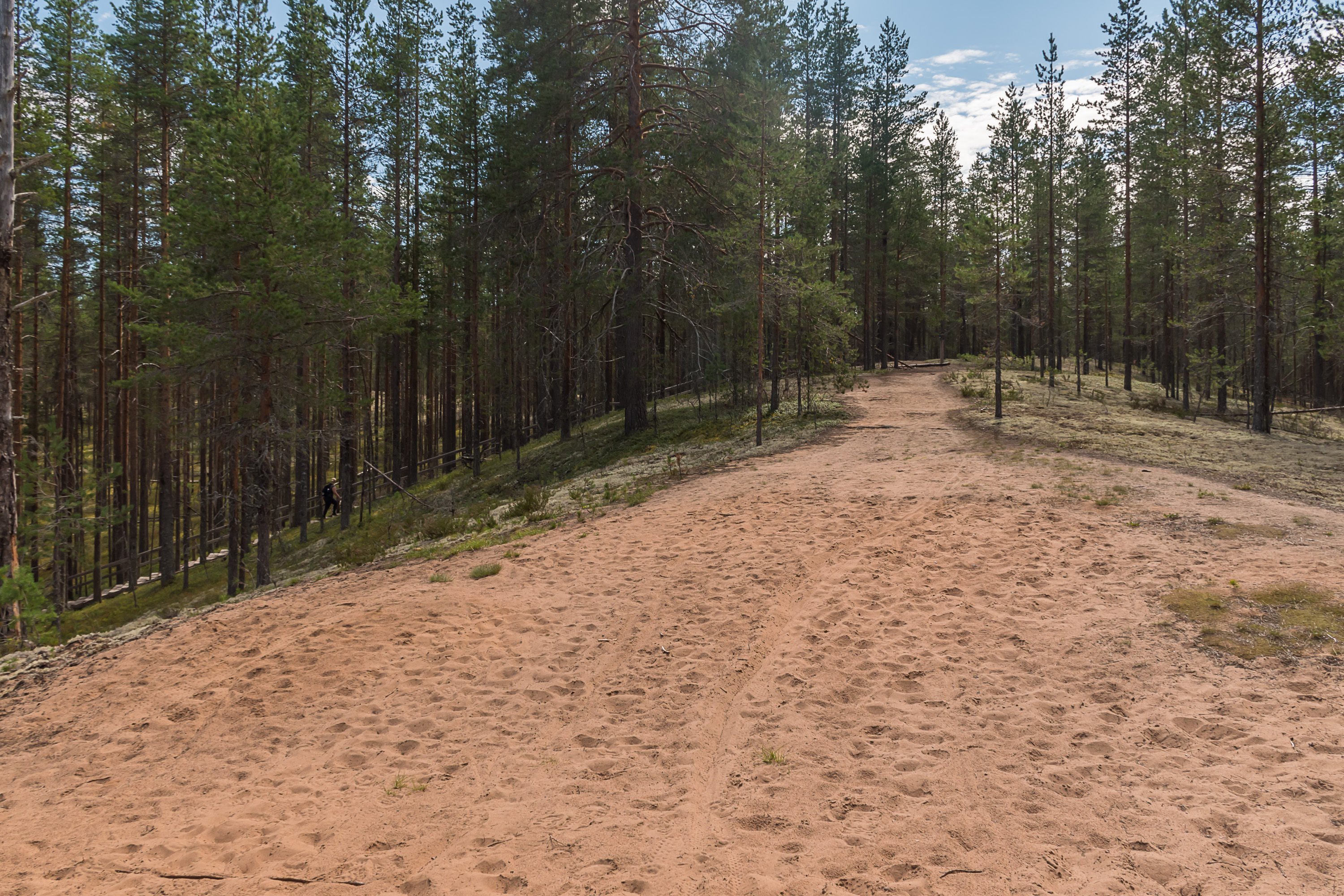50. От езды на велосипедах и подобной активности земля здесь крайне легко превращается в чистый песок, будто на пляже. Так что хотя бы в пределах национального парка лучше с троп не сходить :) Песчаные карьеры в этих местах есть, но не очень большие и далеко за пределами национального парка, ближе к Ваале. Еще исторически сосновые леса тут использовались для традиционного для долины Оулуйоки занятия — выгонки соснового дегтя. Но это было давно, в 19-начале 20 века, и, кроме опознаваемых только специалистом ям на месте дегтярных печей, ничего об этом не напоминает.