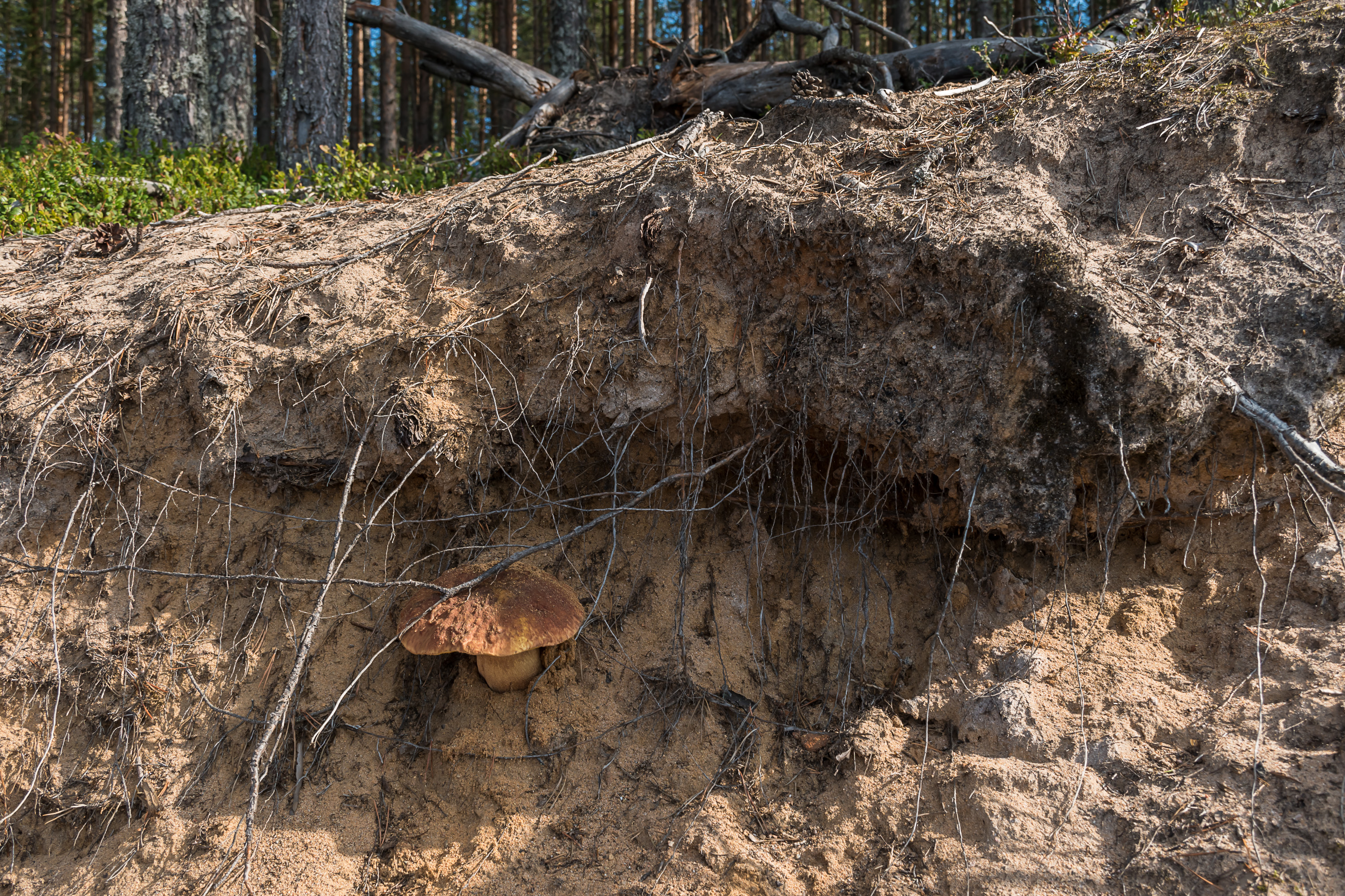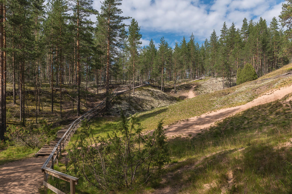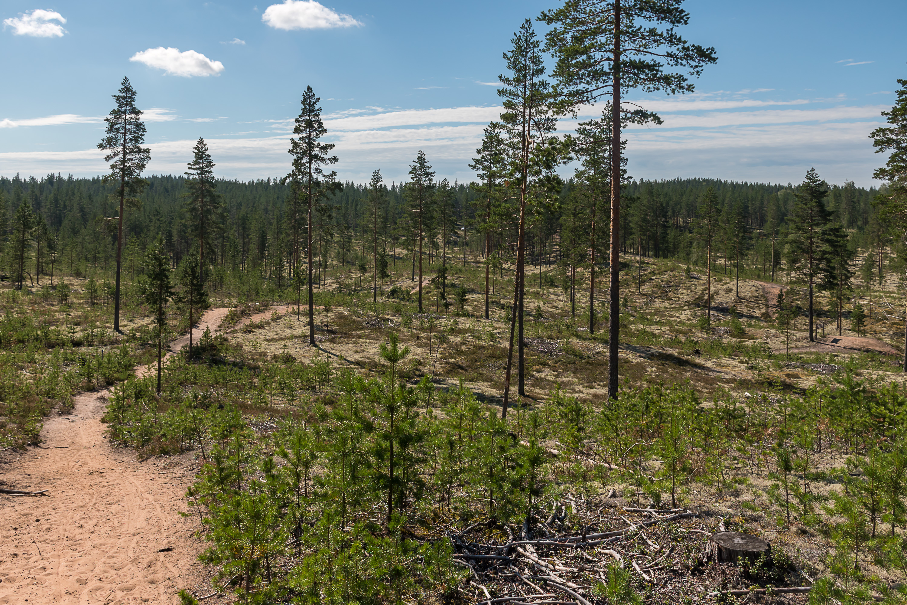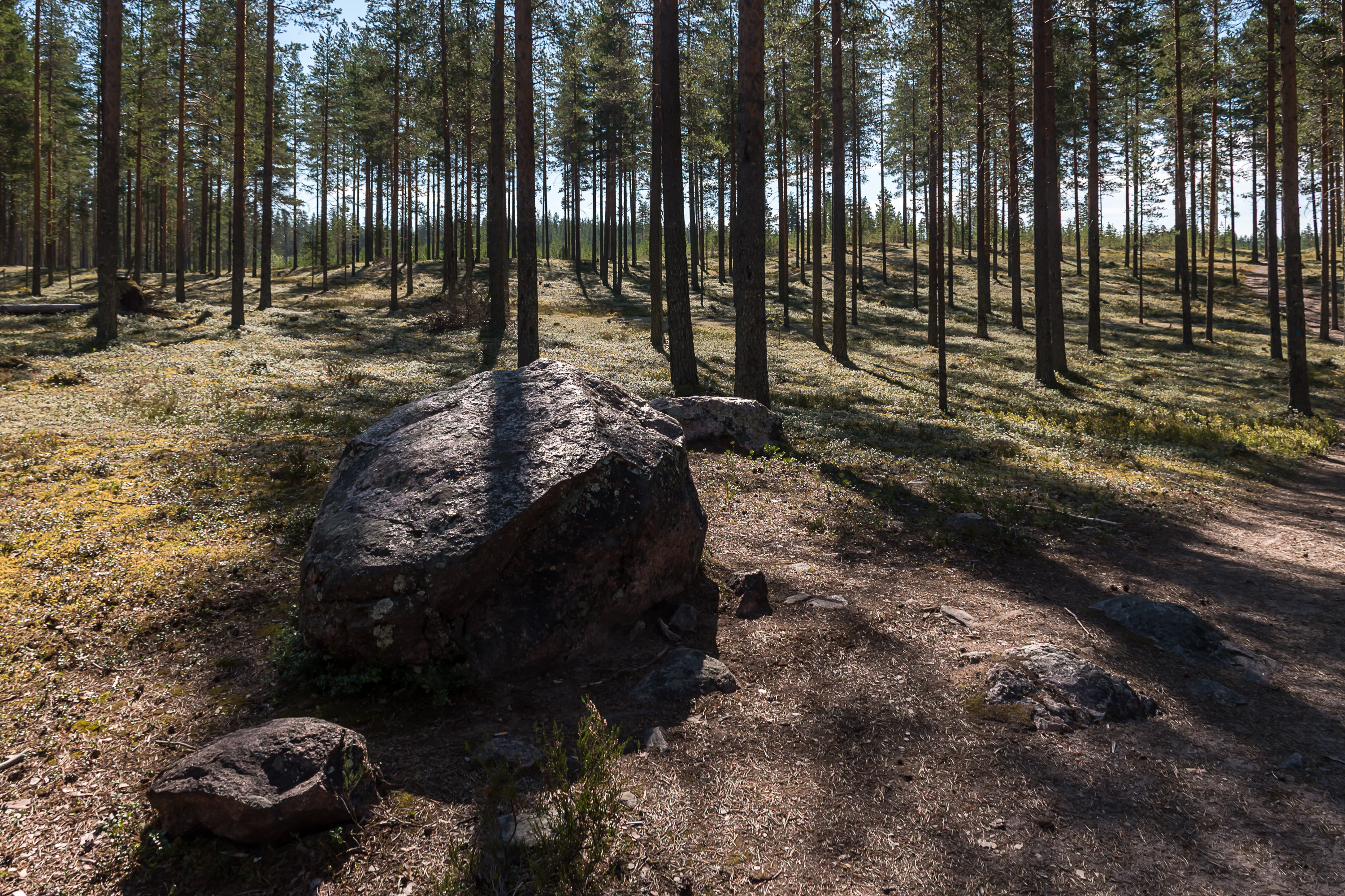 50. От езды на велосипедах и подобной активности земля здесь крайне легко превращается в чистый песок, будто на пляже. Так что хотя бы в пределах национального парка лучше с троп не сходить :) Песчаные карьеры в этих местах есть, но не очень большие и далеко за пределами национального парка, ближе к Ваале. Еще исторически сосновые леса тут использовались для традиционного для долины Оулуйоки занятия — выгонки соснового дегтя. Но это было давно, в 19-начале 20 века, и, кроме опознаваемых только специалистом ям на месте дегтярных печей, ничего об этом не напоминает.