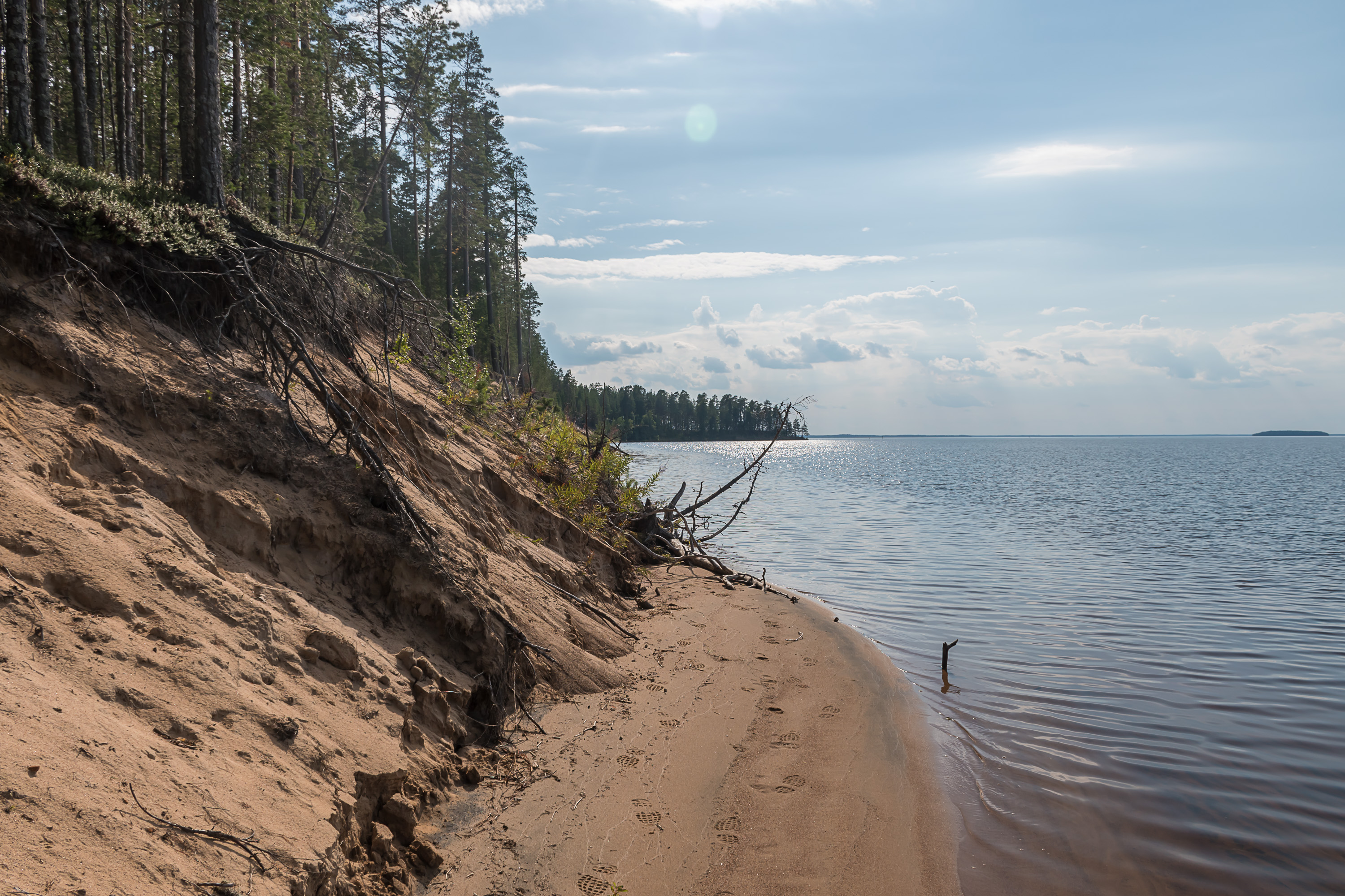 65. Площадь озера Оулуярви составляет 887 кв. км согласно википедии и 925 кв. км согласно странице рекреационной территории. И то и другое средние цифры, а фактически площадь может варьироваться в очень широких пределах — от 778 до 944 кв. км! Озеро регулируется каскадом ГЭС Оулуйоки, а берега его в основном очень мелкие, и, когда воды мало, могут обнажаться обширные пространства. Средняя же глубина озера — 7 м, максимальная — 38 м.