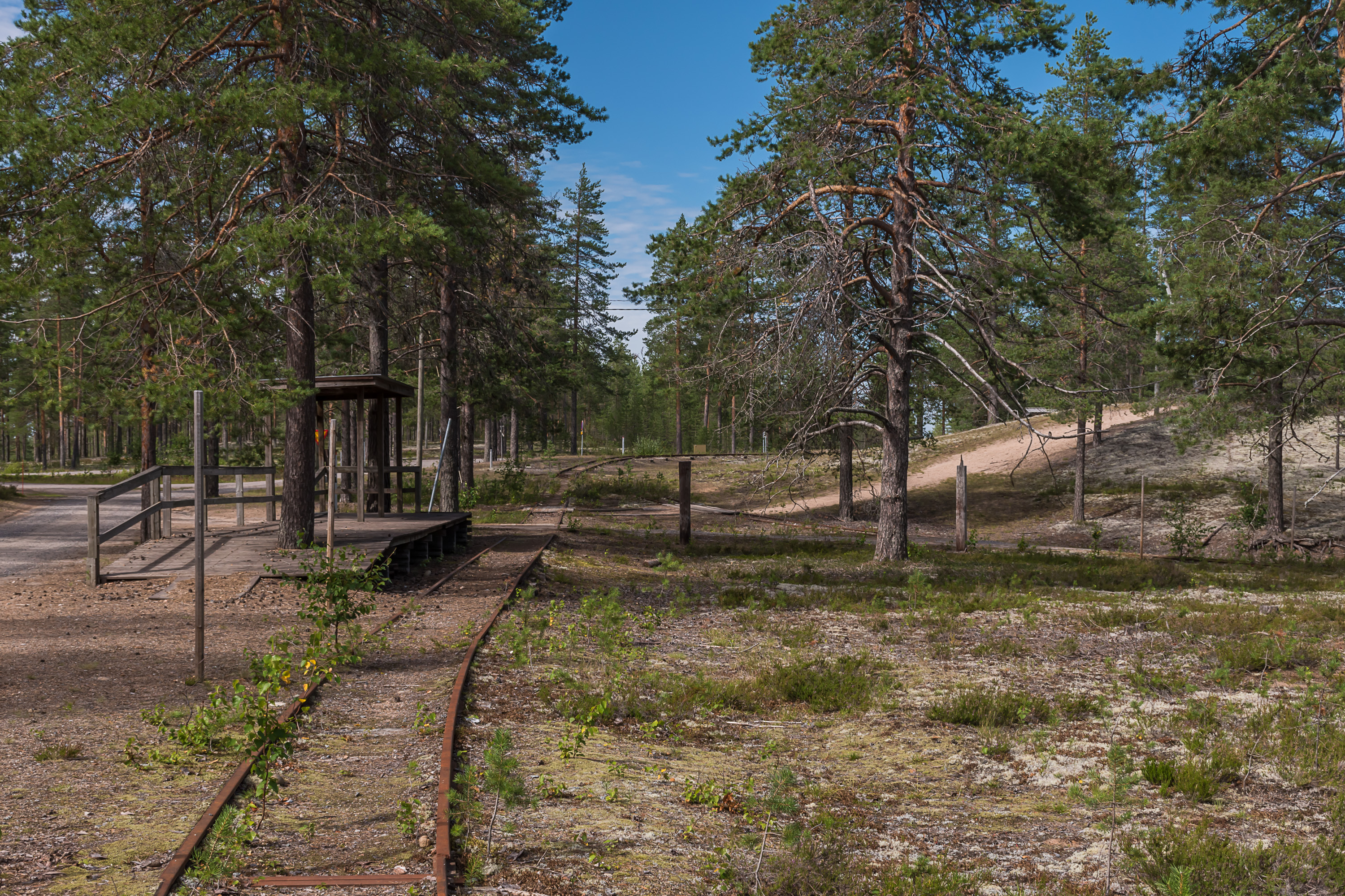 29. Первое, что нас встречает у бывшего визит-центра — заброшенная узкоколейка! Точнее, встречало раньше; википедия говорит, что ее разобрали на металлолом в мае 2022... А построили ее когда-то в 1986 году, чтобы возить людей между между двумя отелями, Rokuanhovi и Rokua Health & Spa, потому что в свое время Rokua Health & Spa был санаторием без собственного бара, вот и построили, чтоб возить жильцов побухать к соседям. Крайне необычное решение, что и говорить.