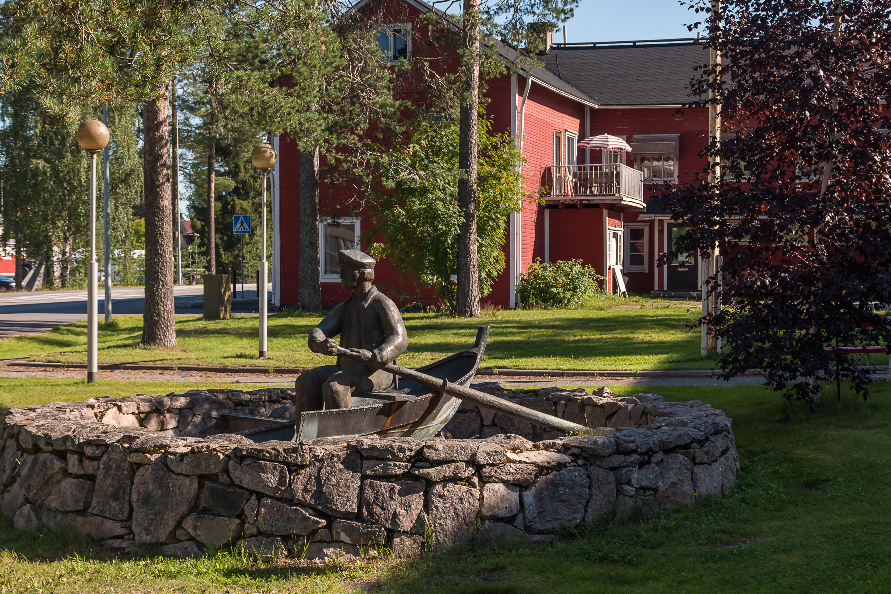 13. Перед администрацией стоит памятник сплавщику (laskumies). В наши дни в Ваале ежегодно присуждают почетное звание сплавщика какому-нибудь местному культурному деятелю. Но исторически, конечно, это были люди, которые могли проводить лодки по главной местной реке, Оулуйоки, через ее пороги (которые в наши дни все запружены каскадом плотин ГЭС).