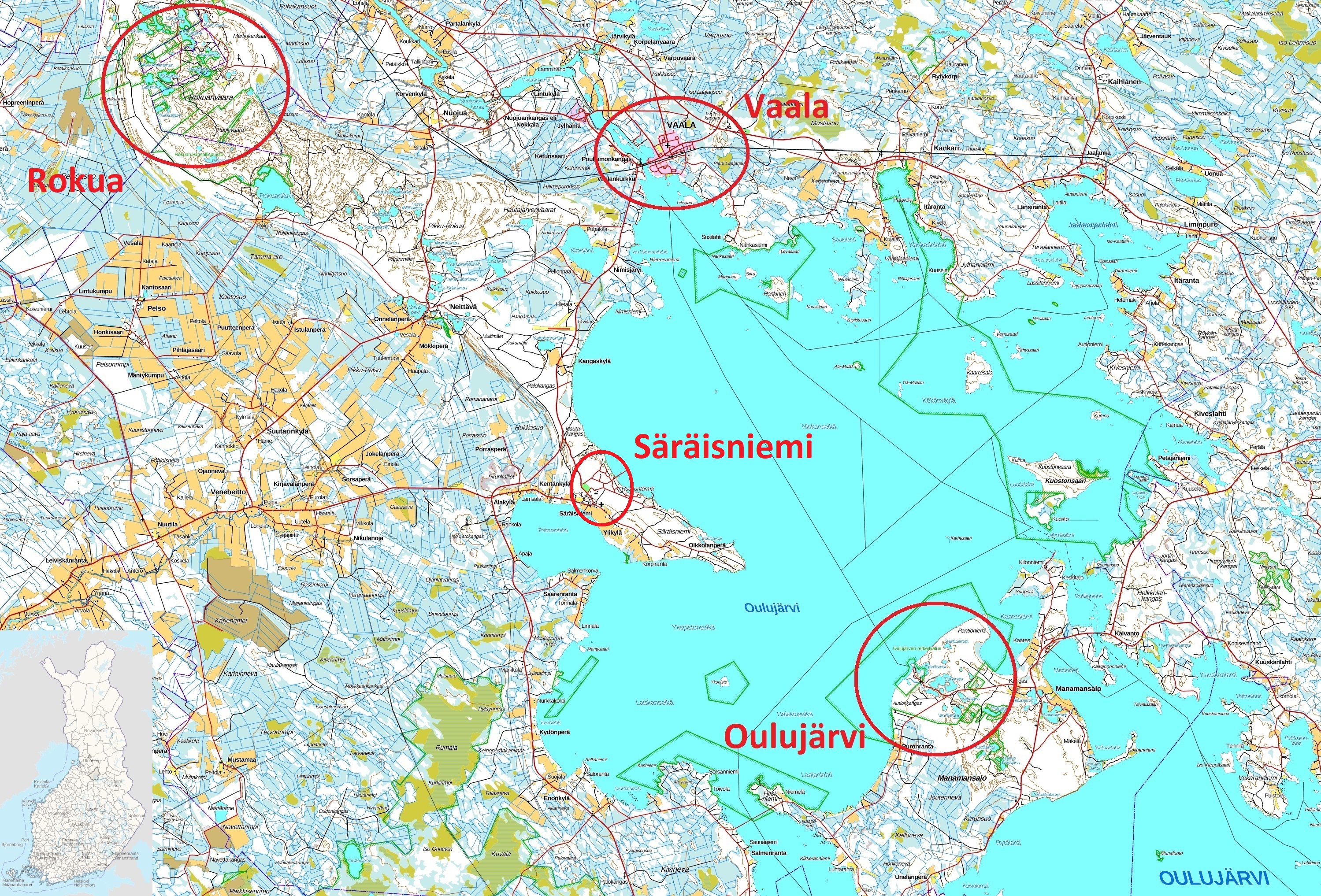 Всего рекреационных территорий в Финляндии семь: Эво, Инари, Исо-Сюёте, Кюльмялуома, Полярного Круга (Napapiiri), Оулуярви, Руунаа. То есть гораздо меньше, чем национальных парков (их 41). Есть, правда, еще редкий статус "рекреационного леса" (virkistysmetsä), на практике означающий примерно то же самое, а также есть подобного рода территории в муниципальном, а не государственном владении. Страницу рекреационной территории Оулуярви же, со схемами маршрутов, можно найти здесь.
