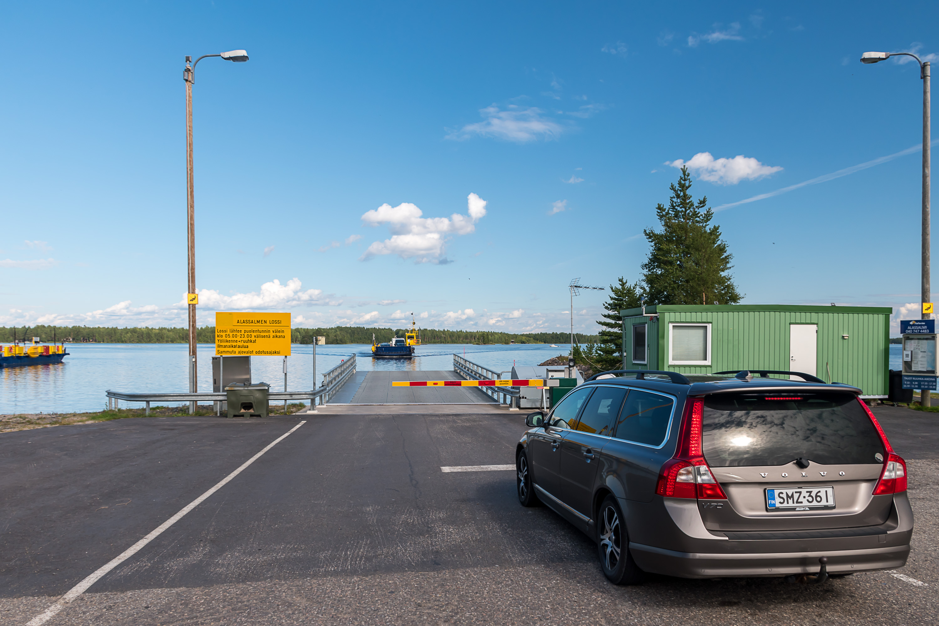Канатный паромчик, официально именуемый паромом Алассалми (Alassalmen lossi) — типовой старый маленький паром, из серии строившихся в 1970-х в Паркано паромов, может взять около 14 легковых машин, грузоподъемность 60 т. Как и все подобные паромы на внутрифинляндской дорожной сети, он бесплатен. Ходит с интервалом в полчаса, ночью или при отсутствии машин или при слишком большом их количестве — по требованию (рядом со шлагбаумом есть кнопка вызова парома).