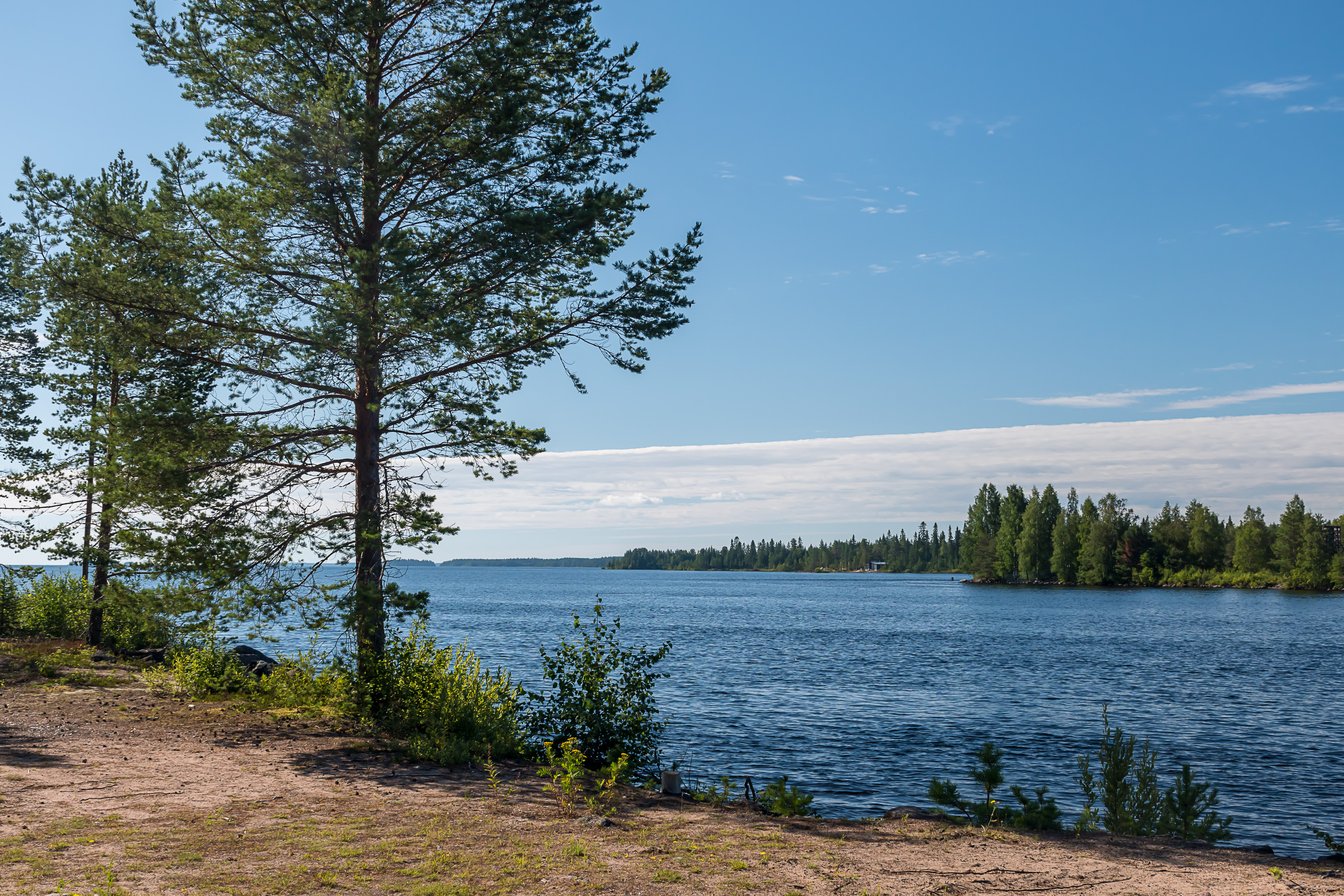 20. А в другую сторону уже видны просторы Оулуярви (Oulujärvi). Это озеро, площадью в 887 кв. км, по финским меркам необычно мало расчленено и бедно на острова, и в левой части кадра даже противоположного берега на горизонте не видно — до него тут 20 км. Озеро иногда поэтому и звали "морем Кайнуу", Kainuun meri. Впрочем, Оулуярви все-таки состоит из трех отдельных бассейнов, разделенных относительно узкими проливами. К Ваале выходит бассейн Нискаселькя (Niskaselkä), и вокруг Нискаселькя же мы будем ездить и дальше. Восточную часть Оулуярви, Палтаселькя, мы вкратце видели в посте про Каяани — по прямой то место почти в 50 км от Ваалы.