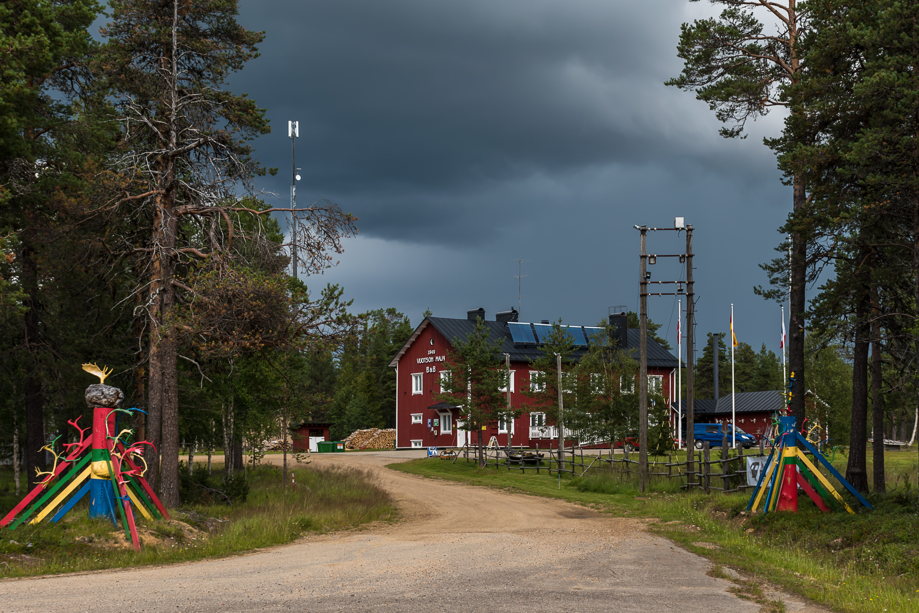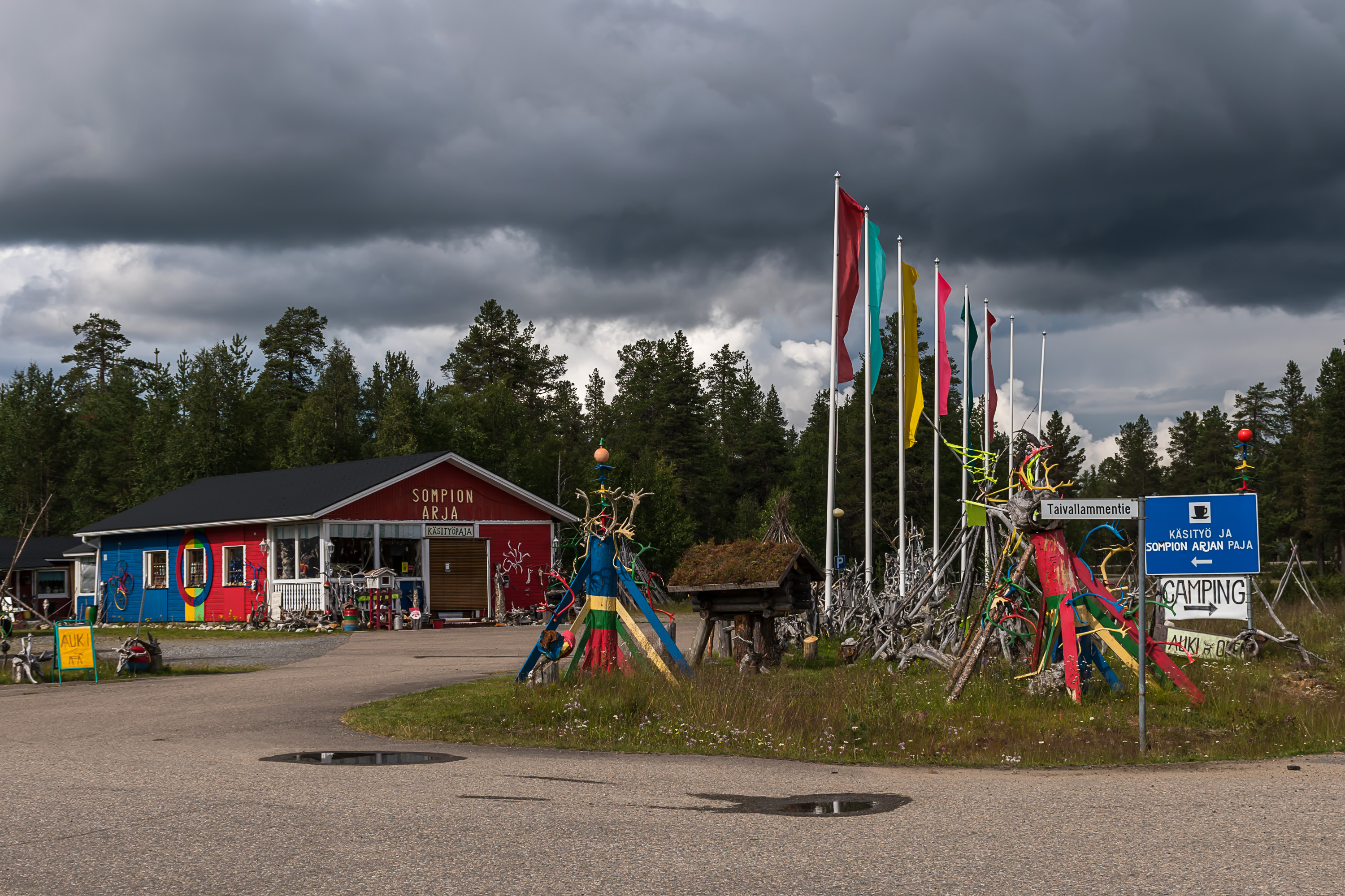 Так что здесь встречаются надписи на саамском и много всего для туристов с юга: сувениры, мастерские хэндмэйда, копии саамских традиционных построек, кемпинги и тому подобное. Ну и еще здесь много оленей. Но олени в Лапландии не редкость и начинаются еще в 300 км южнее отсюда :)