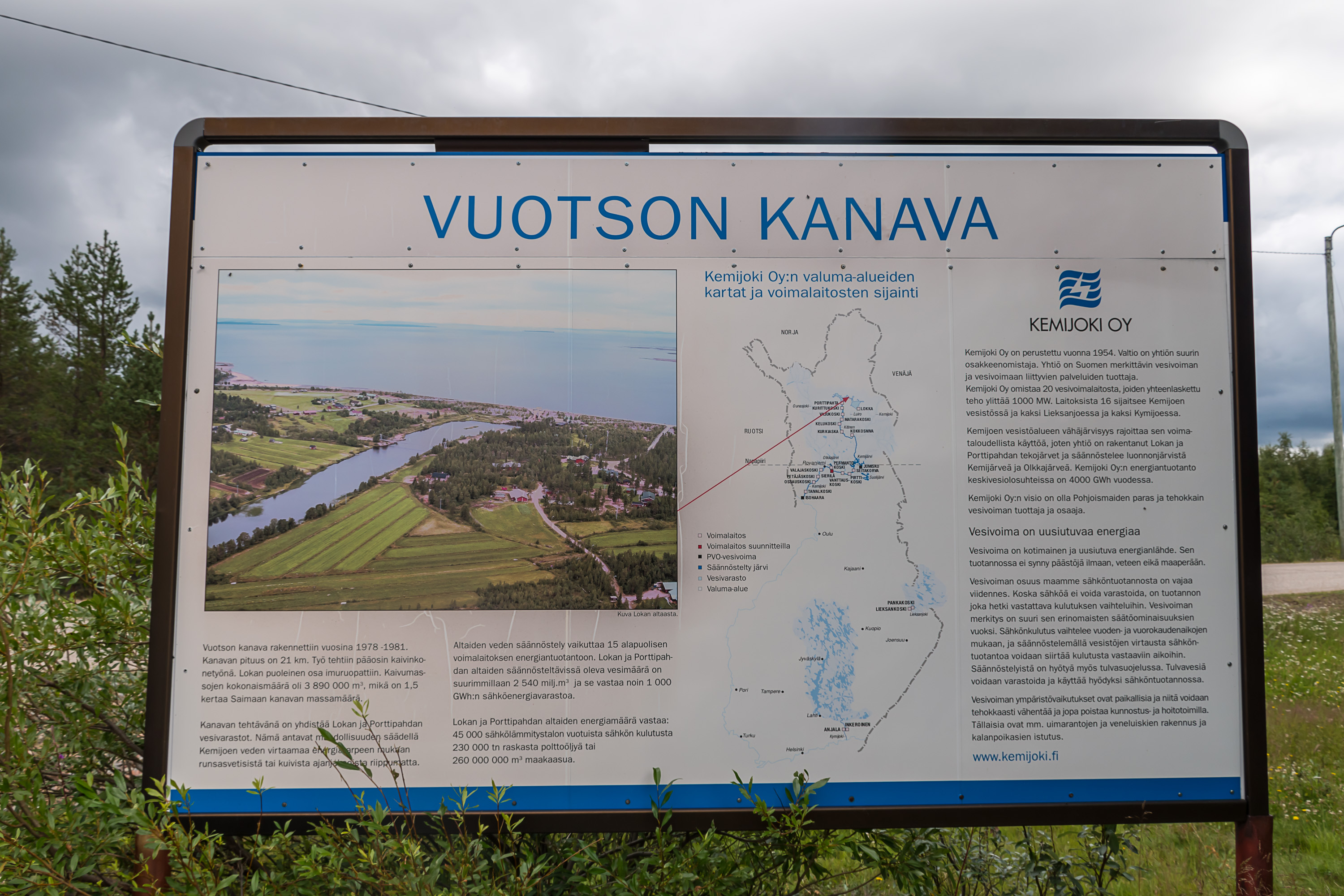 Под водой скрылось огромное болото Посоаапа (Posoaapa), несколько саамских деревень и огромные территории оленеводства. Локка — самое большое водохранилище ЕС, 216-418 кв. км в зависимости от наполнения. Разумеется, построили водохранилища не просто так; они регулируют каскад ГЭС крупнейшей реки Лапландии, Кемийоки, которые вырабатывают более трети гидроэлектричества страны. Между собой они соединены вот этим каналом Вуотсо (Vuotson kanava), масштабным, но незнаменитым (но памятник именно ему).