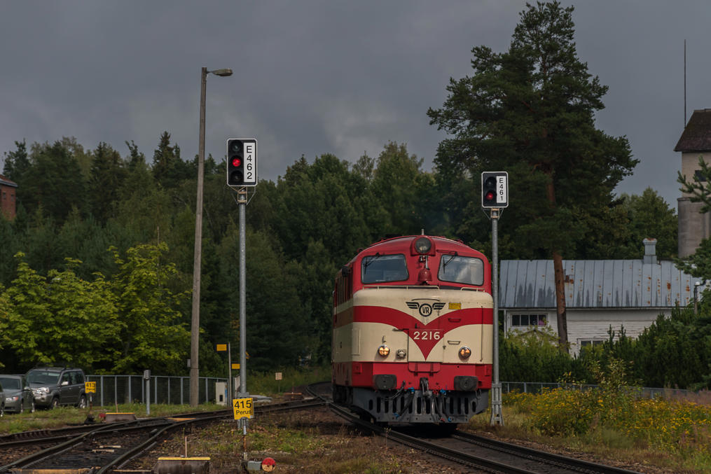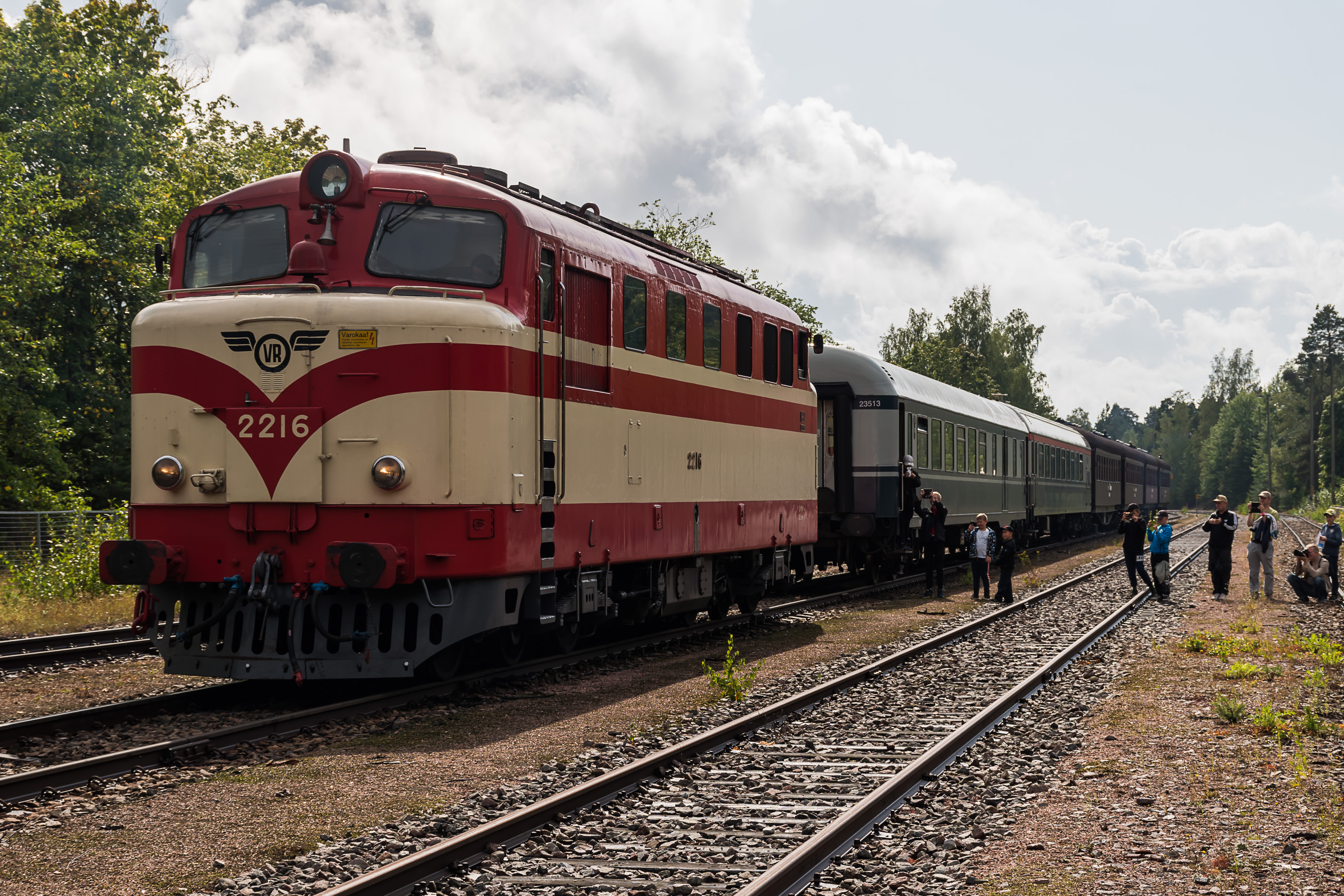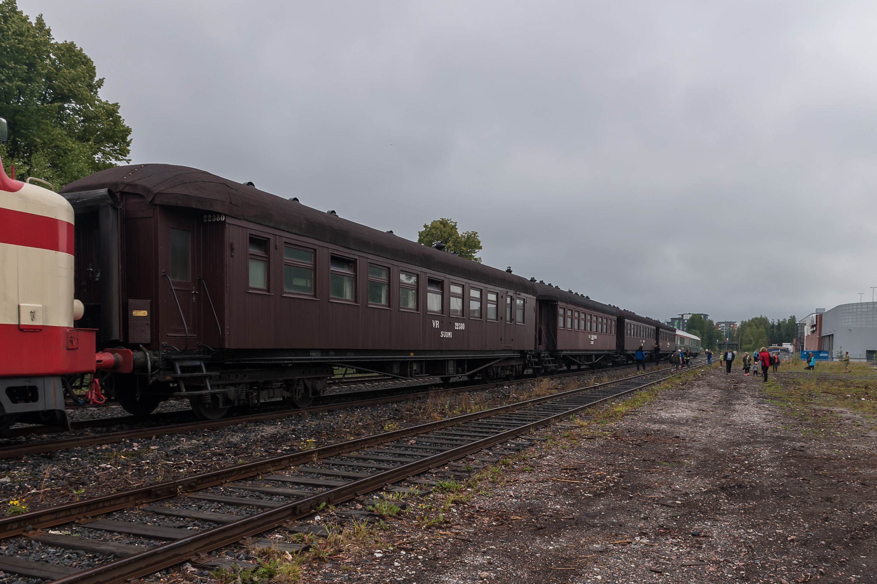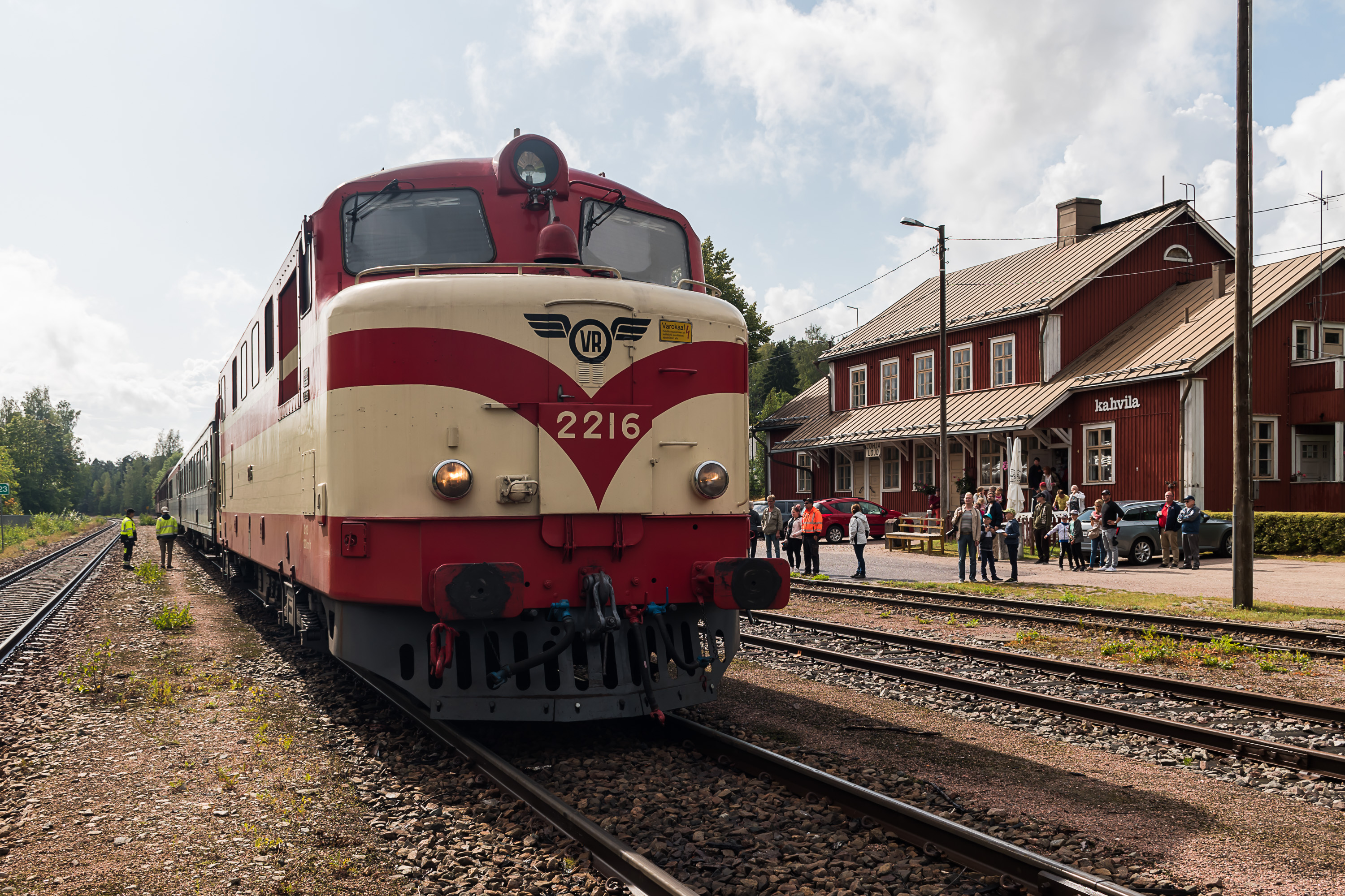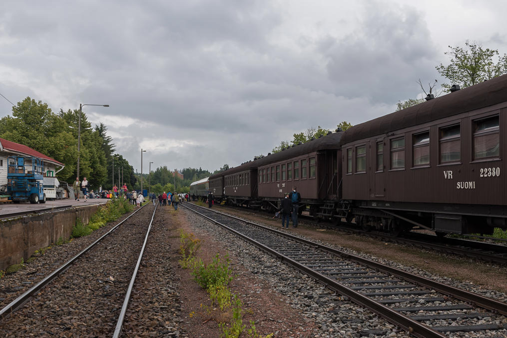 Поезд шел от ж/д музея в Хювинкяя под красавцем-тепловозом Dr12. Такие строились в 1959-1963 в Тампере и ходили до 1990. Сейчас свои локомотивы в Финляндии не производятся (только ж/д вагоны и трамваи).