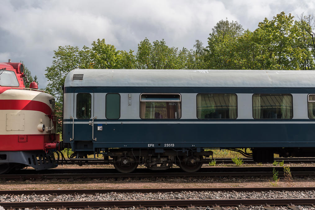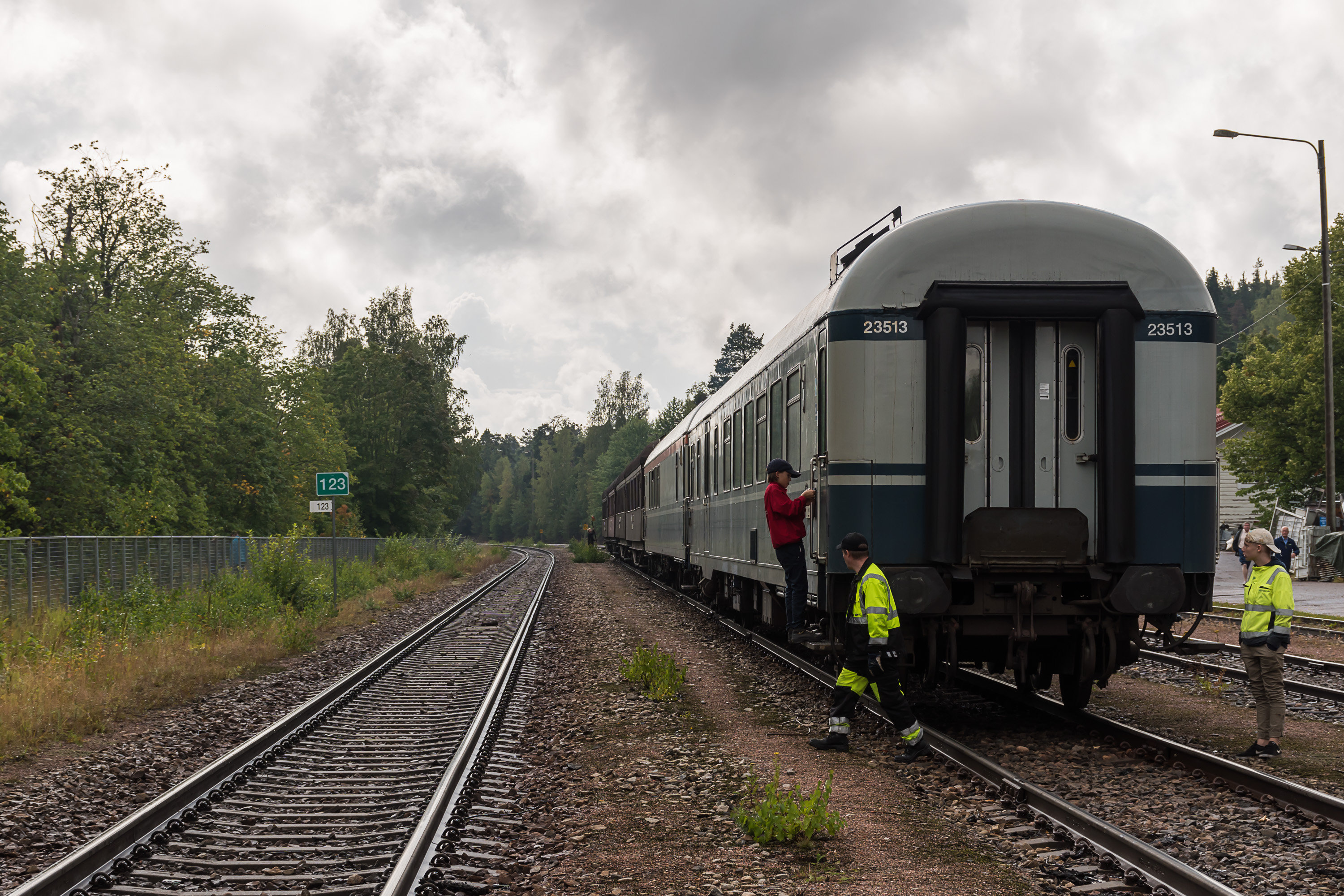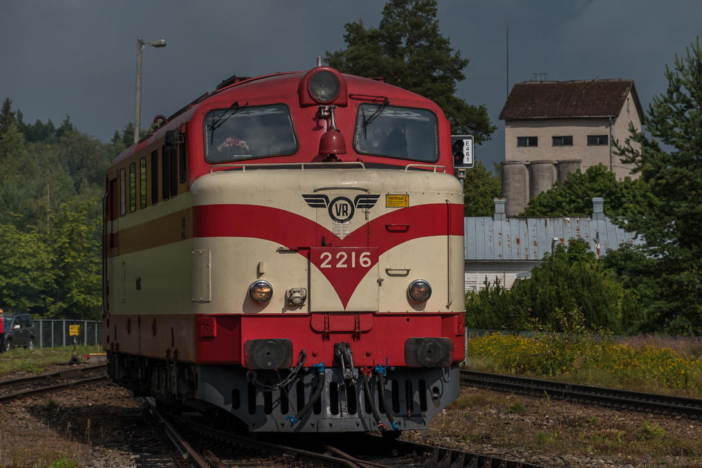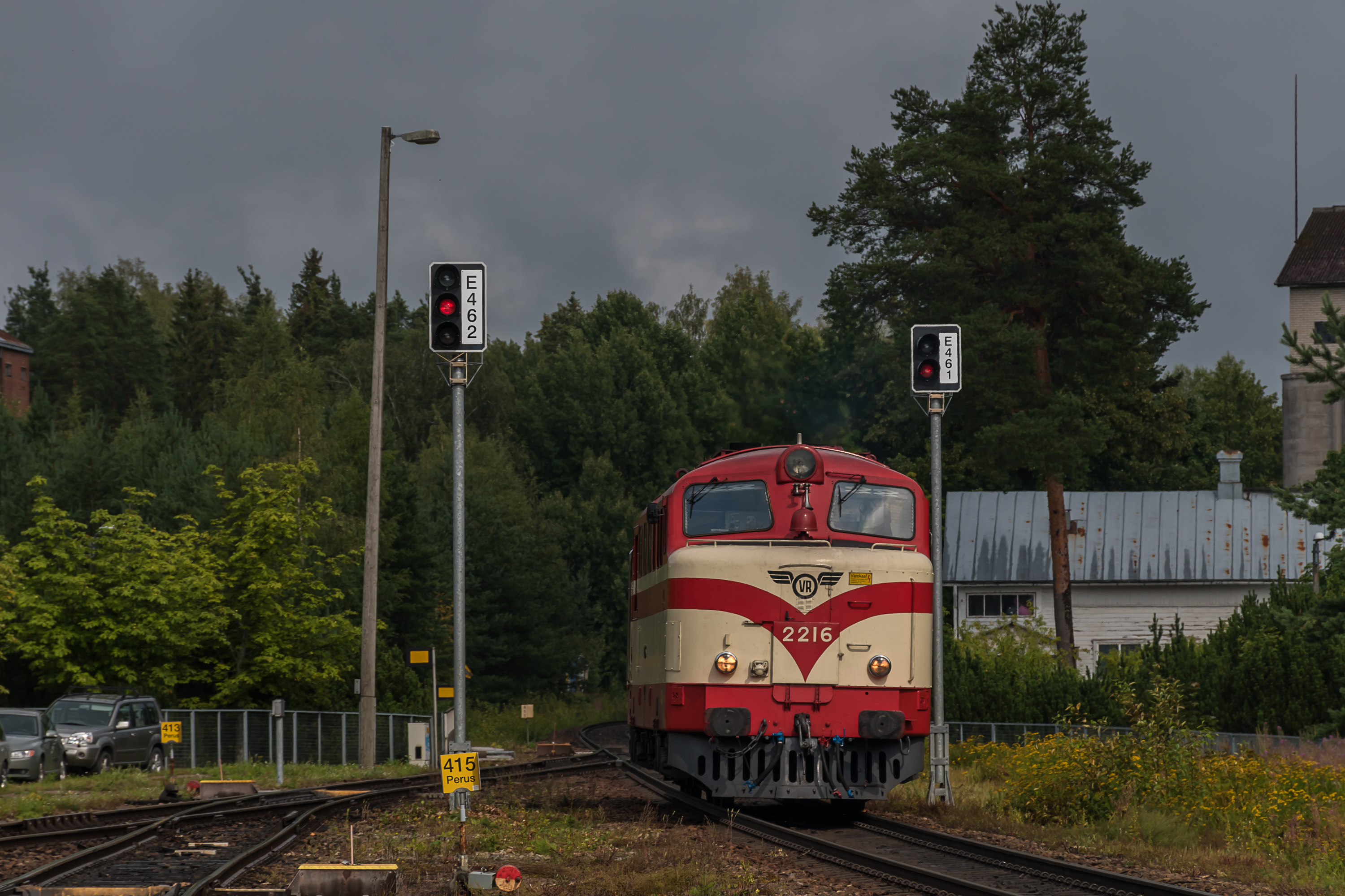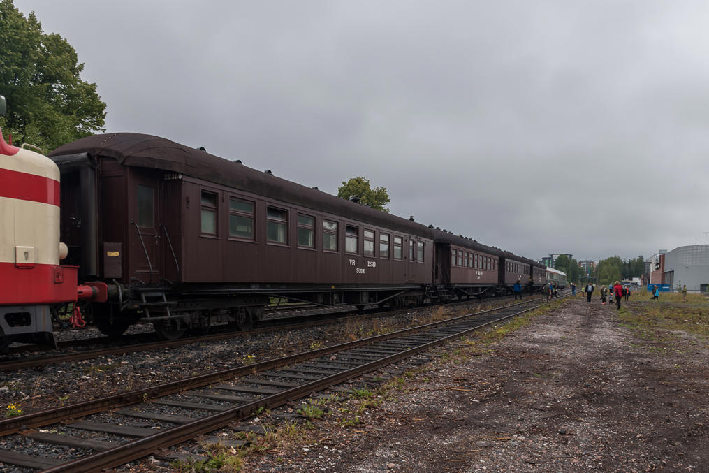 Поезд шел от ж/д музея в Хювинкяя под красавцем-тепловозом Dr12. Такие строились в 1959-1963 в Тампере и ходили до 1990. Сейчас свои локомотивы в Финляндии не производятся (только ж/д вагоны и трамваи).