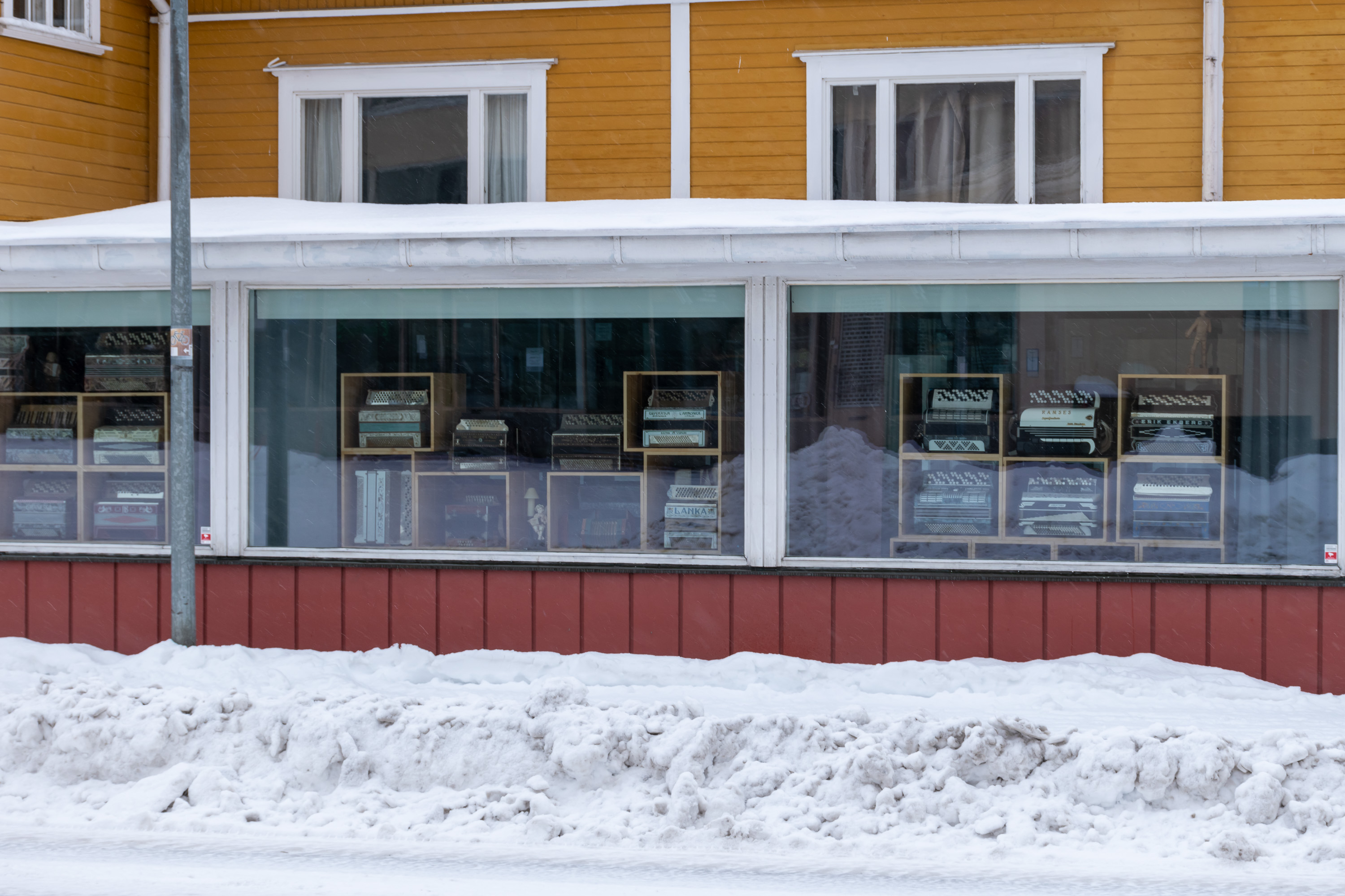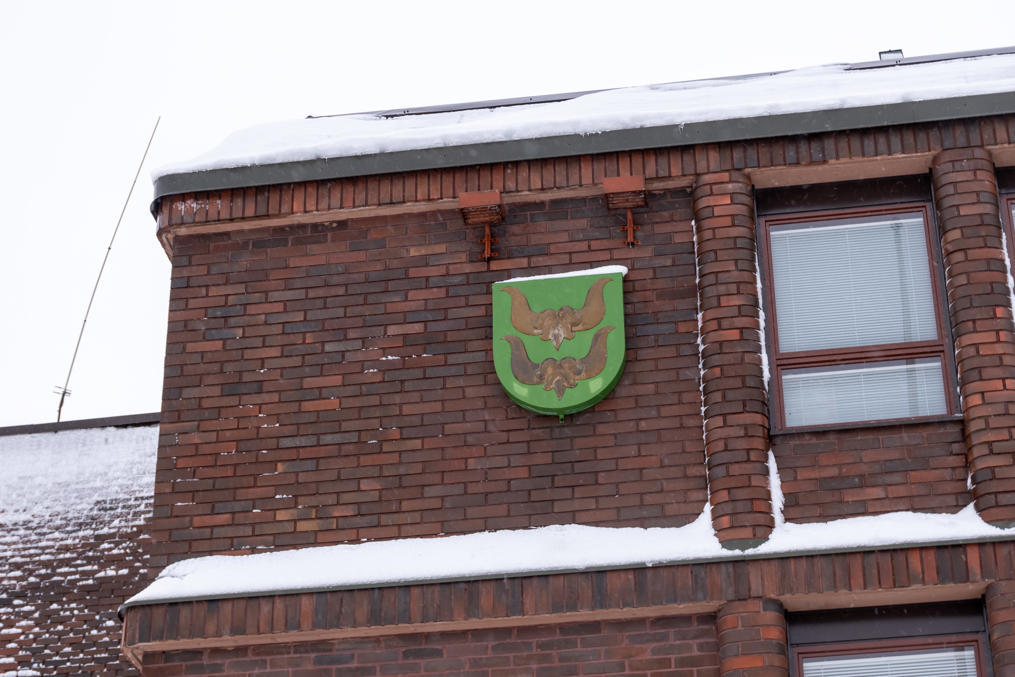 Какой-то клуб в симпатичном молокозаводе, музей аккордеонов, герб с парой рогов и голова лося на въезде. Бычьи рога, потому что по легенде, когда здесь построили церковь, дьявол разозлился и метнул в нее огромный камень, но в церковь не попал, а попал в мужика, который пахал поле на бычьей упряжке. Но мужика не жалко, потому что он в воскресенье пахал, когда бог не велел.