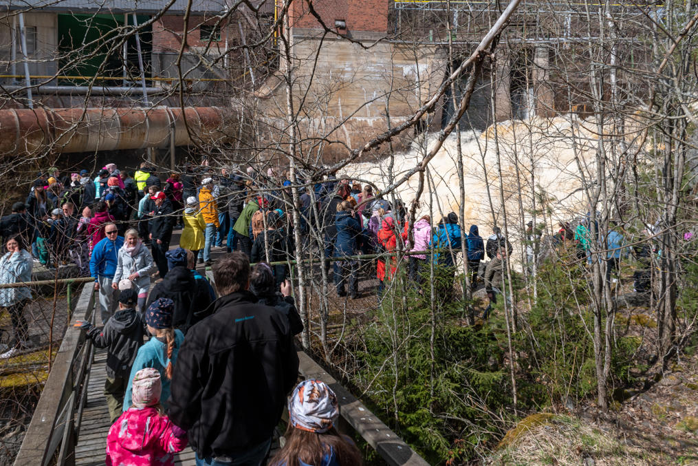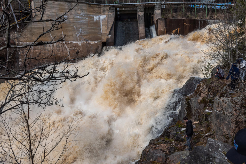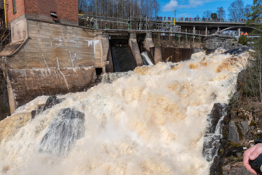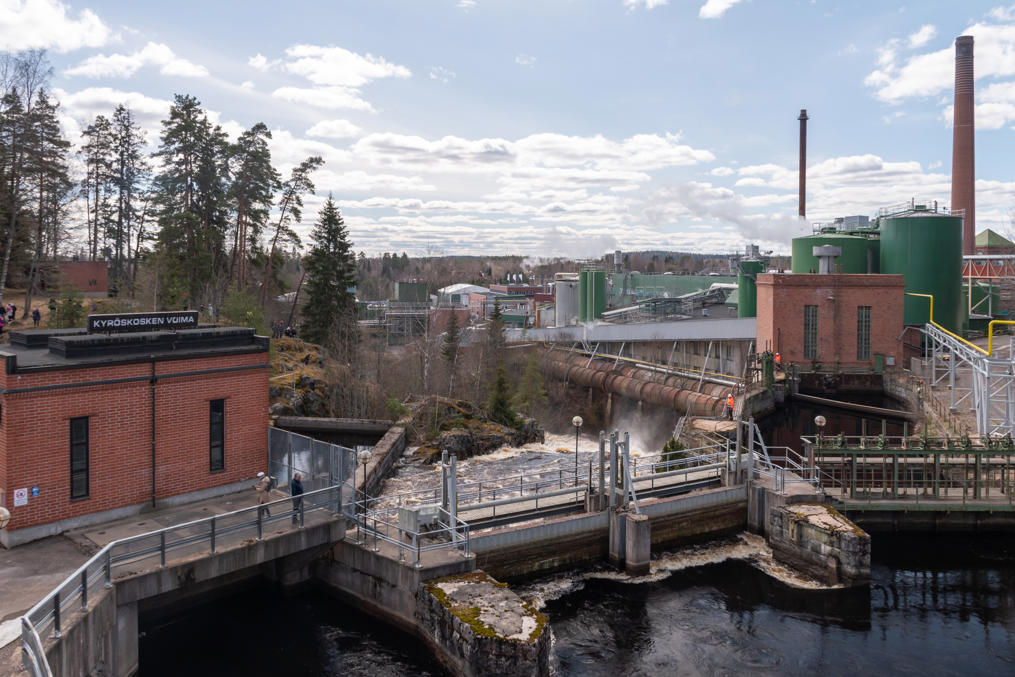В Кюрёскоски/Хялляпюёря воду пускают лишь четыре раза в год, я несколько лет хотел побывать и в этом году на 1 мая добрался-таки (расписание: kyroskoskenvoima.fi). Ну а так здесь работает небольшая, на 12 МВт, ГЭС, и картонный комбинат компании Metsä Board.
