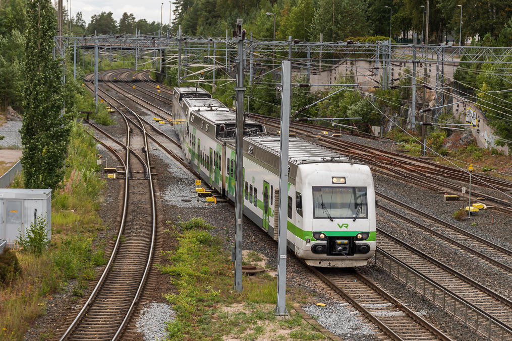 - электрички (lähijuna) — делятся на электрички HSL (в Хельсинки и окрестностях, см. городской транспорт) и VR (более дальние), но в любом случае, если вы едете в пределах зон HSL, то вам достаточно билета HSL, а если нет, тогда покупается, как и на остальные поезда, через VR. Билеты стоят фиксированно и недорого, без места, конечно, можно взять велосипед.