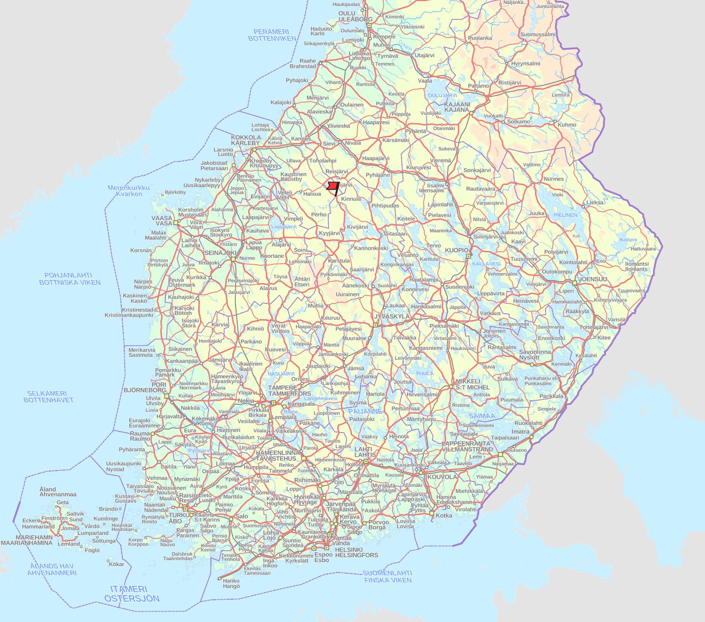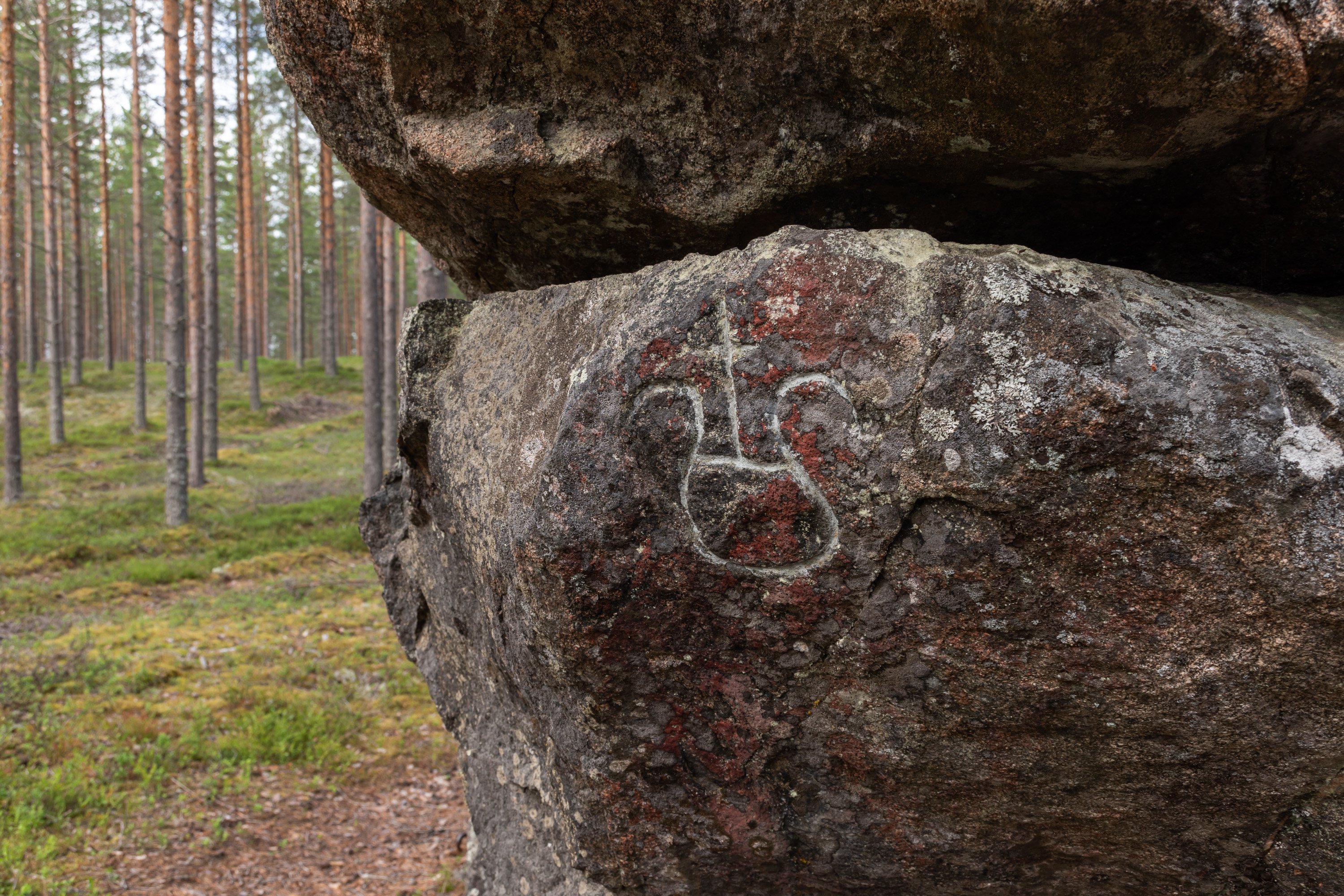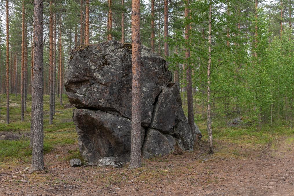 Межевой камень (Райякиви, Rajakivi, фин. букв. граничный камень) на границе финляндских областей Центральная Остроботния и Центральная Финляндия, муниципалитеты Лестиярви и Киннула, у трассы 58. Отличный пример старого финского межевого камня.