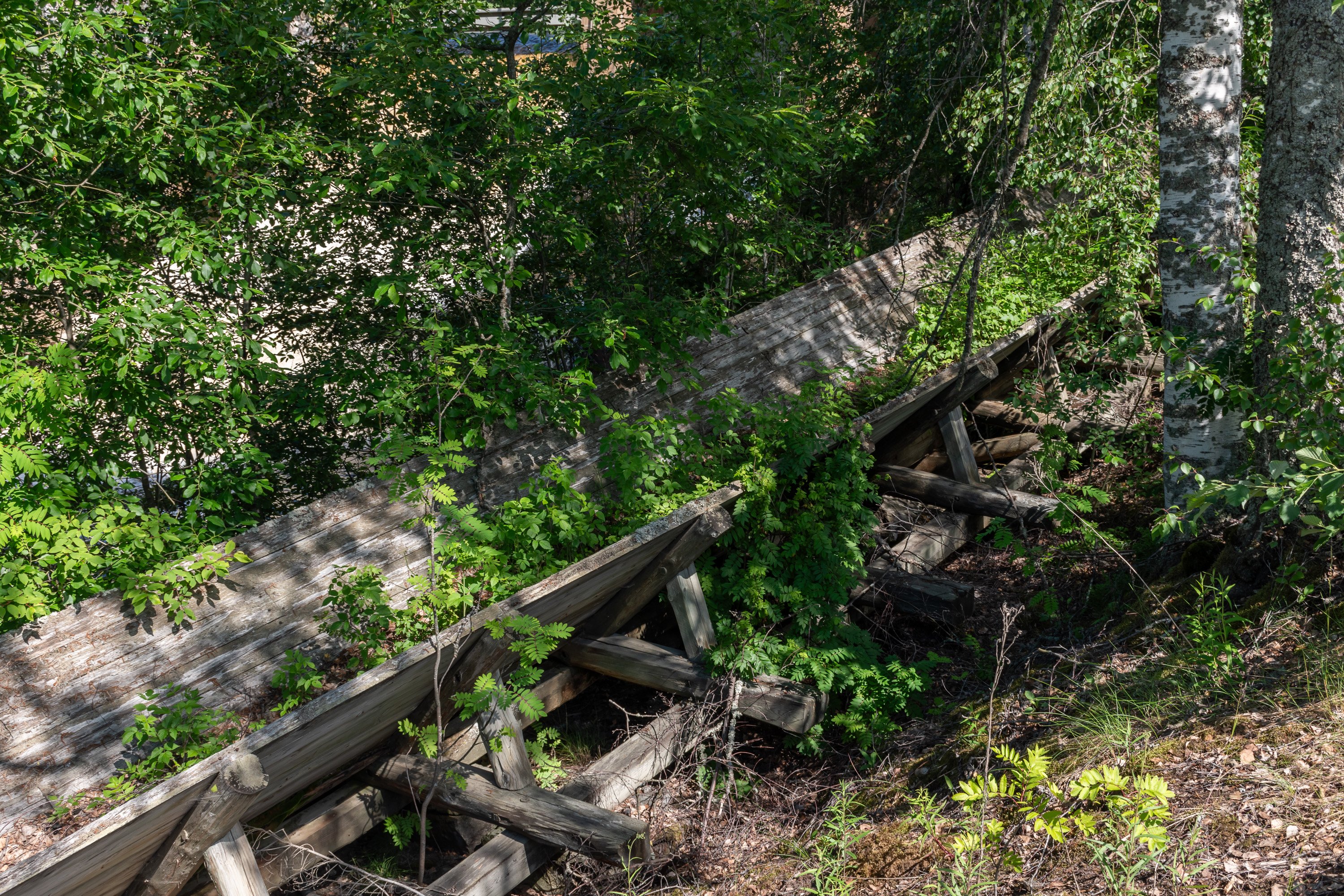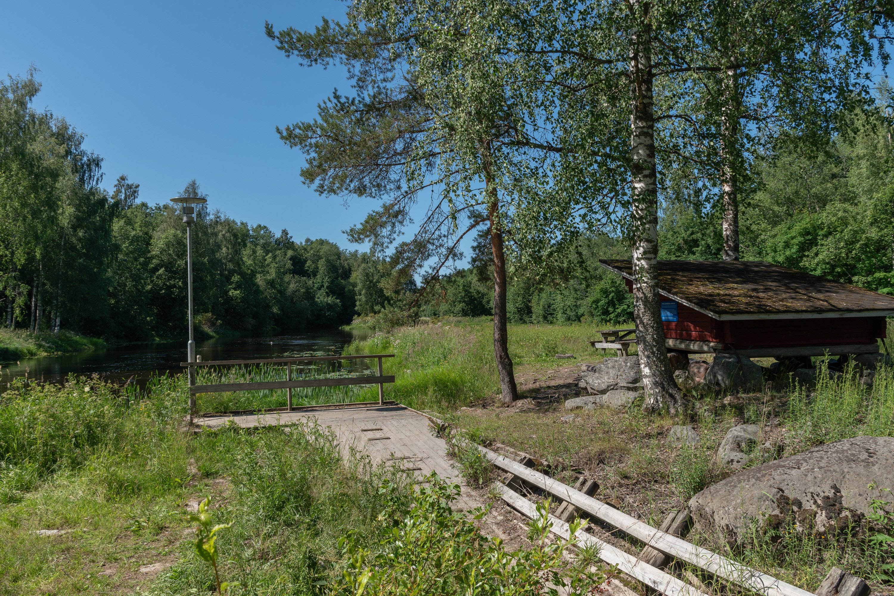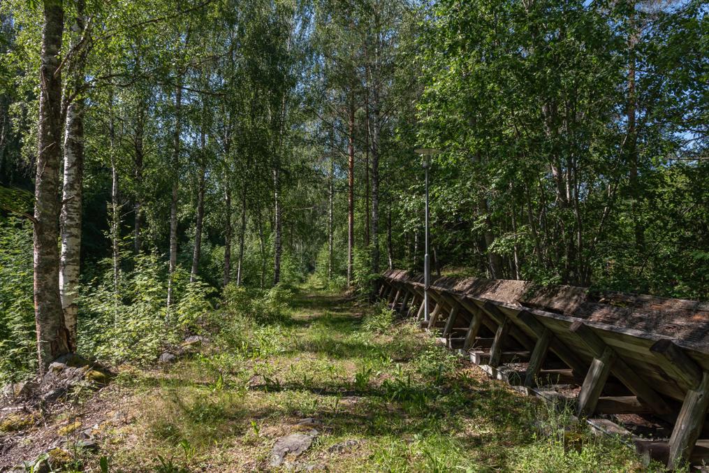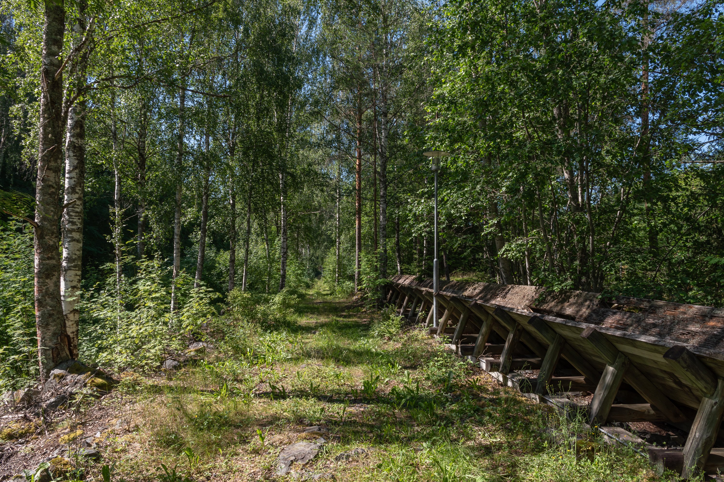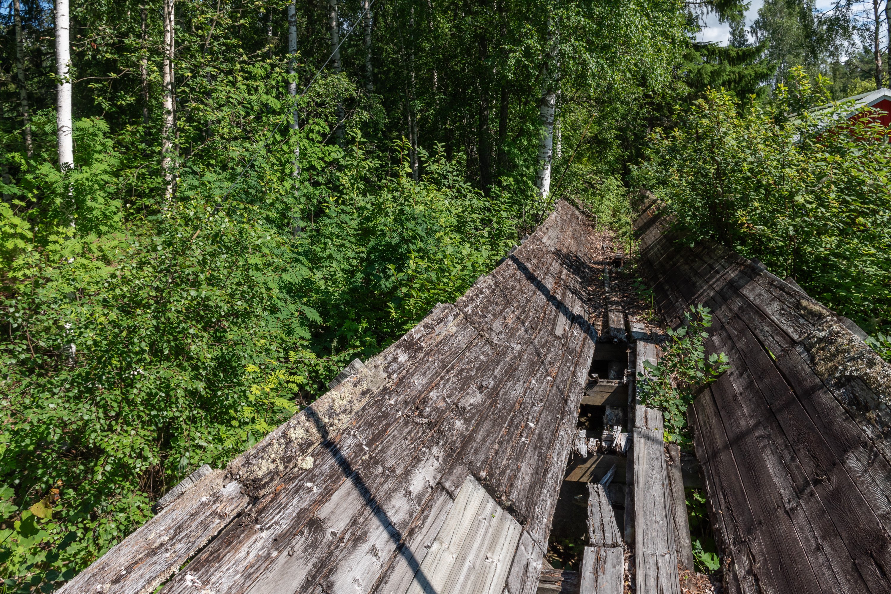 17. ГЭС оборудована длинным деревянным желобом для лесосплава по бревнышку мимо плотины, частично восстановленным. Такой на многих плотинах строили (самый известный, наверное, в Иматре) и даже на некоторых в остальном нетронутых водопадах (например, Ауттикёнгяс в Лапландии).