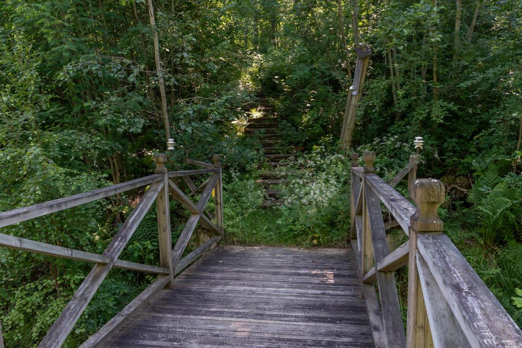18. Дом управляющего ГЭС пустует и обветшал, а ведущие к нему тропинки почти полностью заросли. Мне очень понравилось, как электрические изоляторы тут используются в качестве декоративных элементов перил.