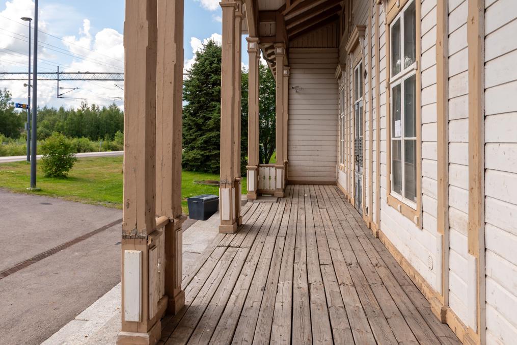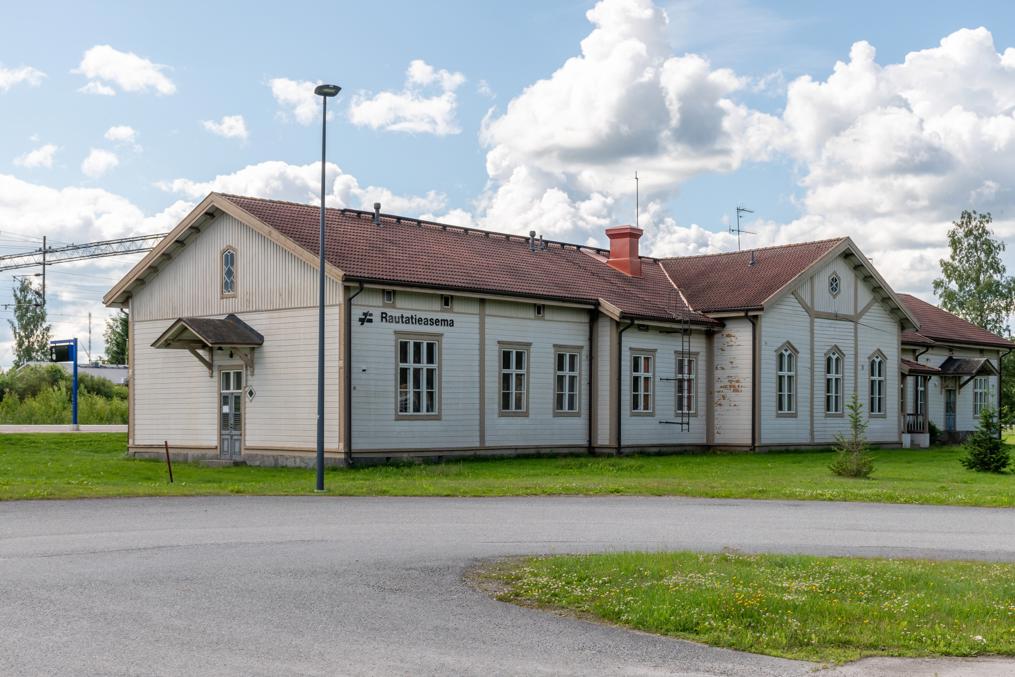4. И ж/д станция даже есть, на главном ходу Сейняйоки-Оулу, правда, далеко не все поезда Хельсинки-Оулу/Рованиеми останавливаются. Вокзал закрыли в 2021, зато теперь там какой-то "коливинг-коворкинг-спейс" делают. Оригинальное место для этого, конечно. Люблю деревянные старые вокзалы линии Сейняйоки-Оулу — большинство из них сохранились хорошо, хоть в основном и не используются по назначению.