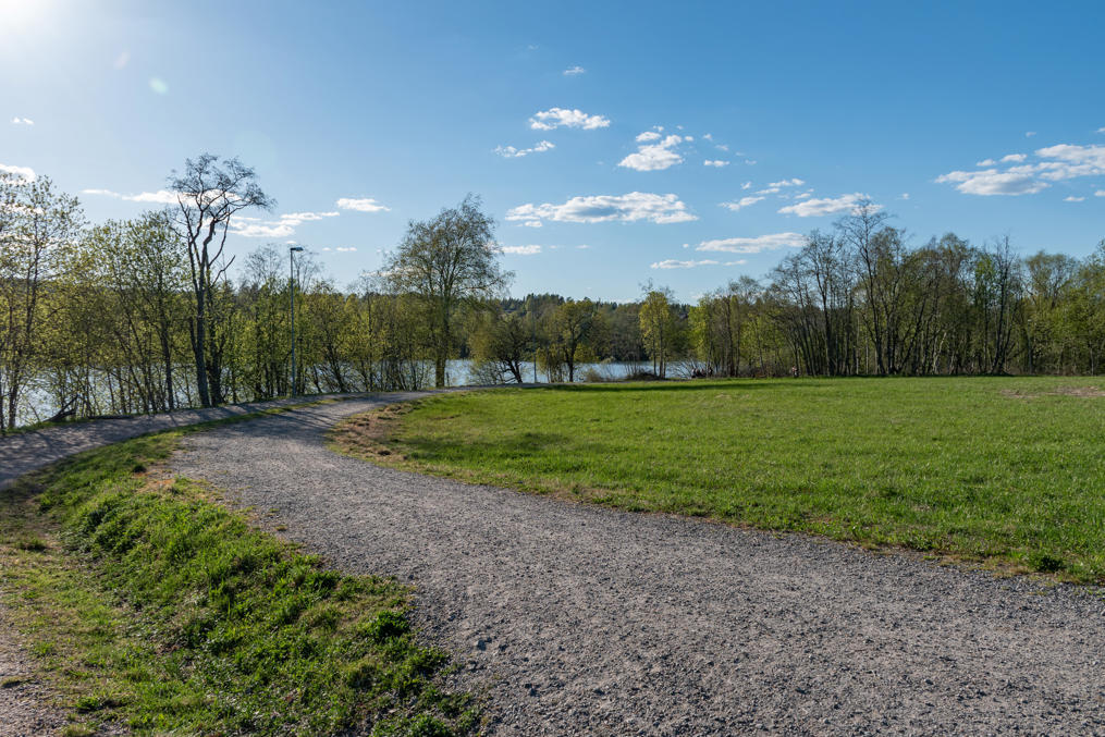 48. Вышел к цивилизации к озеру Сидшён (Sidsjön). Приятное небольшое озеро, вокруг него дорожки, люди купаются. Озеро, подпертое плотинкой, и склон горы к востоку от него являются одноименным природным заказником, но жилье начинается уже совсем недалеко. Отсюда я спустился обратно в центр через Сёдермальм.