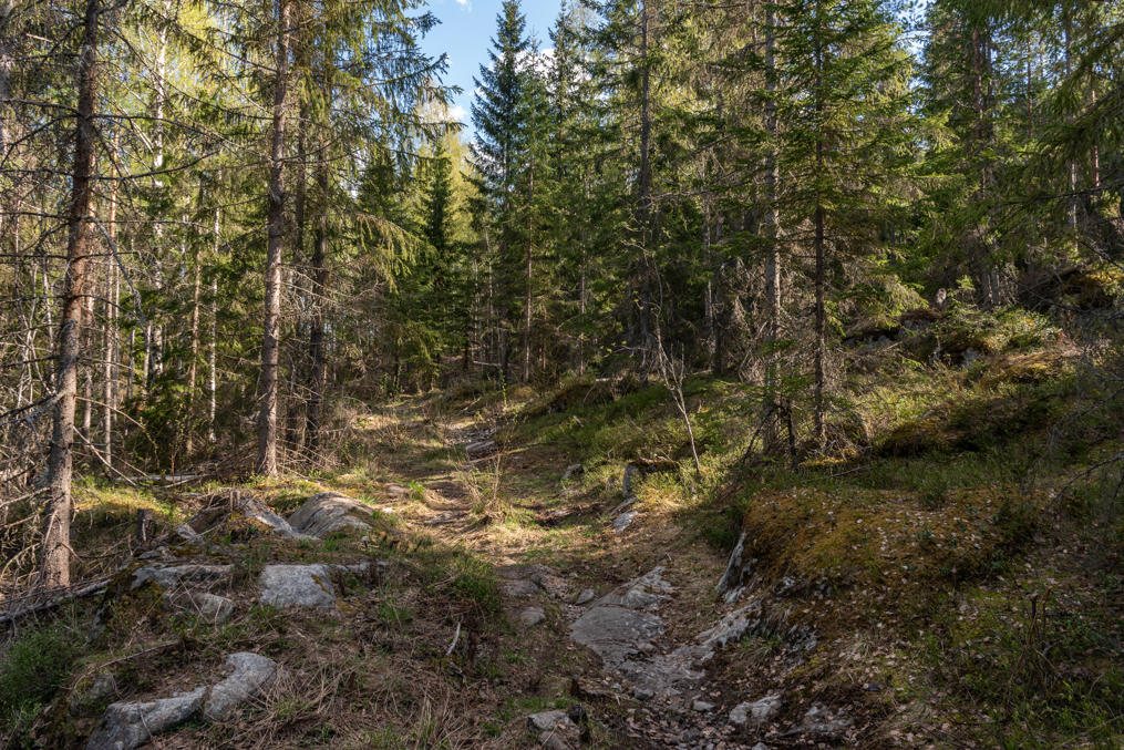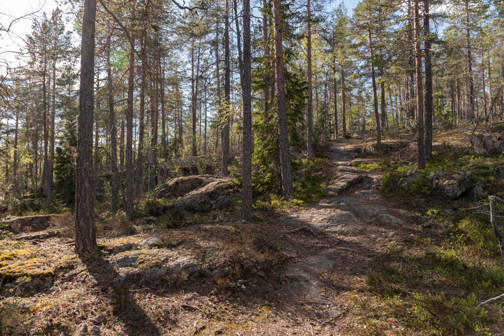 41. Со стороны Кубикенборга, однако, официальных маршрутов на гору нет никаких, так что я нашел неофициальную, никак не отмеченную на местности, но нарисованную на OpenStreetMap тропку. После нескольких дней в городе по лесу полазить было только в удовольствие, несмотря на жару. В лесу росли подснежники и строчки.