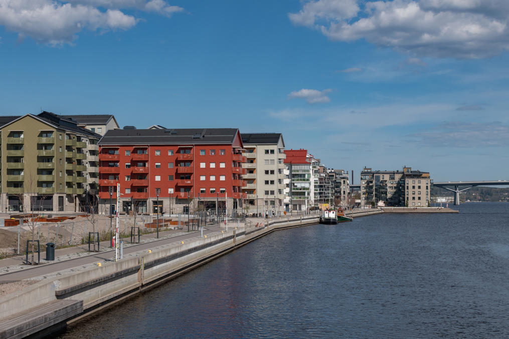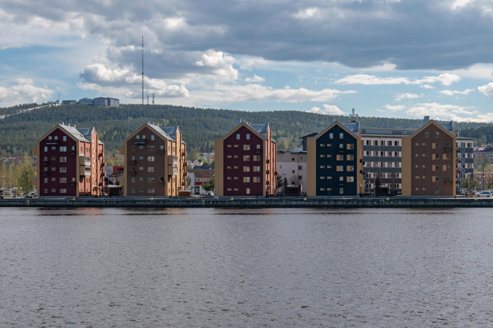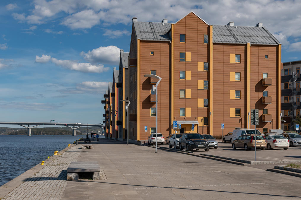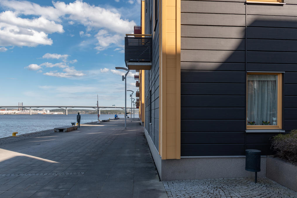 20. С противоположной стороны от устья реки Селонгерсон, еще ближе к центру, а также к вокзалу Сундсвалль-Центральный, располагается Большая Портовая пристань, Стура-Хамнкайен (Stora hamnkajen), она же Стокгольмская пристань (Stockholmskajen). Здесь когда-то был паромный терминал, из которого в 1966-1996 годах ходили паромы в Финляндию, в Ваасу (а также несколько лет в Пори, но туда не прижились). Вокруг была другая промышленность. Сейчас от этого всего ничего не осталось, а пять деревянных многоэтажек на набережной, хорошо видных со многих точек Сундсвалля, построены в начале 2000-х.