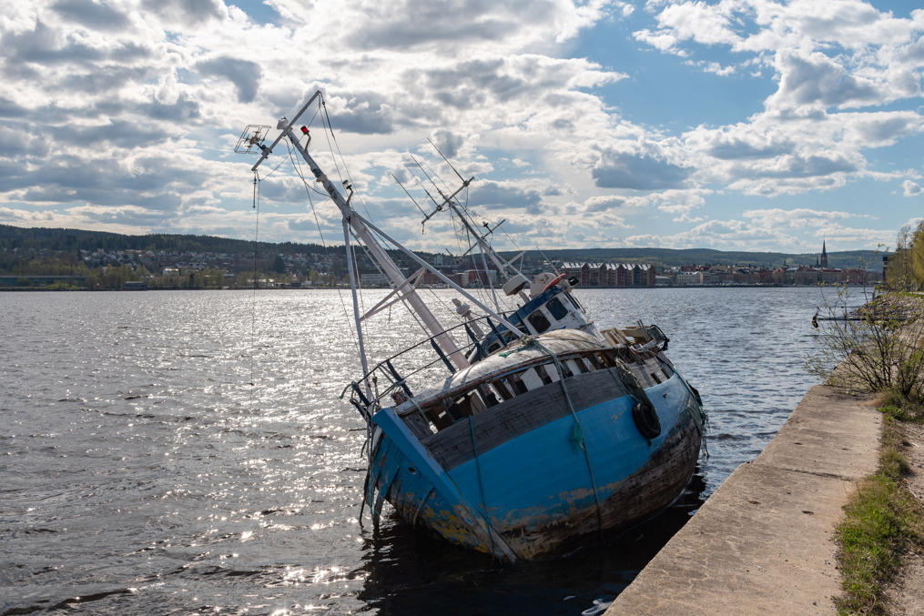 13. Первым делом видим притонувшее рыбацкое суденышко внезапно :) Больше здесь ничего не пришвартовано.