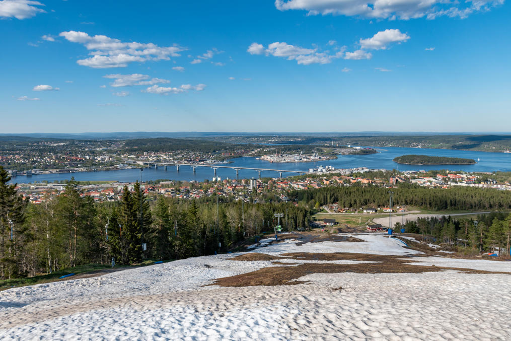 34. Спускаться обратно к заливу здесь не очень удобно из-за трассы E14 и железной дороги, но на город и Северную гору вид c с берега неплохой.