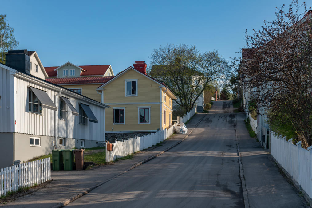 28. За Бергсгатан/E14 продолжаются тихие улочки, но теперь с более хаотичной планировкой и начинающие довольно круто лезть в гору.