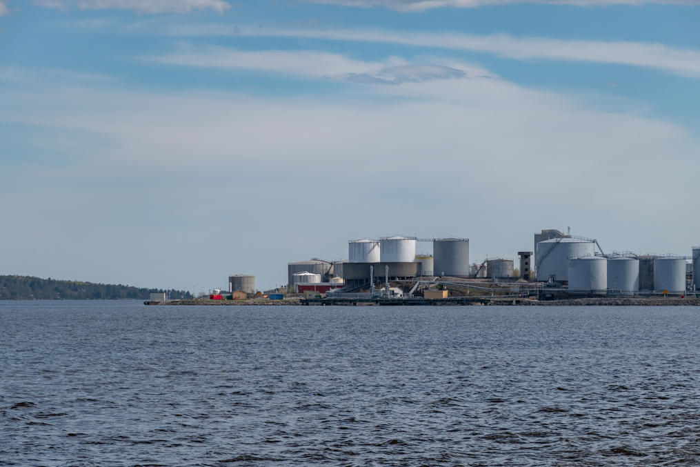 10. На противоположном берегу видна нефтяная гавань — один из двух районов порта Сундсвалля. Второй район, Тунадальская гавань, из города увидеть сложно, он расположен в проливе Альнёсундет, в месте, где берег за целлюлозным комбинатом заворачивает на север.
