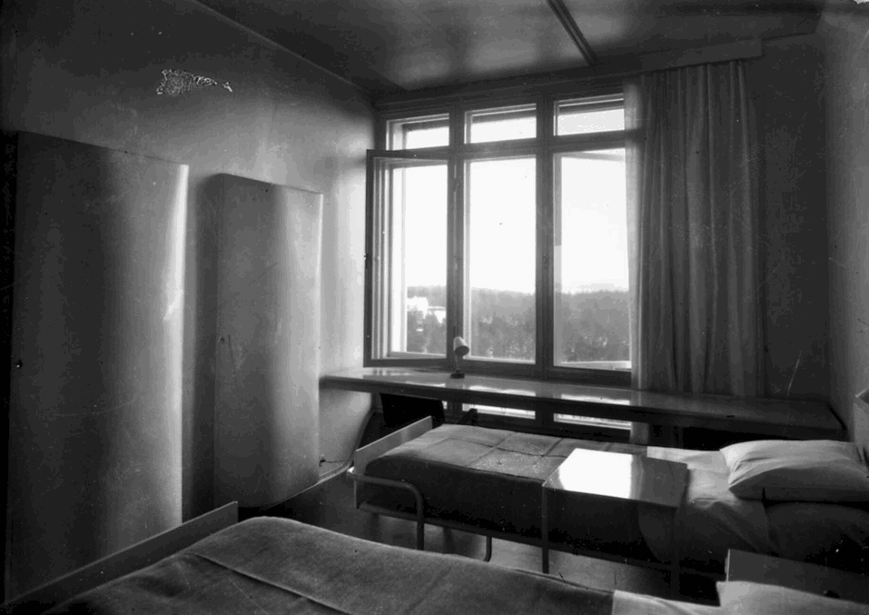 В те годы в стране до 10 тыс. человек в год умирало от туберкулеза, и с ним боролись в т. ч. строительством тубсанаториев. Для этого выбрали место в окружении сосновых лесов, в паре километров от центра Паймио, а архитектором выбрали еще молодого Аалто. Исторические фото с сайта санатория: