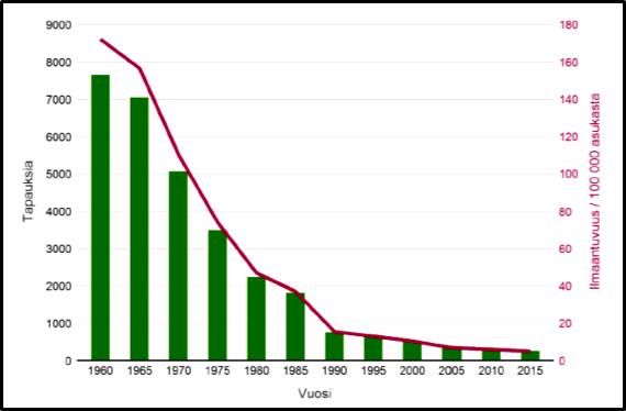 Обычно когда старое, к примеру, промышленное здание останется не у дел, это всегда грустно. Но тут можно смело сказать, что санаторий просто выполнил свою функцию, а ныне туберкулез побежден; в год в Финляндии им болеет теперь менее 200 человек (из них более половины иностранцы). На графике заболеваемость туберкулезом в Финляндии на 100 тыс. человек: