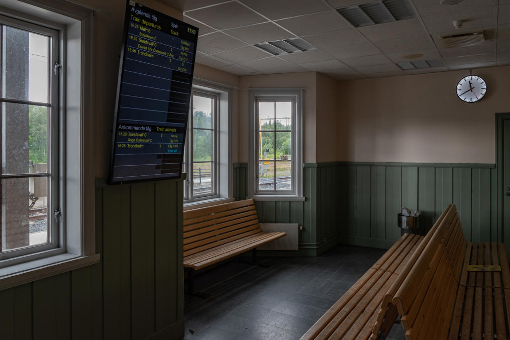 Некоторые вагоны в откровенно скверном состоянии. У этой компании всего несколько поездов, но длинных и спальных; есть еще Стокгольм-Берлин вроде к примеру. Этот популярен для заброски в Оре; крупный лыжный курорт Оре (Åre) находится в 60 км от границы (Стурлиен тоже лыжный курорт, но мелкий).
