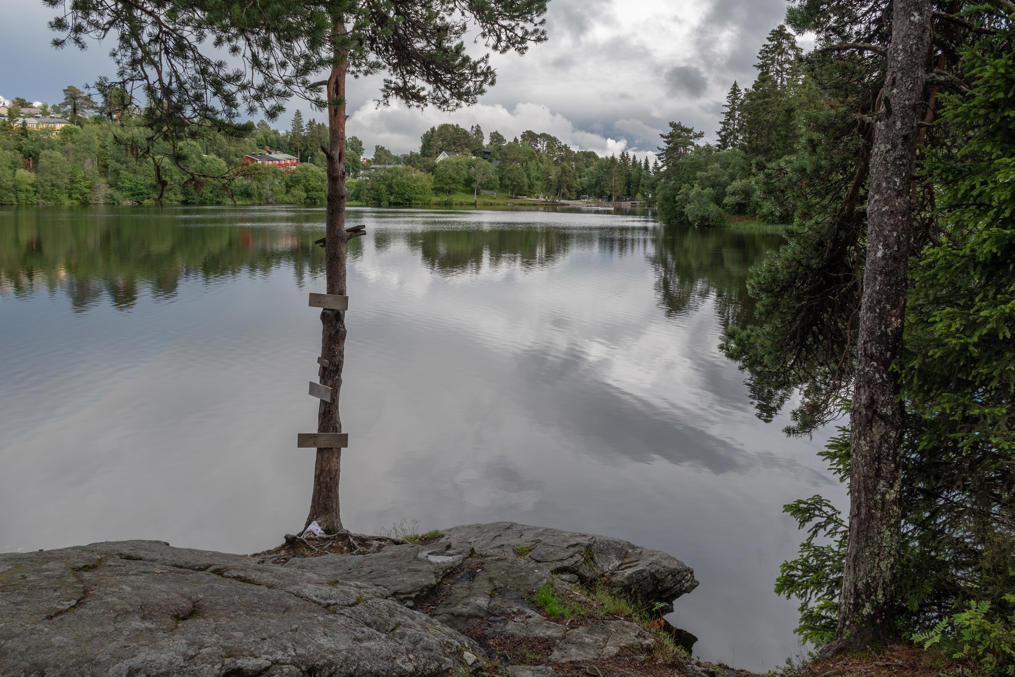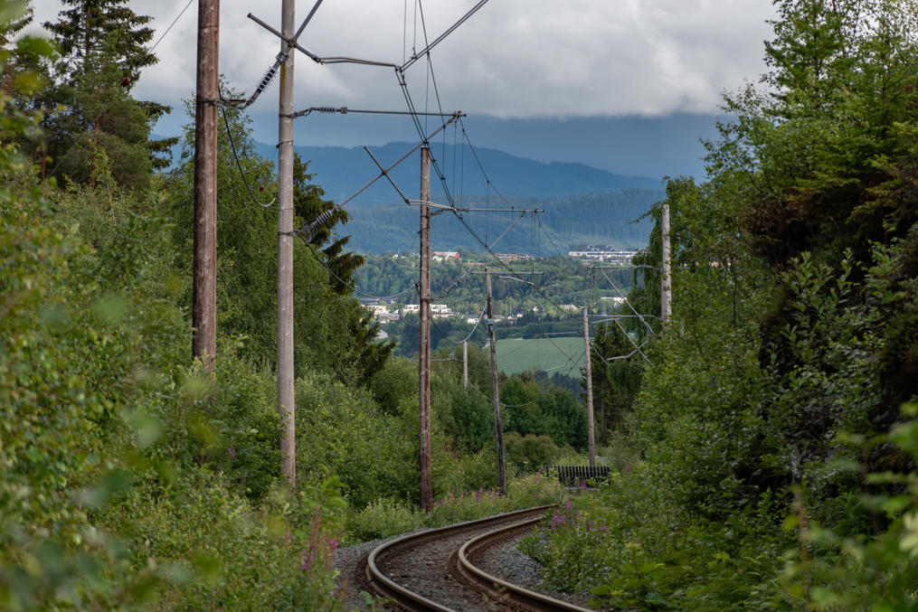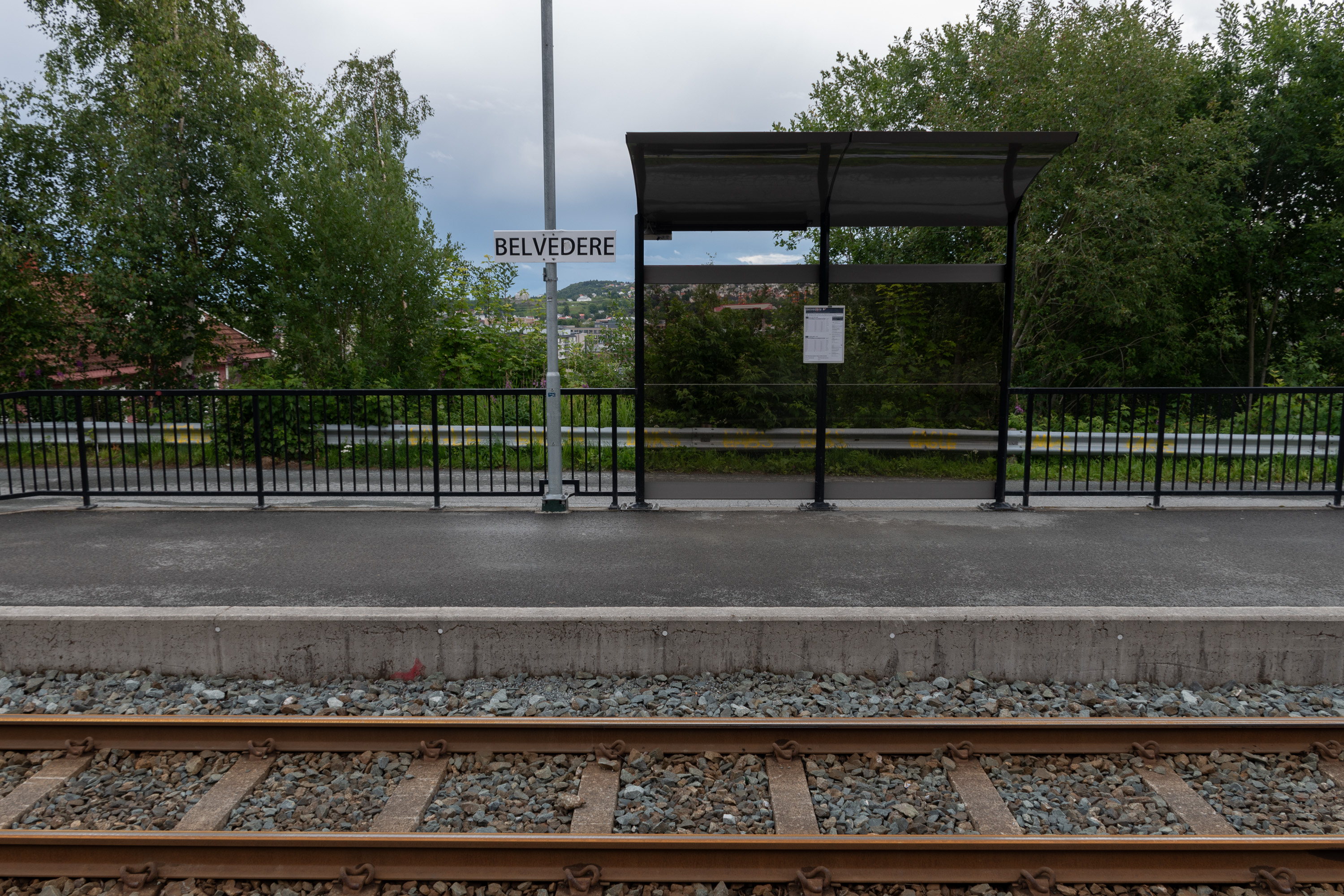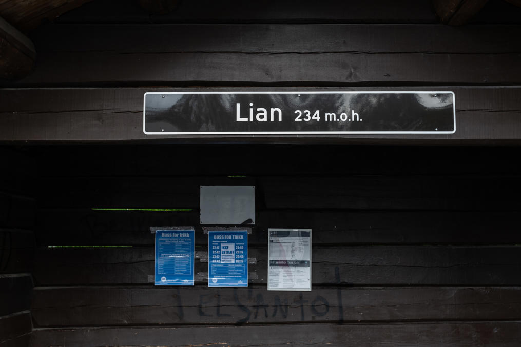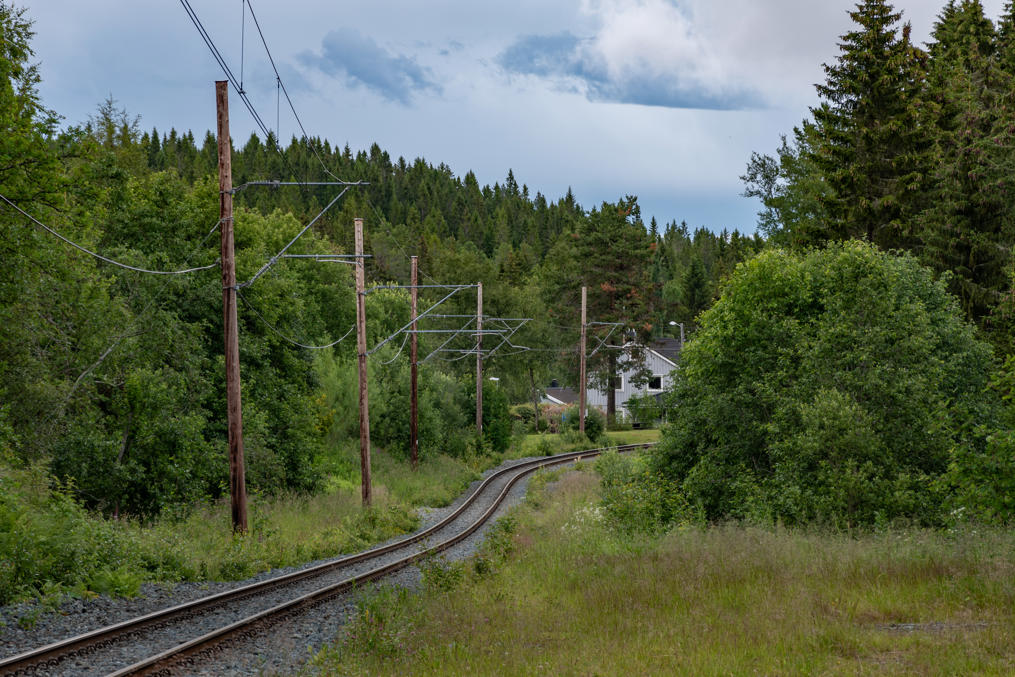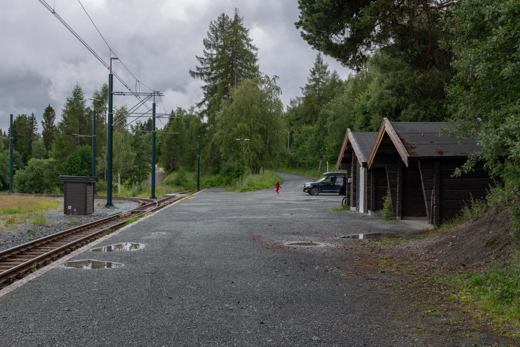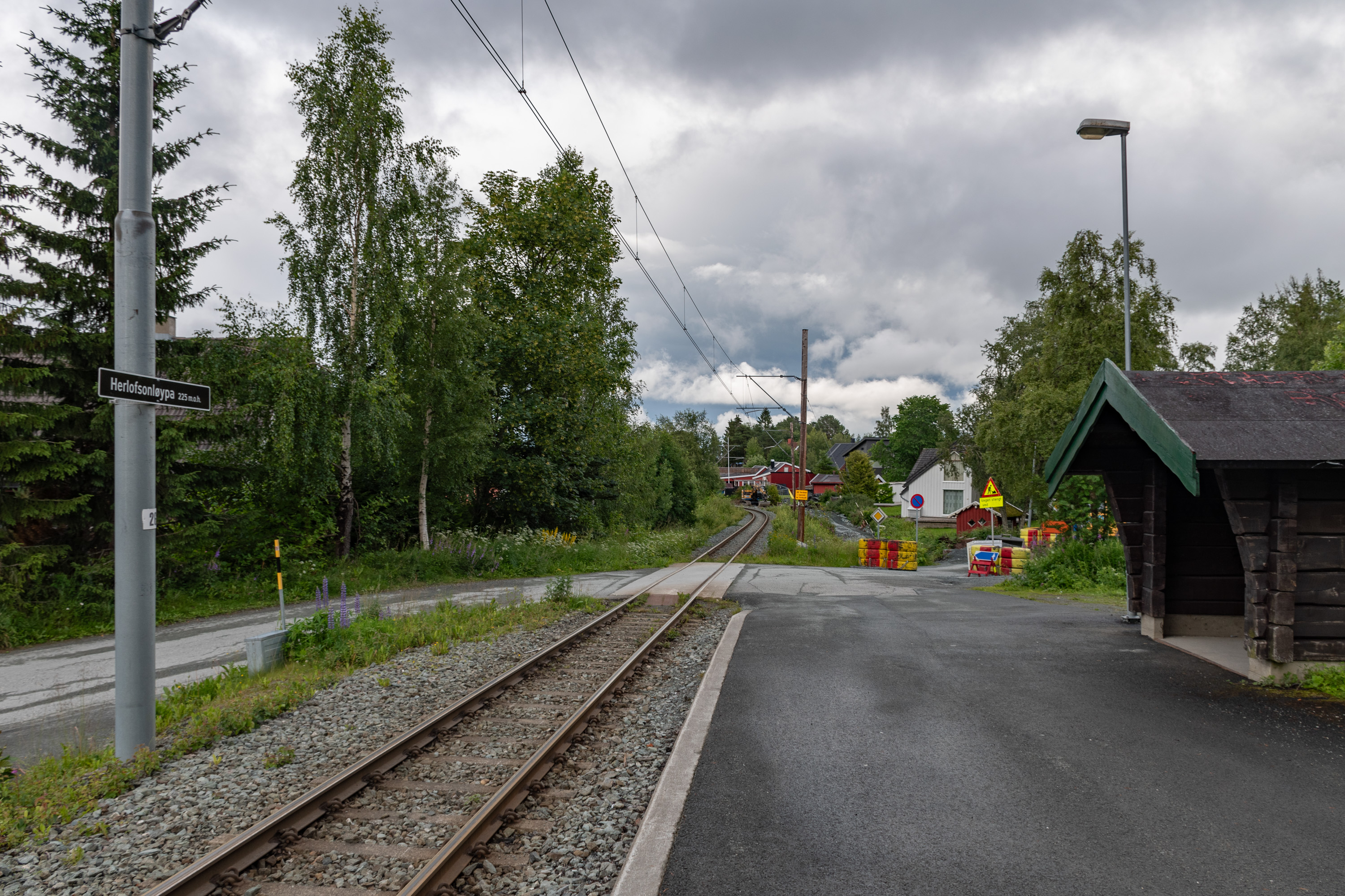 15. За Мункволлем начинаются совсем пригороды, перегоны местами идут практически через лес, а большинство остановочных павильонов — деревянные навесы, напоминающие финские лааву для привалов в лесу. На остановках всех подписана высота над уровнем моря. Вдоль линии установлены светофоры железнодорожного облика, но по крайней мере когда я снимал, все они были выключены.