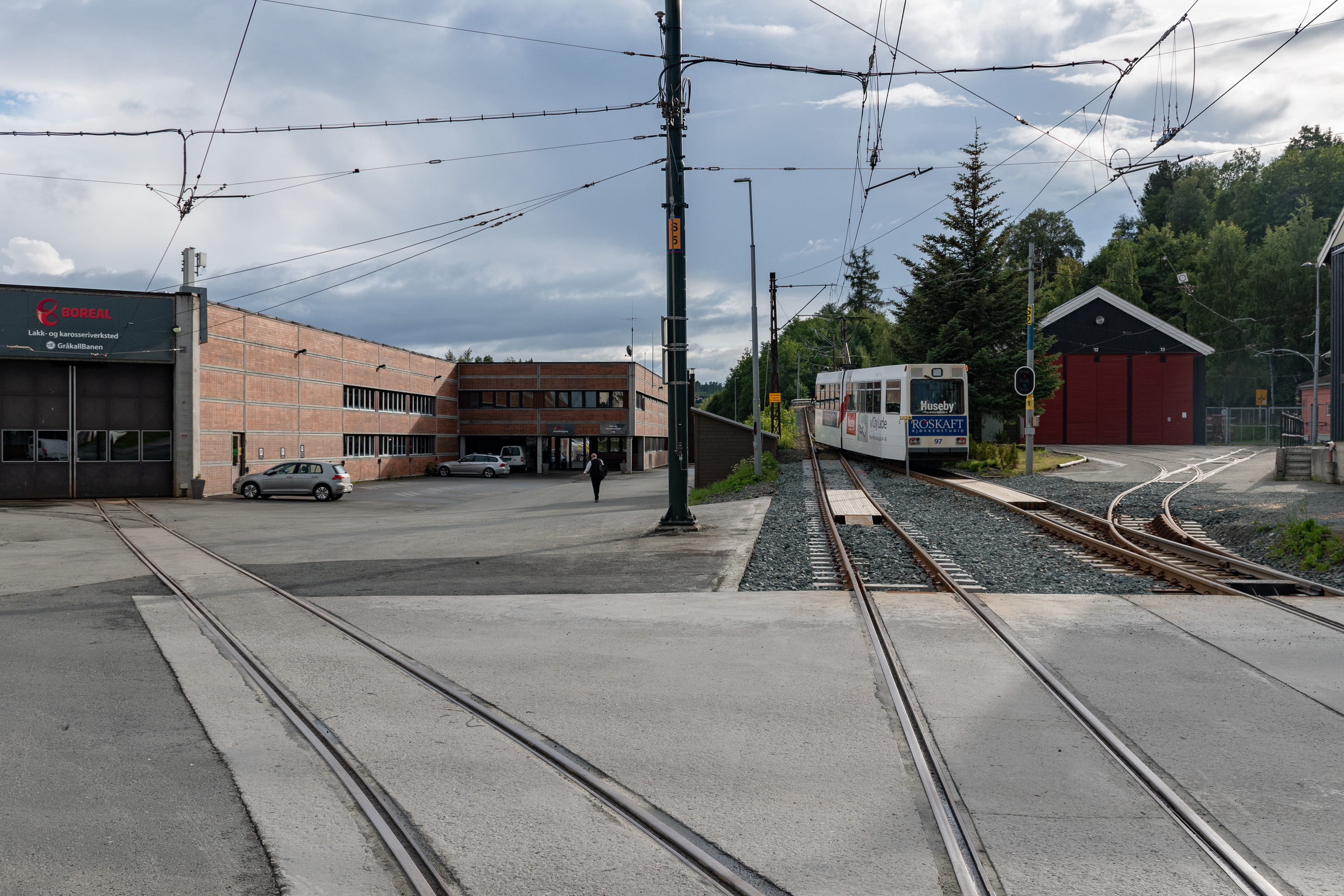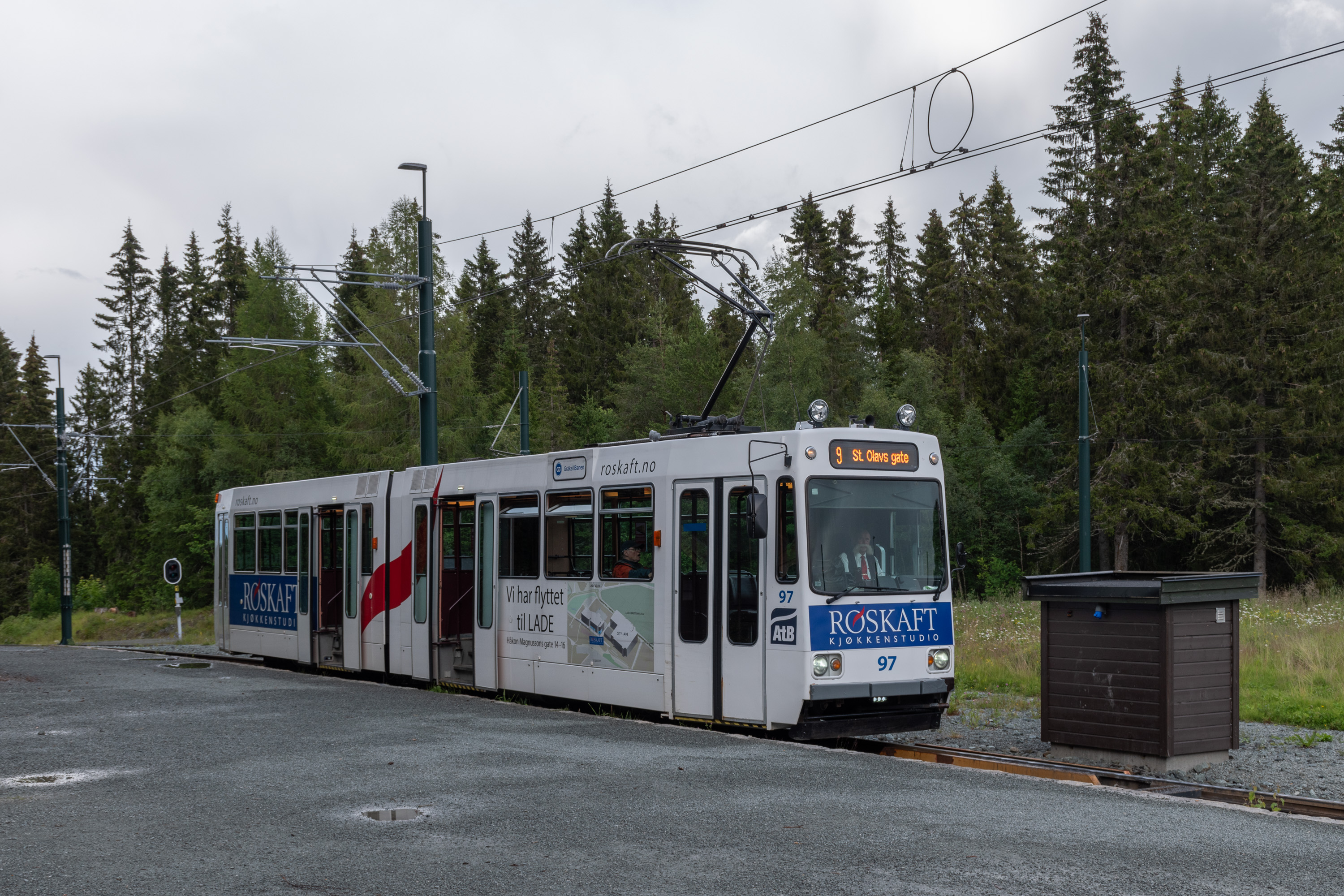 4. Компания стала полностью муниципальной с 1966. Ну а закрыта трамвайная сеть города, уже резавшаяся до этого несколько раз, была в 1988. Местную муниципальную трамвайную политику тех лет кто-то любовно описал в английской википедии в больших подробностях: Trondheim Tramway controversy. Грокалленскую линию не стали разбирать, хотели сохранить как музейную, сохранили также и музейные трамваи. Но главное, и новые, лишь в 1984 закупленные трамваи, остались — их не удалось никуда продать (колея 1000 мм и ширина 2.6 м — уникальная комбинация) и не успели порезать. Вскоре, в 1990, энтузиасты основали новую компанию-оператора трамвая и пообещали городу, что смогут работать без субсидий. Без субсидий, конечно же, в итоге не получилось, но так или иначе каким-то образом трамвай воскрес и работает до сих пор. Компания-оператор сейчас принадлежит Boreal Norge, крупному оператору общественного транспорта в различных регионах Норвегии, и называется Boreal Bane.