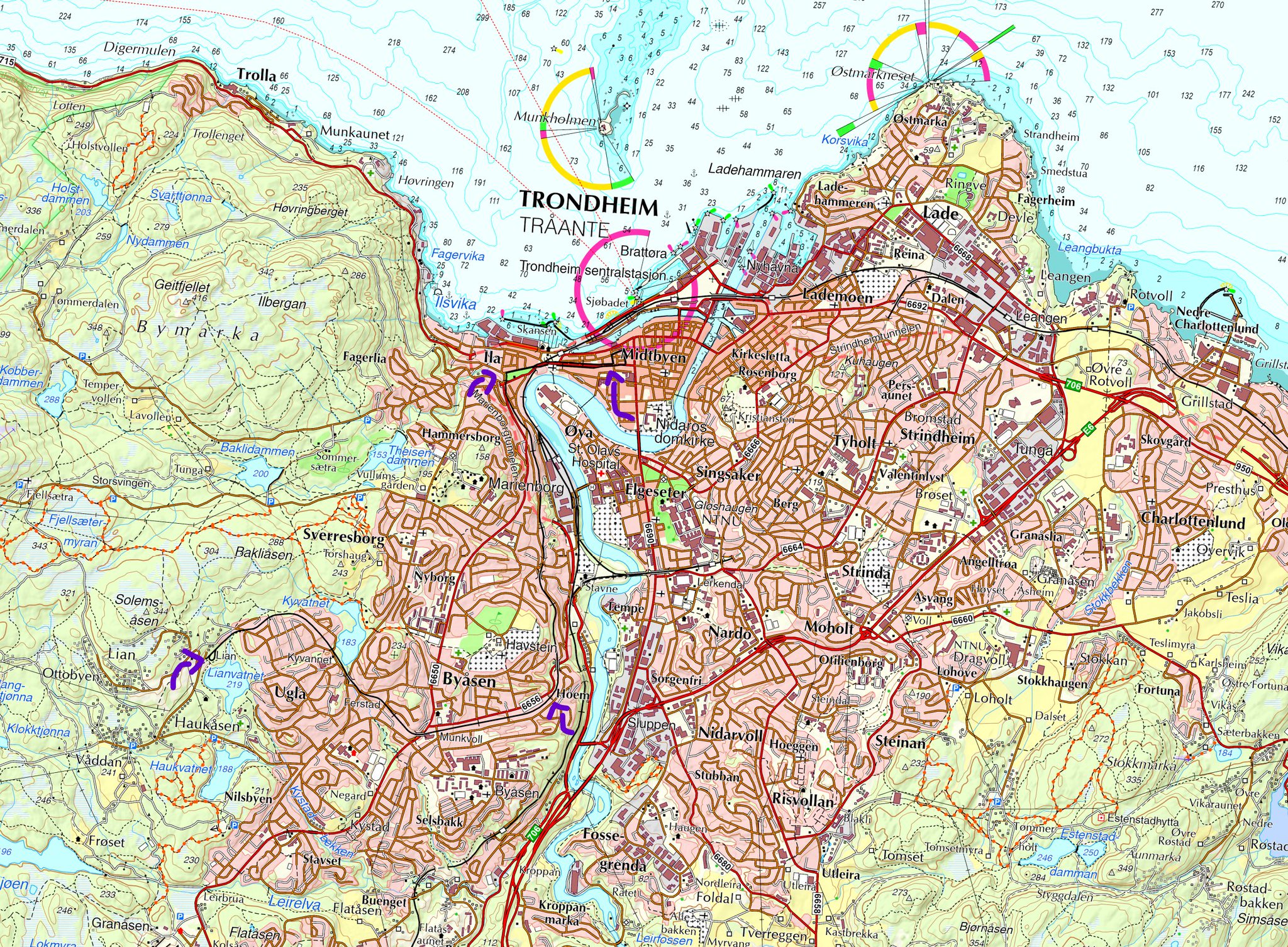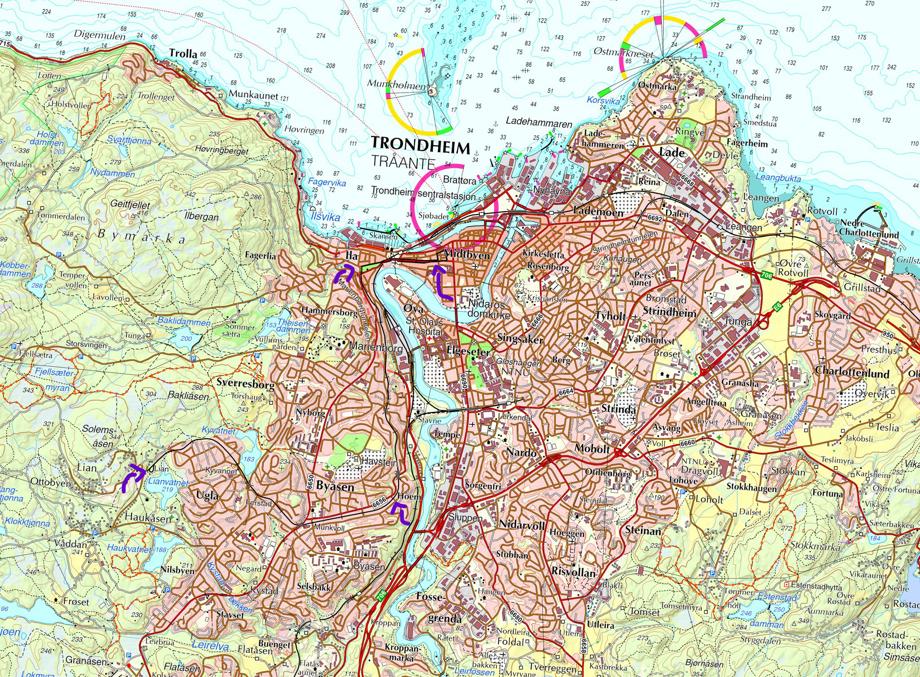 2. Когда-то в нем было 4 линии, осталась одна — пригородная, Грокалленская (Gråkallbanen), из центра в западные пригороды, район Бюосен (Byåsen) у леса Бюмарка (Bymarka).