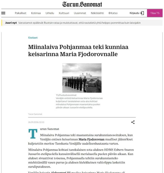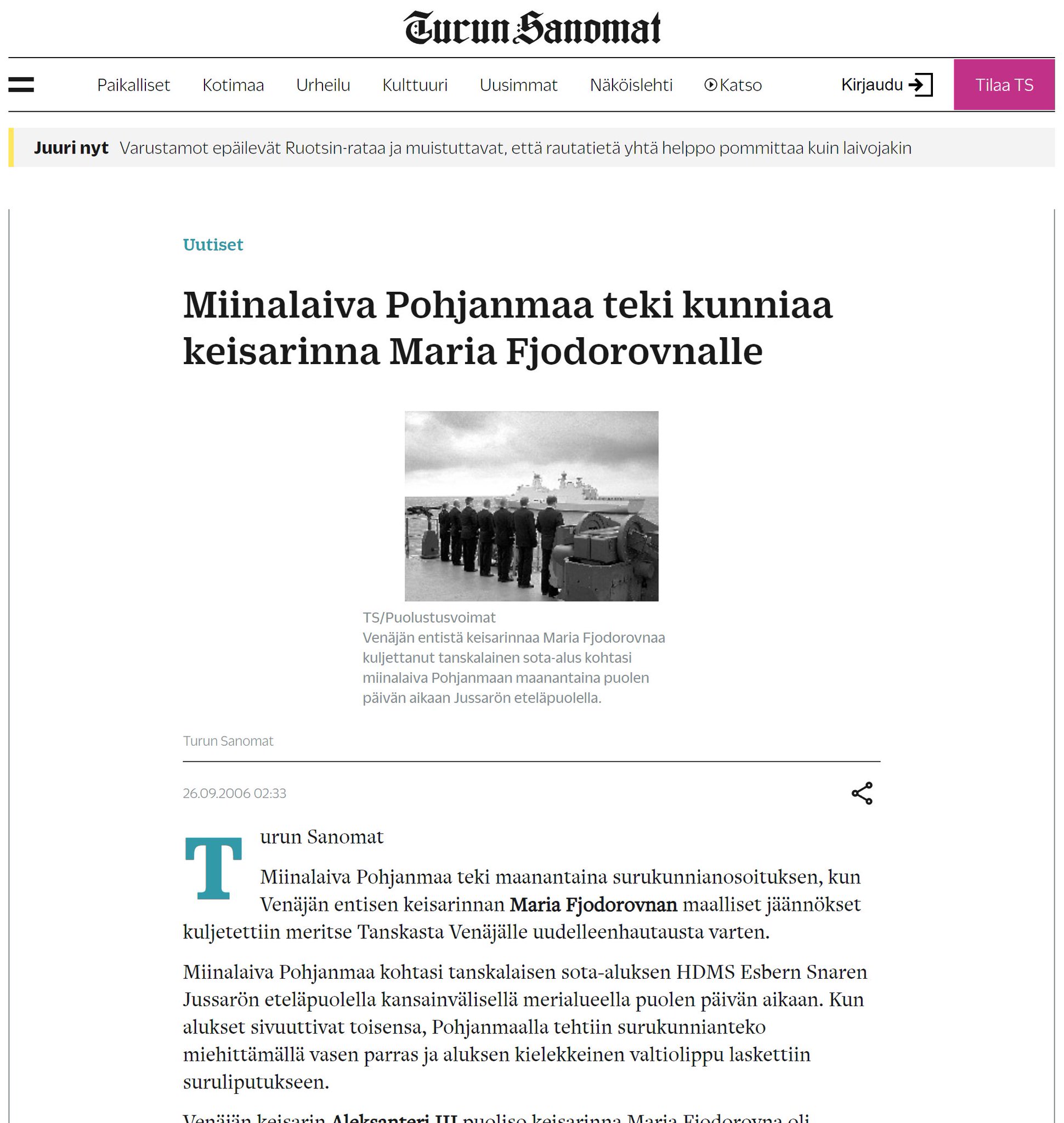 Так что когда современная Россия, с ее культом мощей, в 2006 возвращала останки Марии Федоровны из Дании, чтобы перезахоронить в Петропавловской крепости, у Экенесского архипелага экипаж минного заградителя "Похьянмаа" отдал честь везущему гроб царицы датскому кораблю.