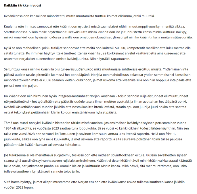 По-фински поселок зовется Ююкеянмуотка (Yykeänmuotka); это один из районов Северной Норвегии, где исторически было финскоязычное население, т. н. квены. Носителей квенского языка — местного диалекта финского — сейчас ок. 1500. Полюбоваться им можно на сайте Ruijan Kaiku, "Эхо Финнмарка".