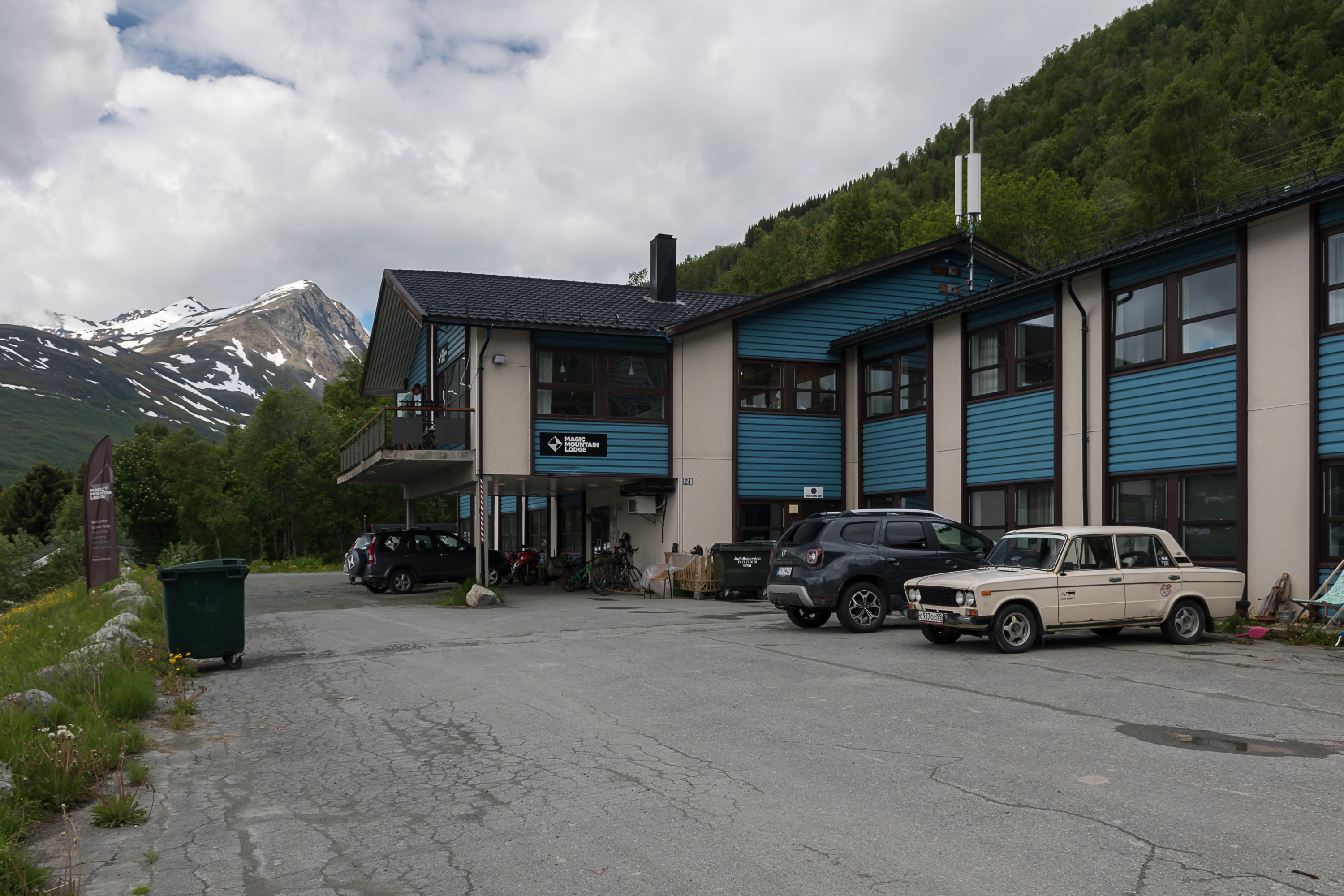 Центр Люнгена и единственное заметное поселение — поселок Люнгсэйдет (Lyngseidet) в месте, где полуостров сужается до перешейка в несколько километров. Пару раз здесь останавливался в этом Magic Mountain Lodge. Не знаю, откуда к ним в 2019 тогда жигули на московских номерах приехали.