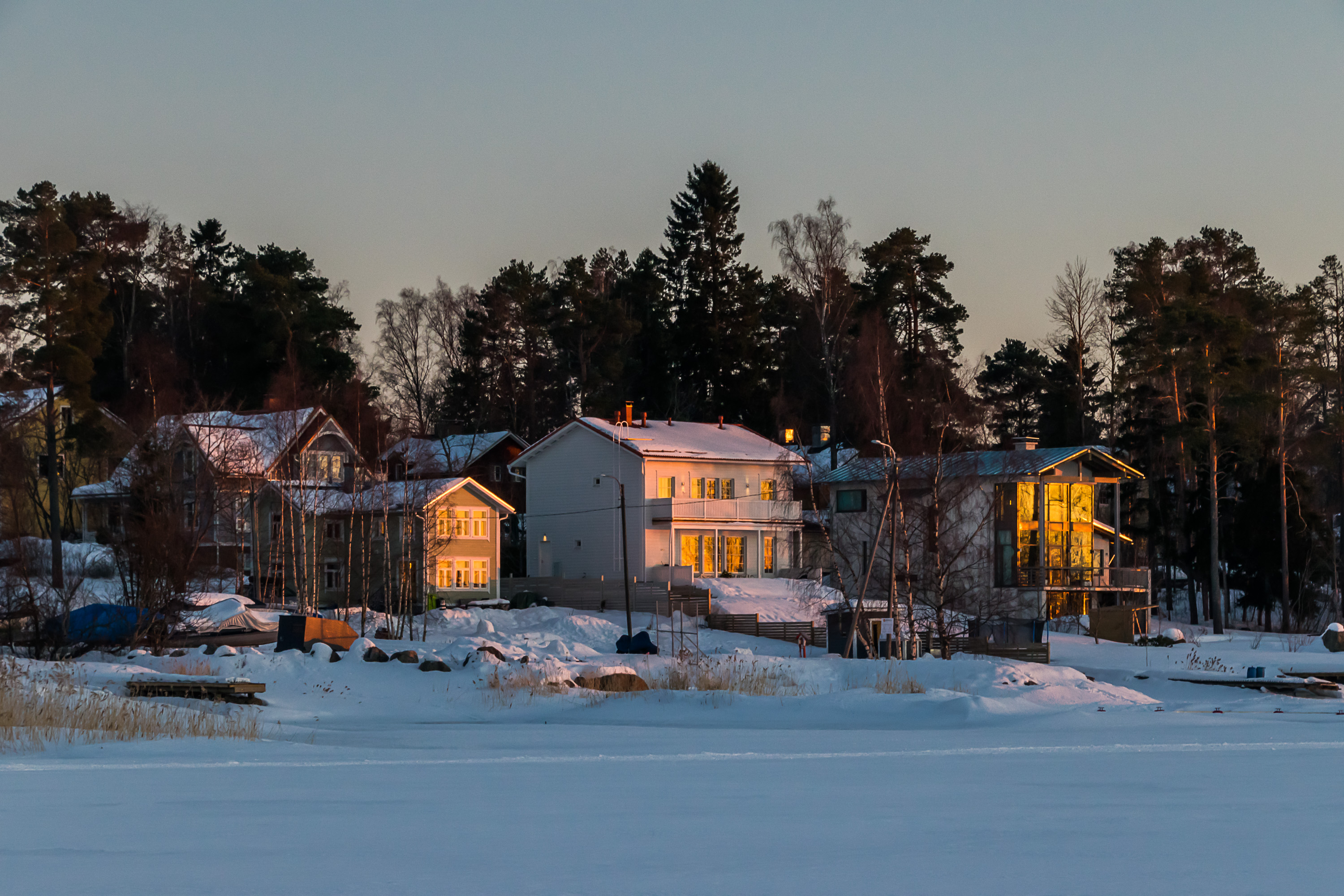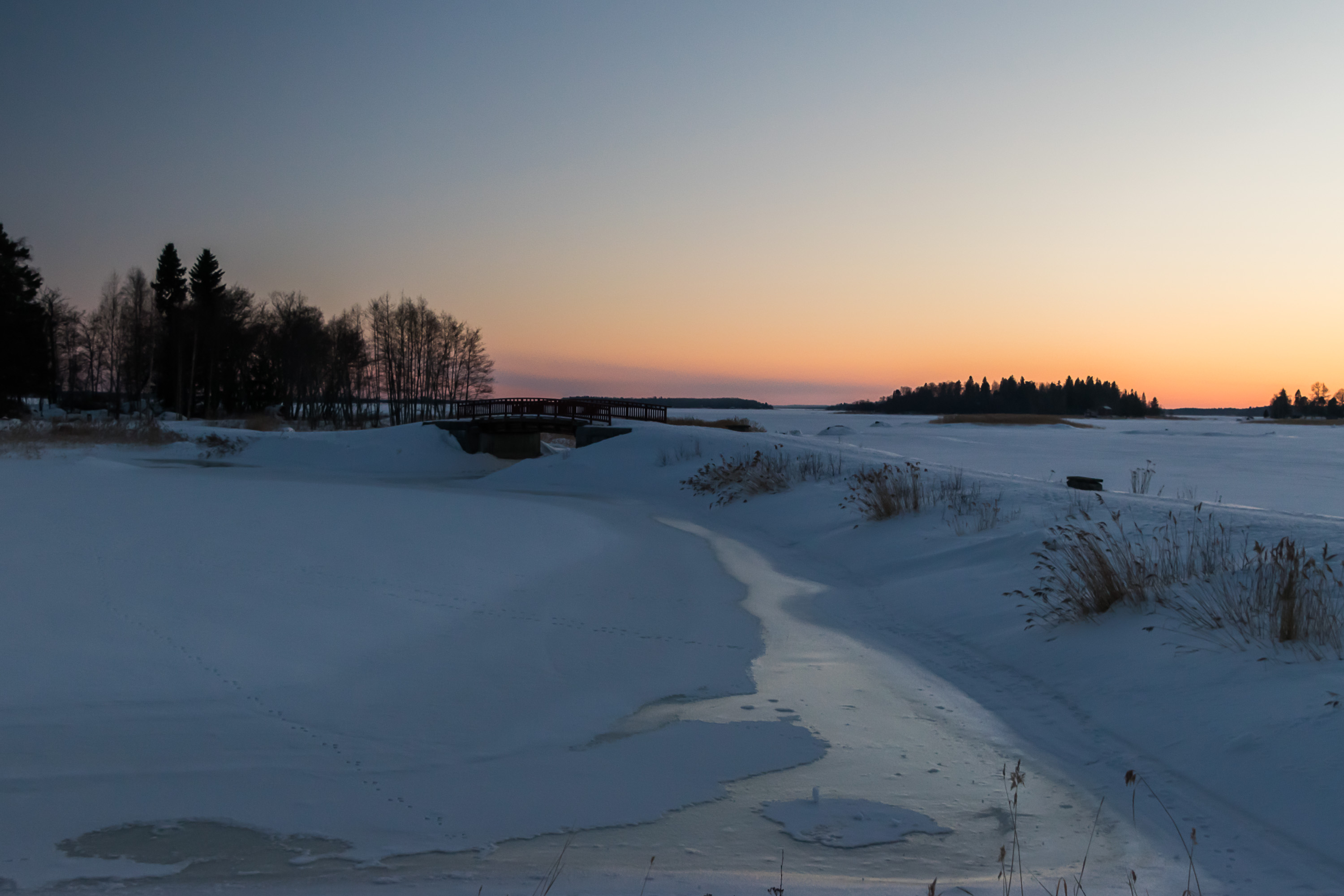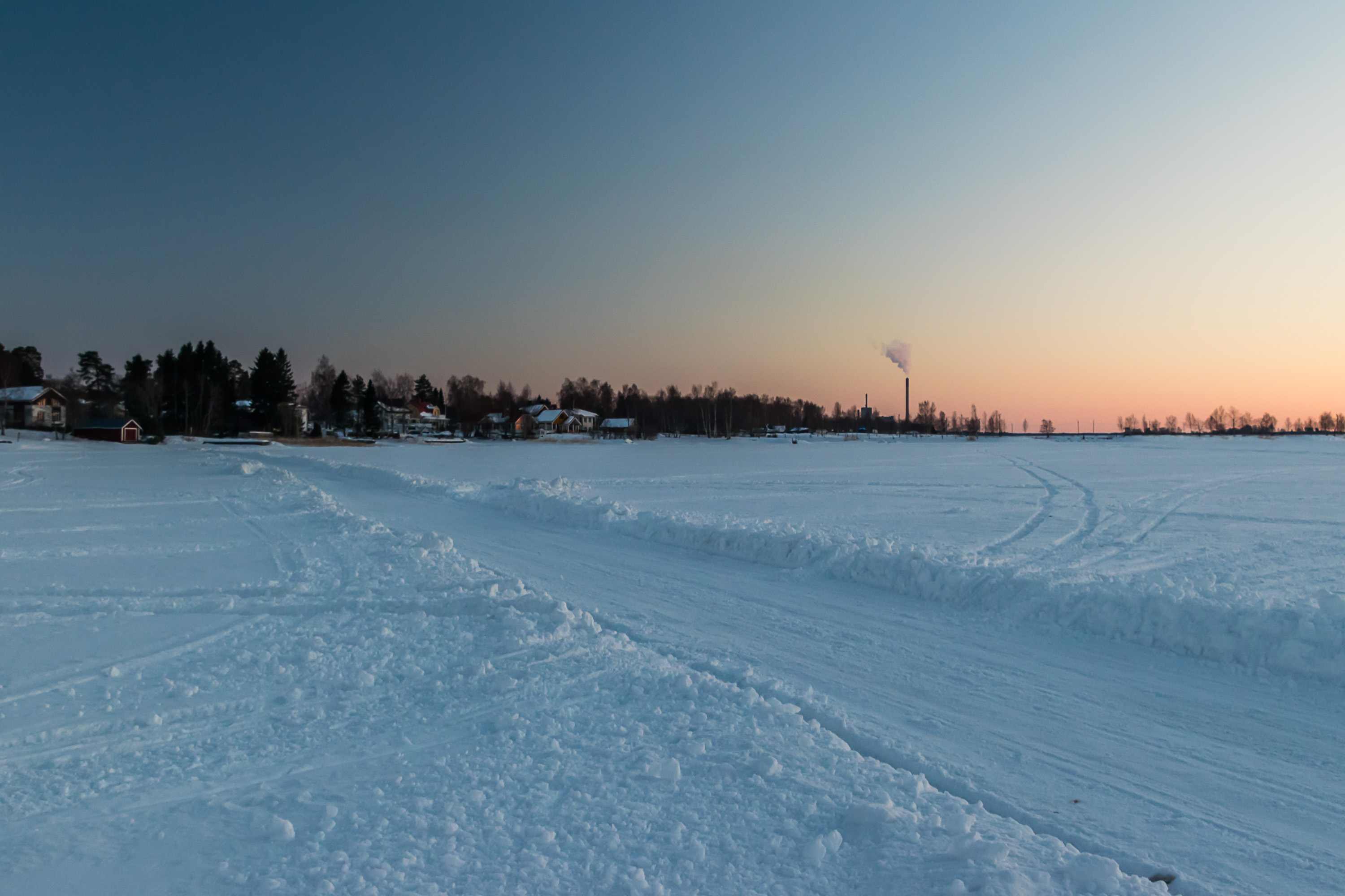Вечерние окраины Ваасы. Не нынешние, а из 2018. Залив Исолахти (Isolahti, фин. Большой залив), отделяющий бывший заводской и ныне университетский район Палосаари от раскидистой пригородной застройки в Йербю.