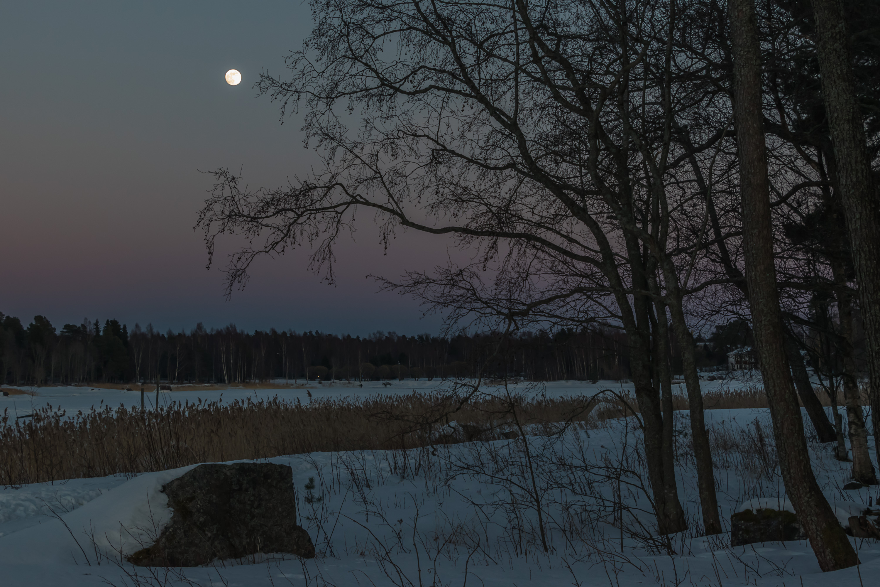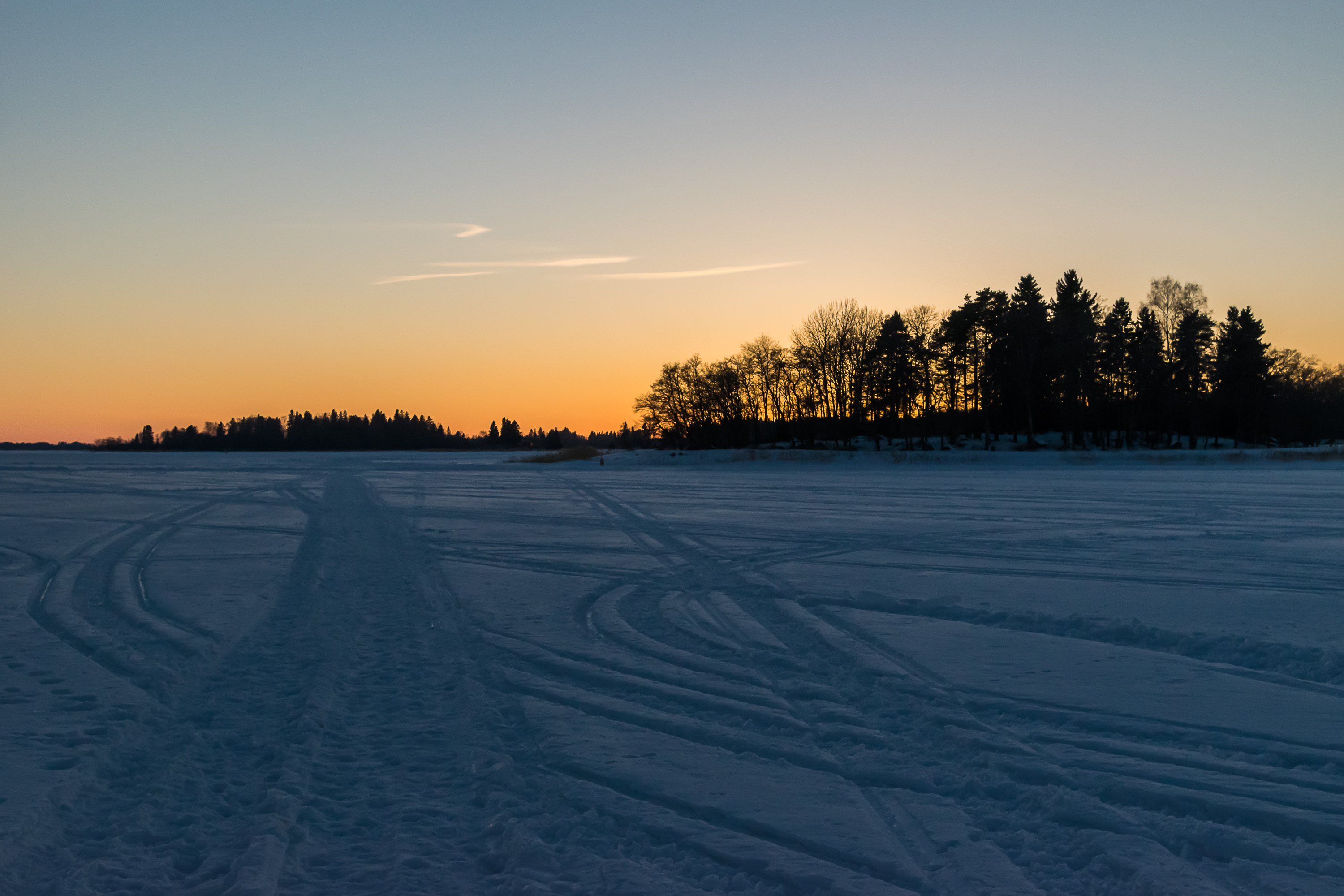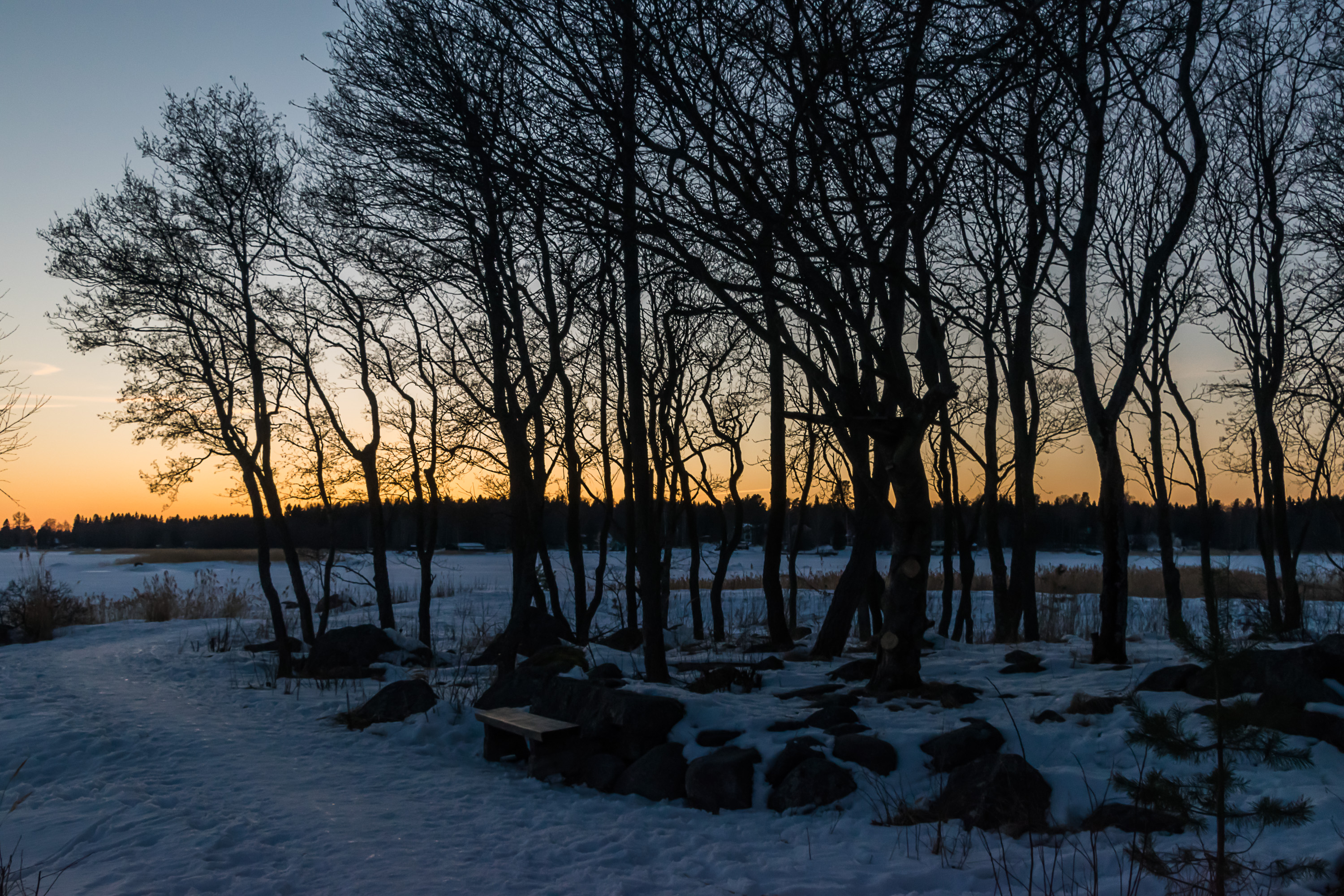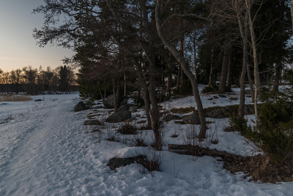 Но на островке Крокнесгрундет (Kråknäsgrundet, швед. шхера Вороньего мыса, фин. Variskari, Воронья шхера) — уже видно, что снег тает потихоньку. На острове, прикрывающем с моря лодочную гавань Исолахти, был когда-то дом или два. Сейчас фундамент остался, остров парком стал.