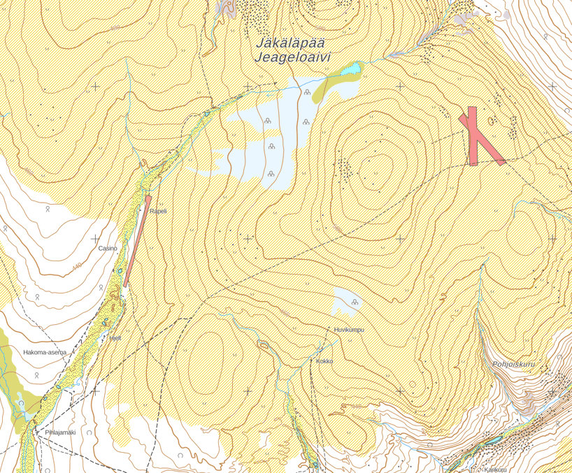 На карте национального парка привлекает внимание, например, аэродром посреди тундр в десятках километров от цивилизации. Аэродром на горе Якяляпяя (Jäkäläpää, фин. Ягельная вершина) устроен для золотоискателей и представляет собой просто ровный отмеченный камнями участок земли.