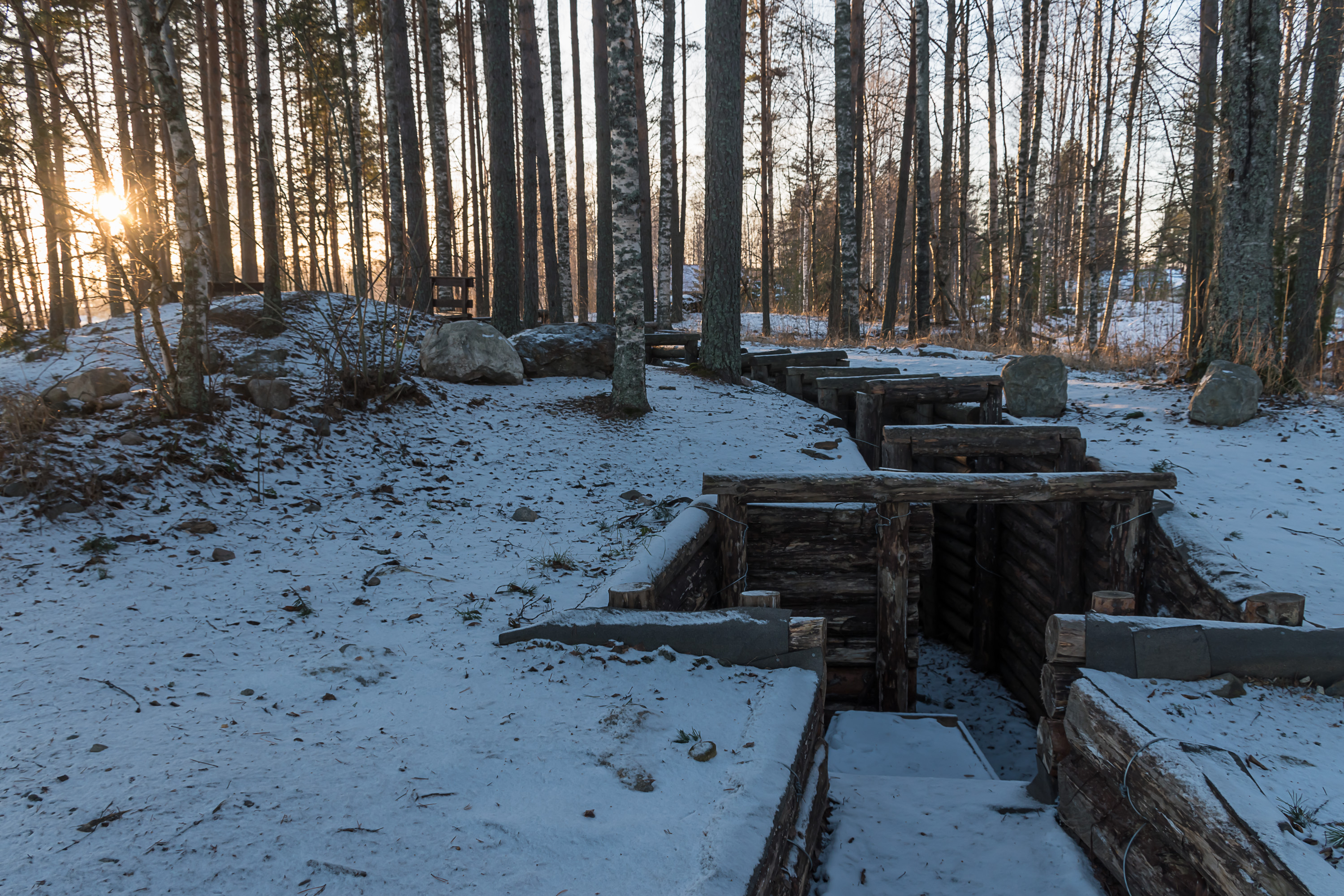 А так — восстановленные пулеметное гнездо и траншеи в Салле в Лапландии, у дороги к российской границе.
