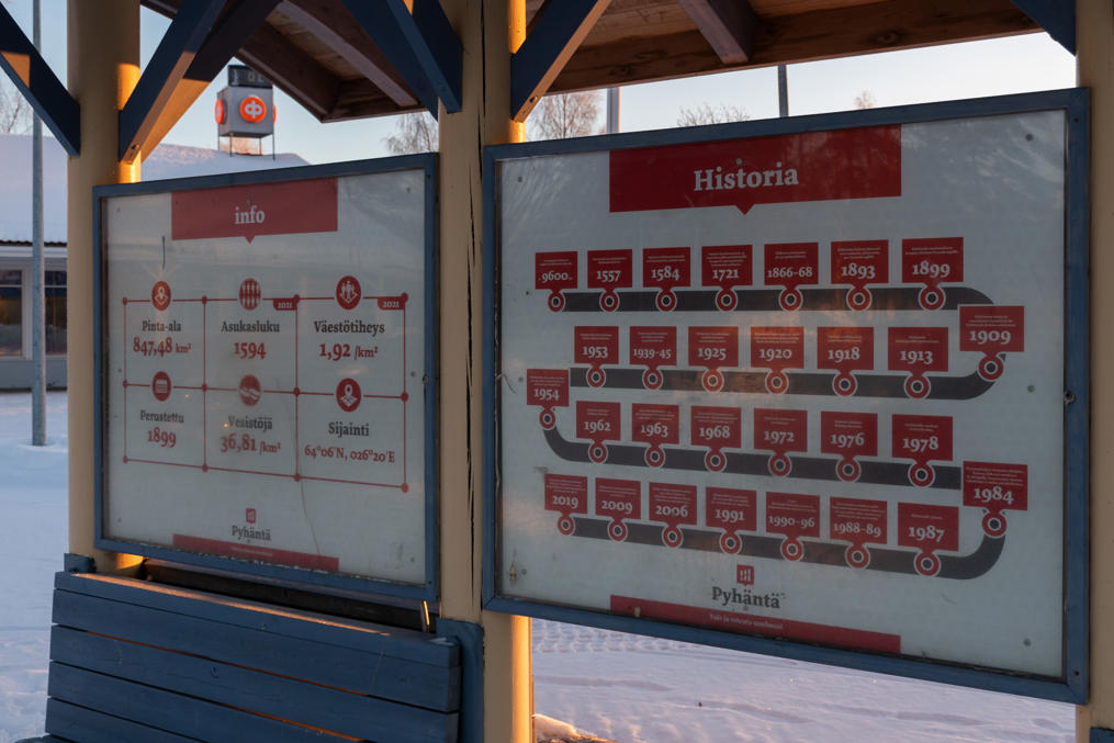 Ну и окрестная Северная Остроботния хоть и сельский, но экономически довольно крепкий регион, так что смогут люди и в соседних селах работу найти. Да и центр Пюхянтя пока что не выглядит упадочно. О вехах истории гордо пишут перед муниципальной администрацией.